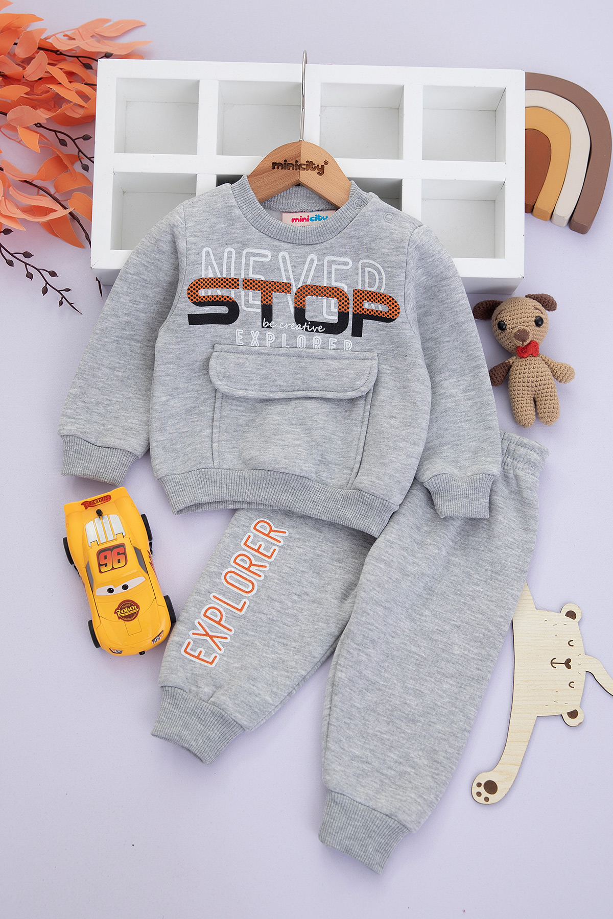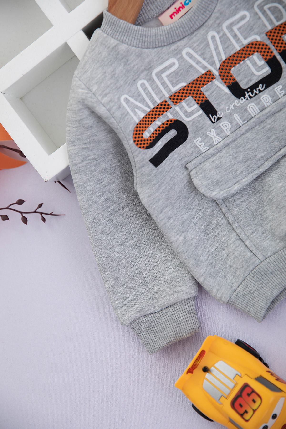 Erkek Bebek Never Stop Baskılı Üç İp Takım - 24809 (9-24 Ay)