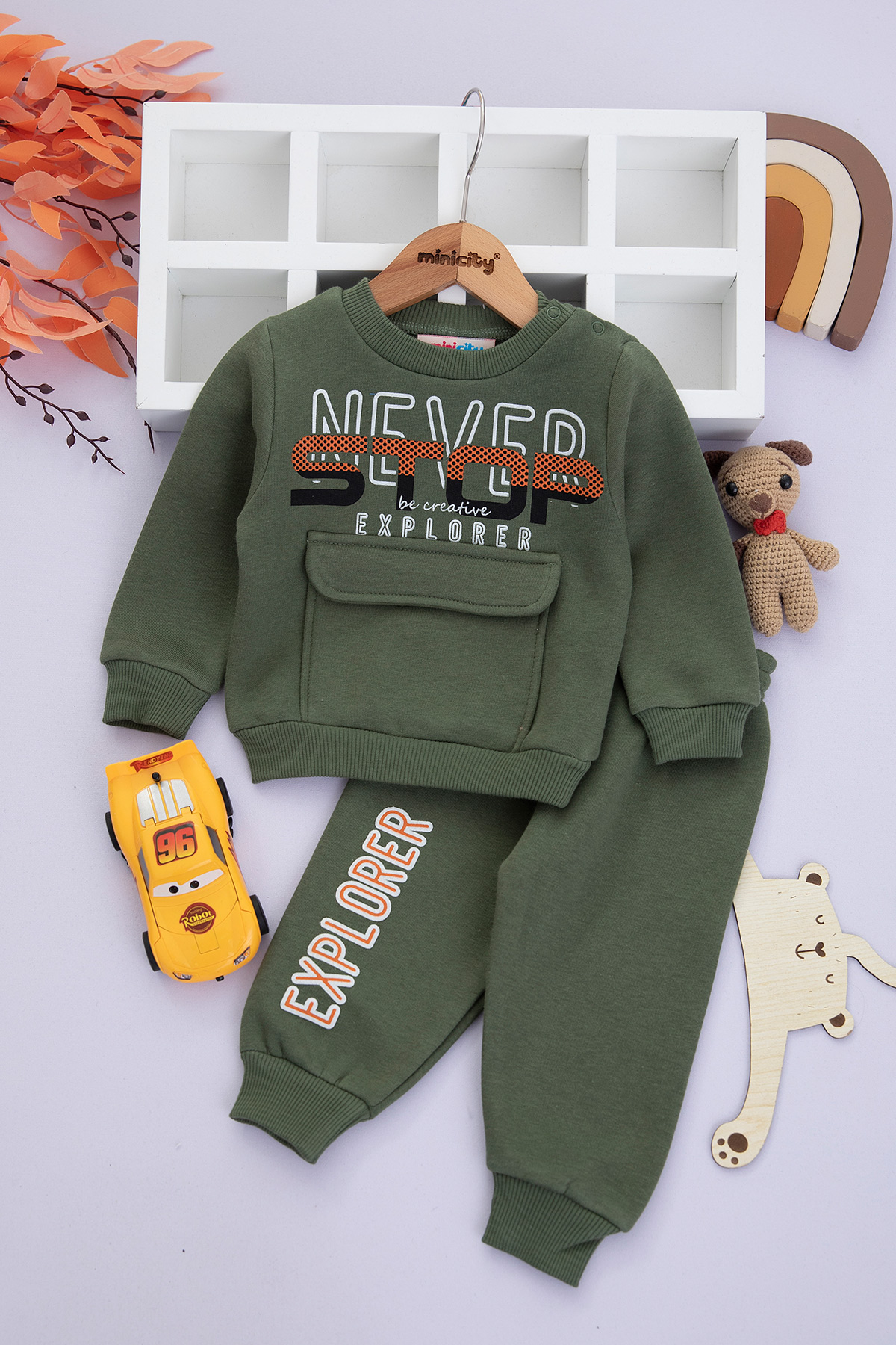 Erkek Bebek Never Stop Baskılı Üç İp Takım - 24809 (9-24 Ay)