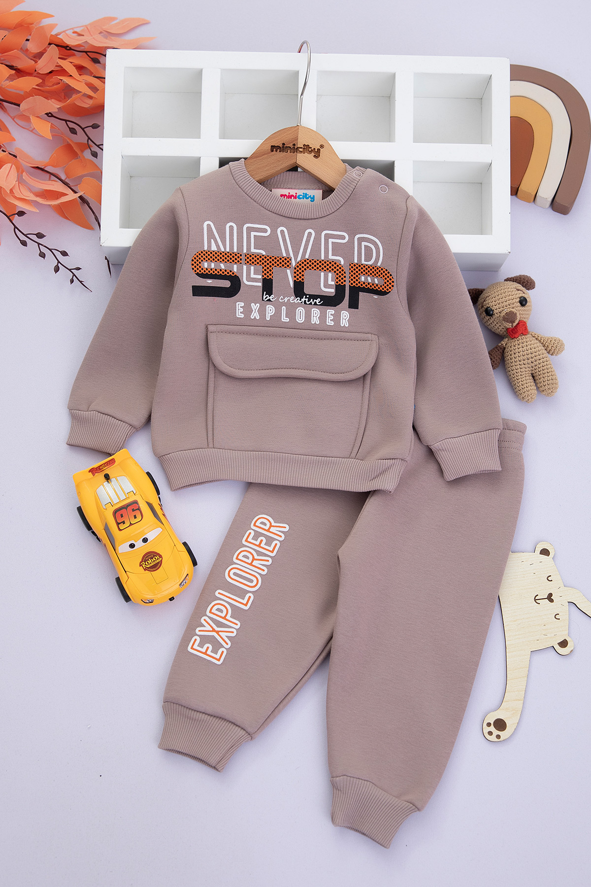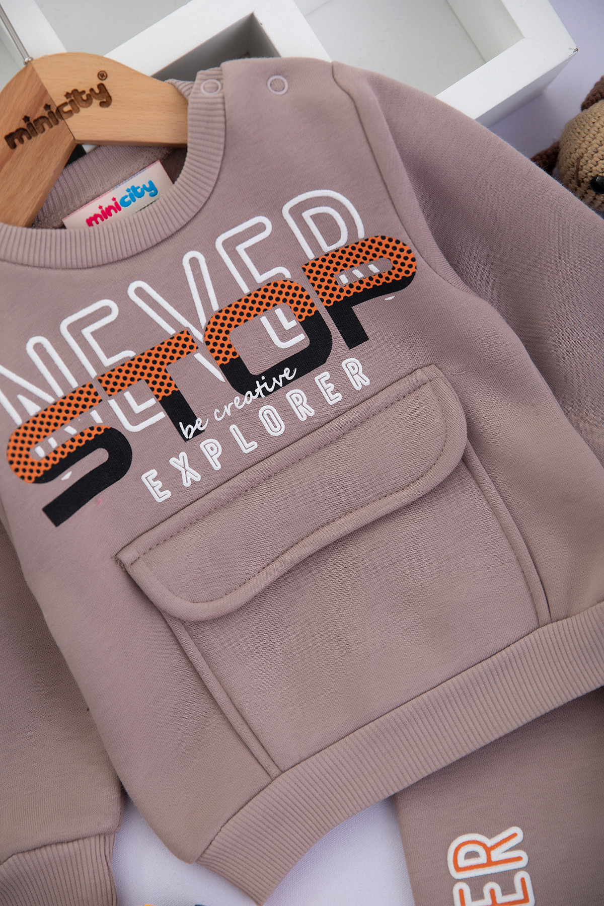 Erkek Bebek Never Stop Baskılı Üç İp Takım - 24809 (9-24 Ay)