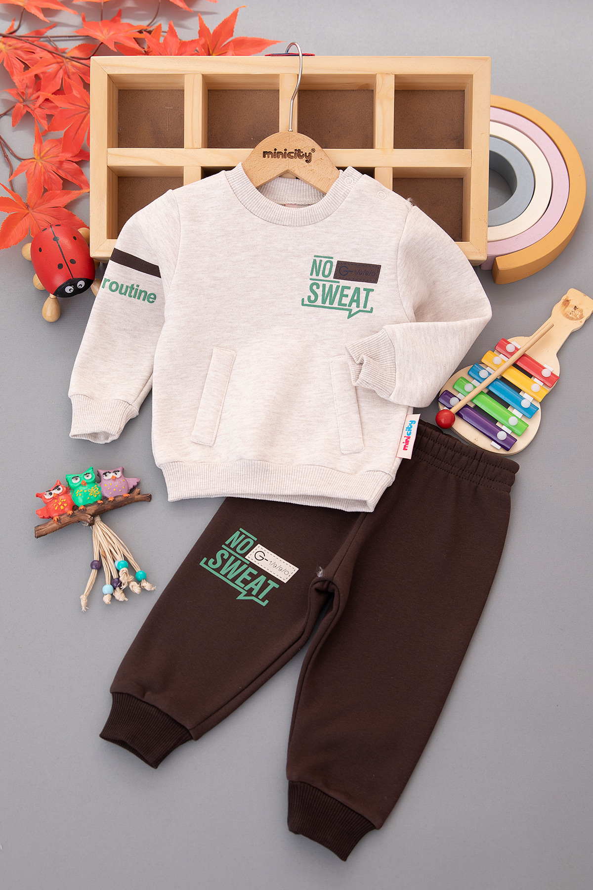 Erkek Bebek No Sweat Baskılı Üç İp Takım - 24776 (9-24 Ay)