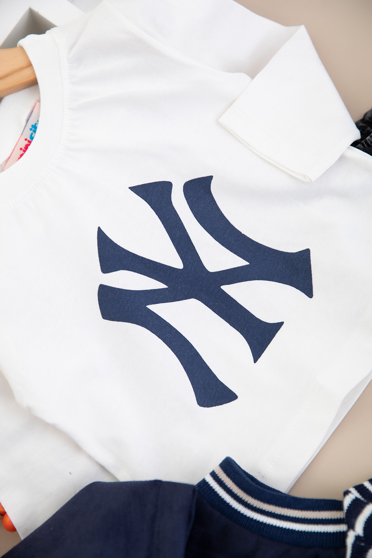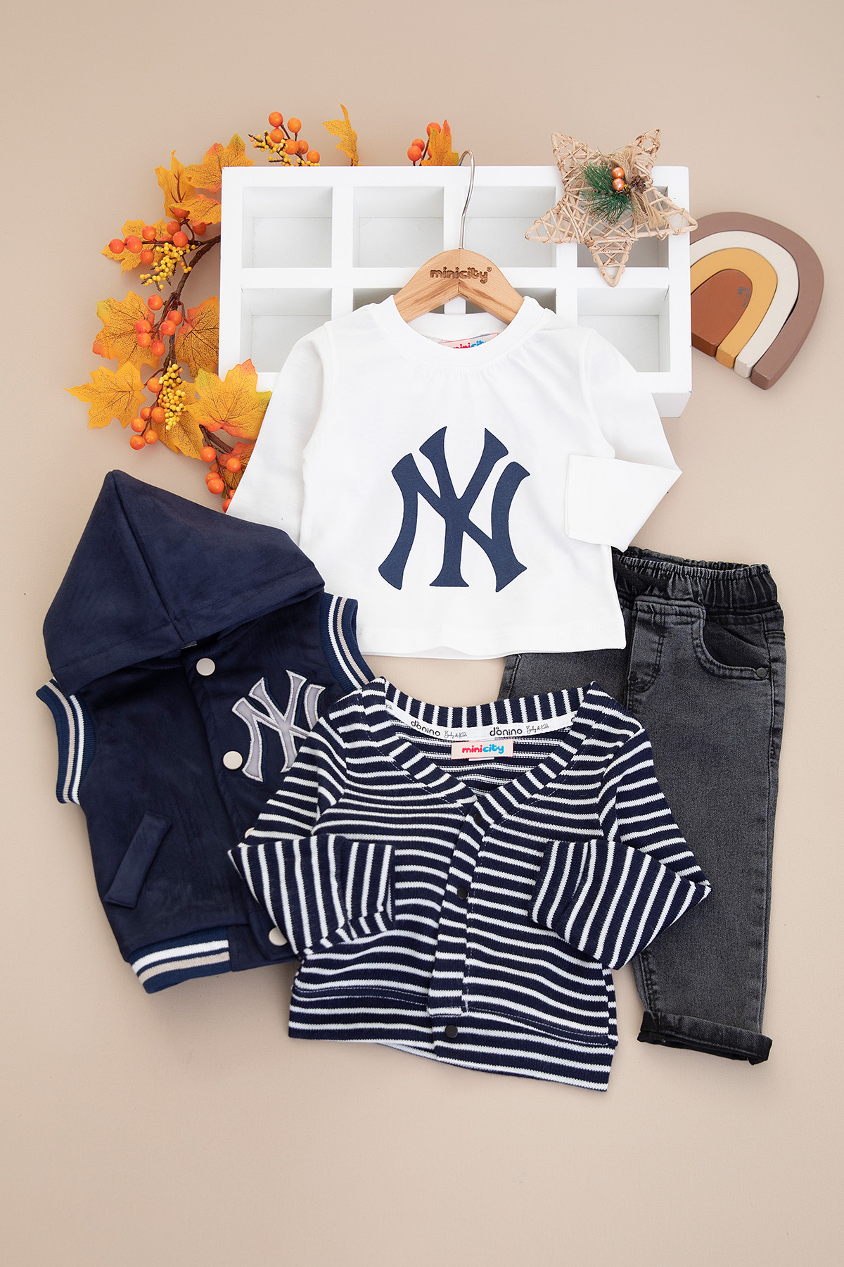 Erkek Bebek NY Nakışlı Süet Yelekli Takım - 50634 (6-24 Ay)