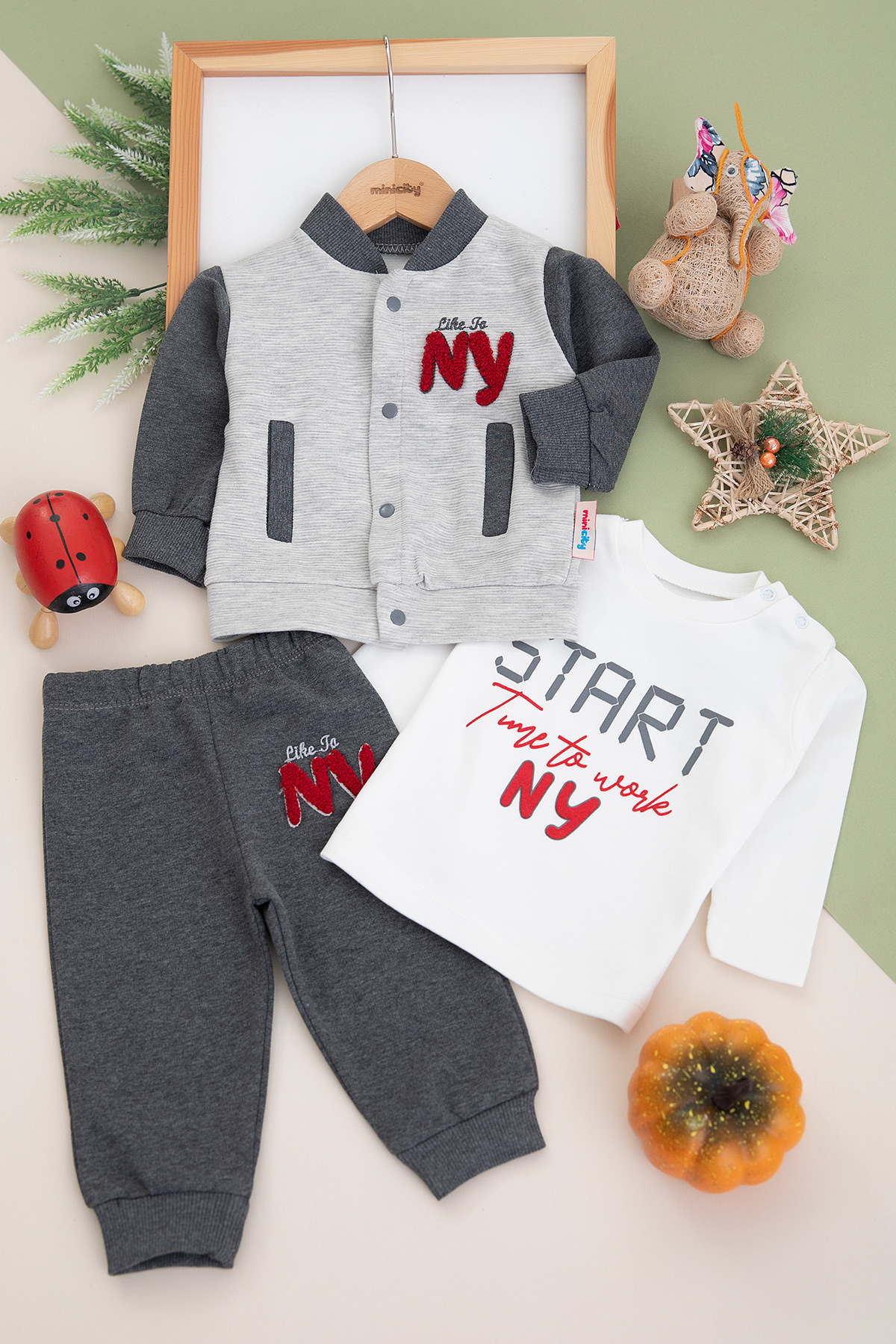 Erkek Bebek NY Nakışlı Üçlü Takım - 9291 (6-18 Ay)