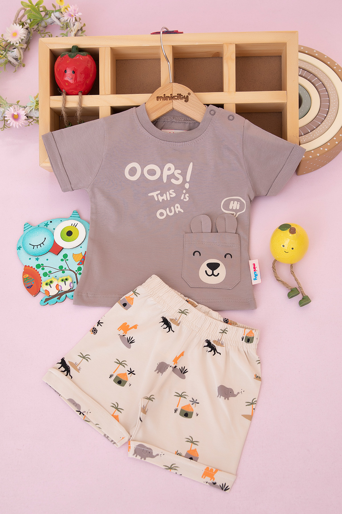 Erkek Bebek Opss Baskılı Şortlu Takım - 26216 (9-24 Ay)