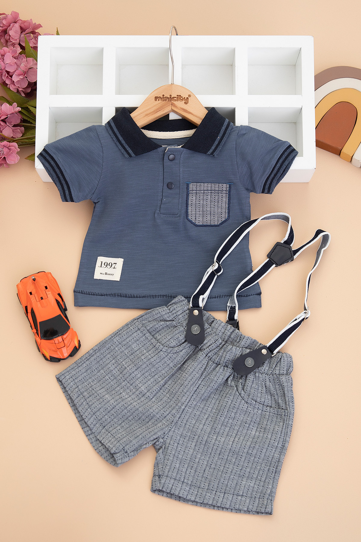 Erkek Bebek Örme Yakalı Şortlu Takım - 952 (9-18 Ay)