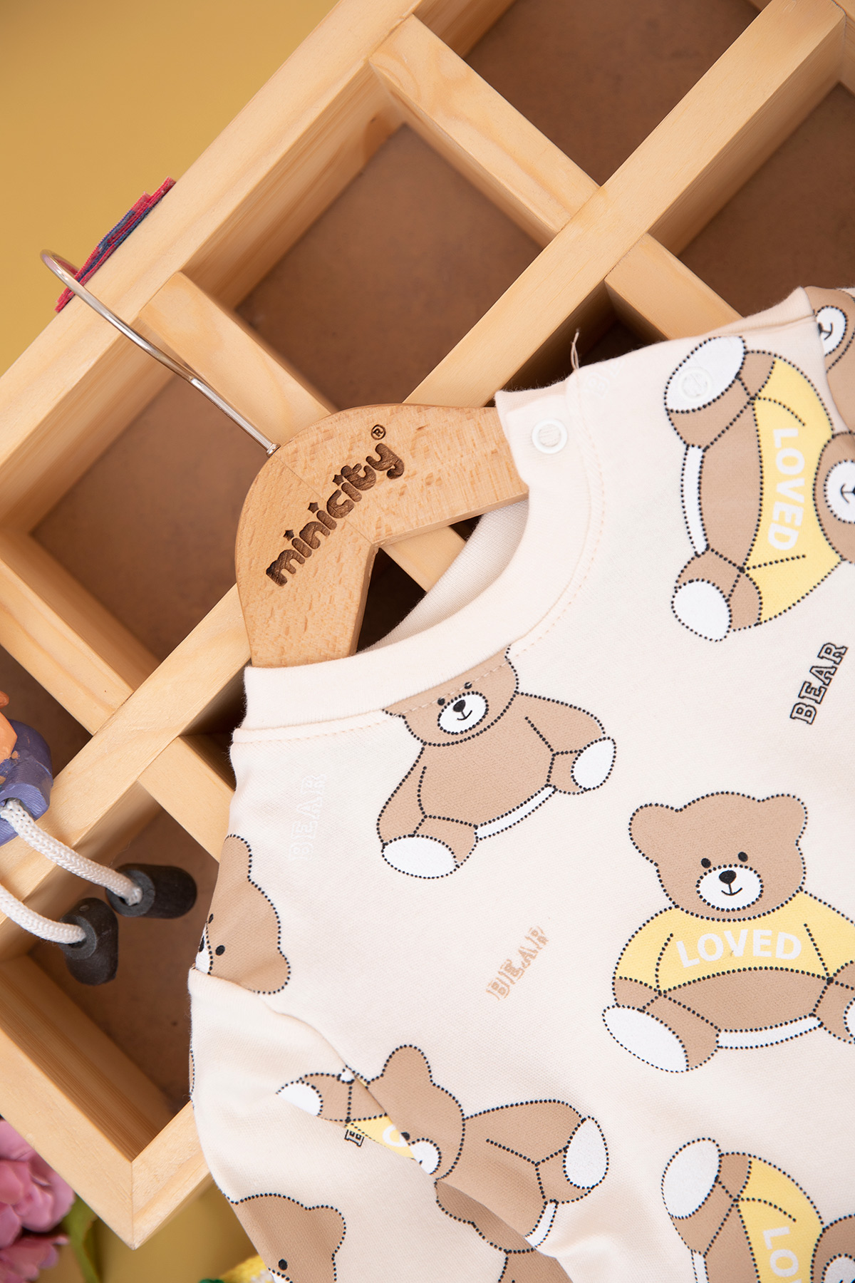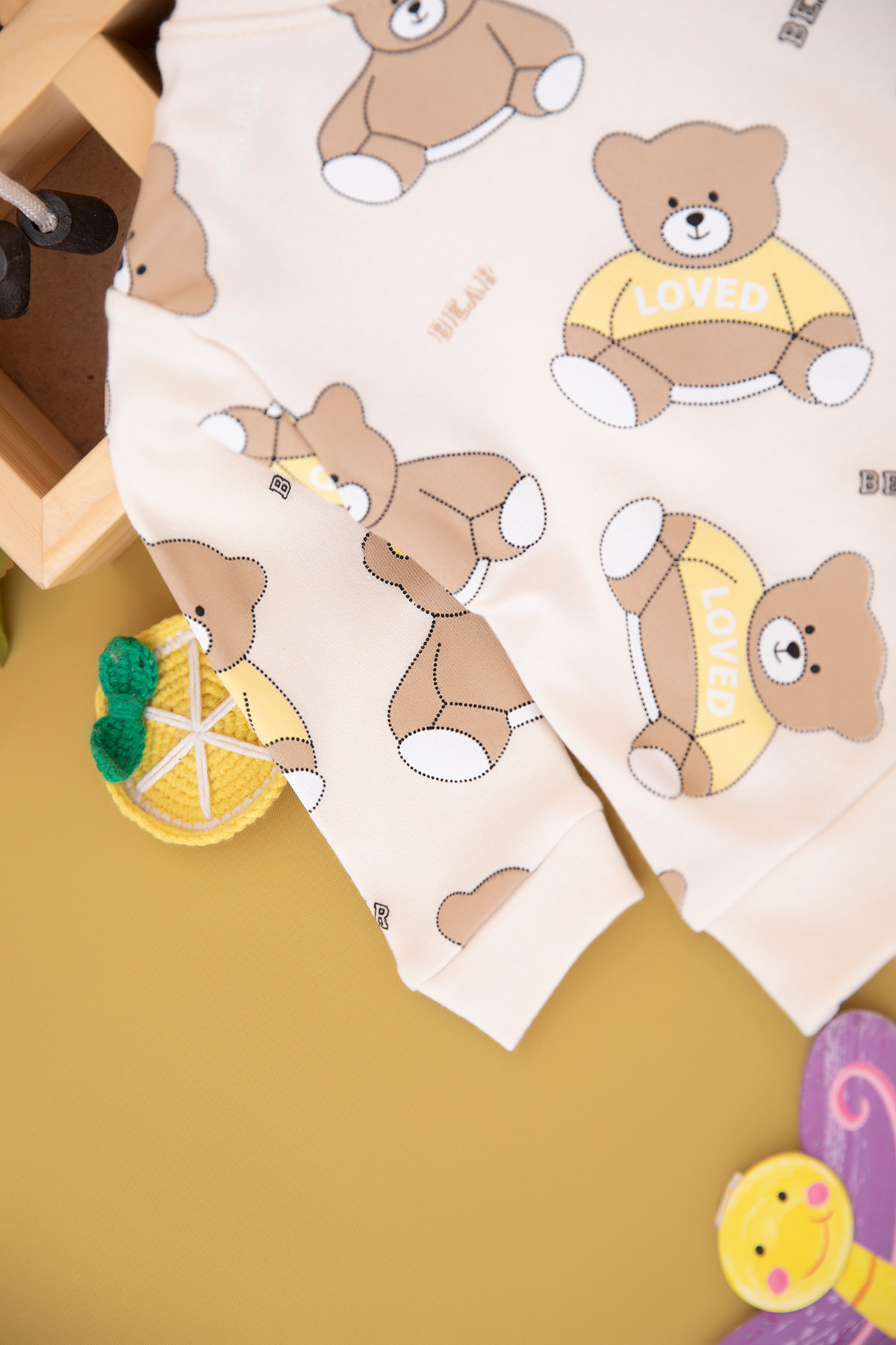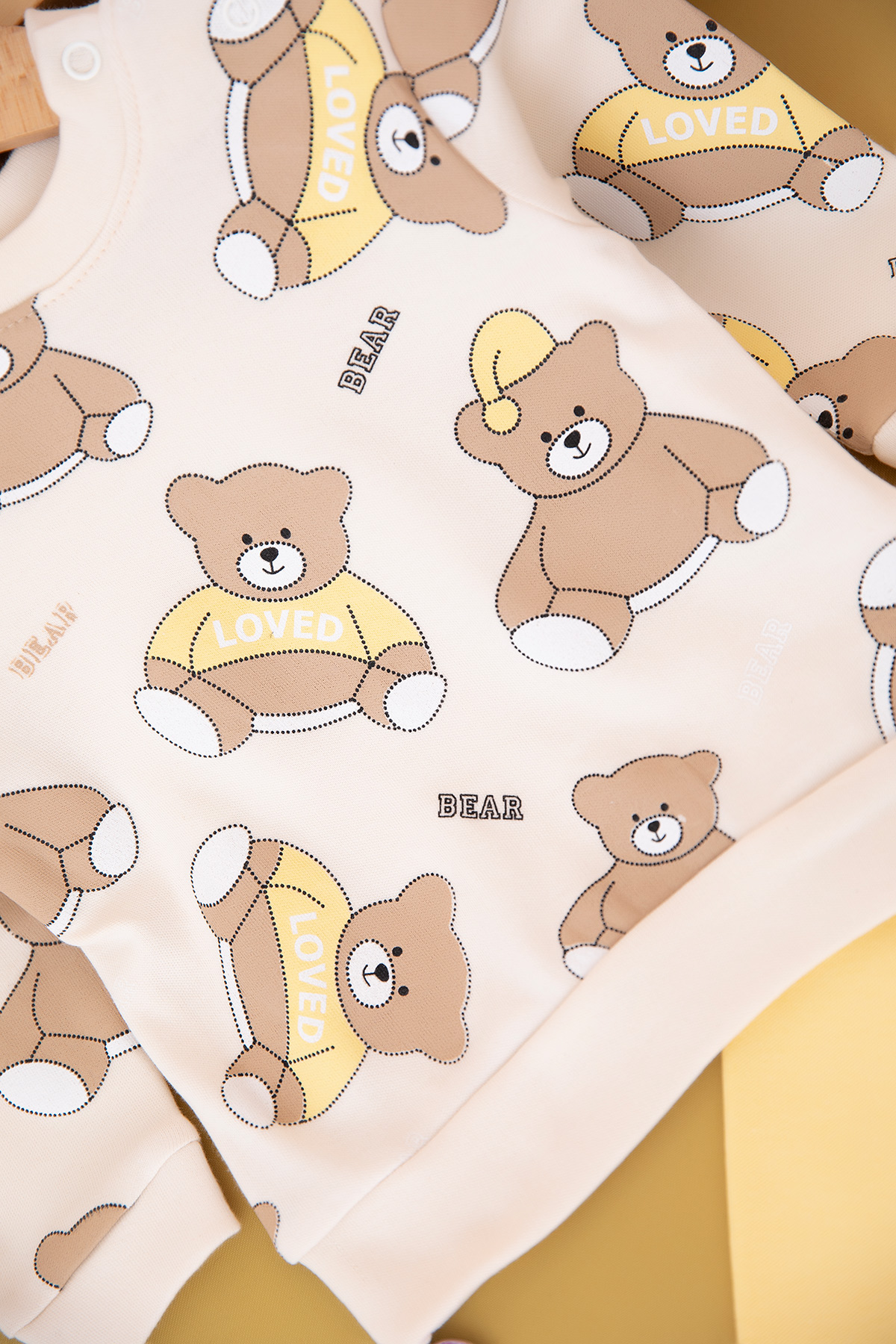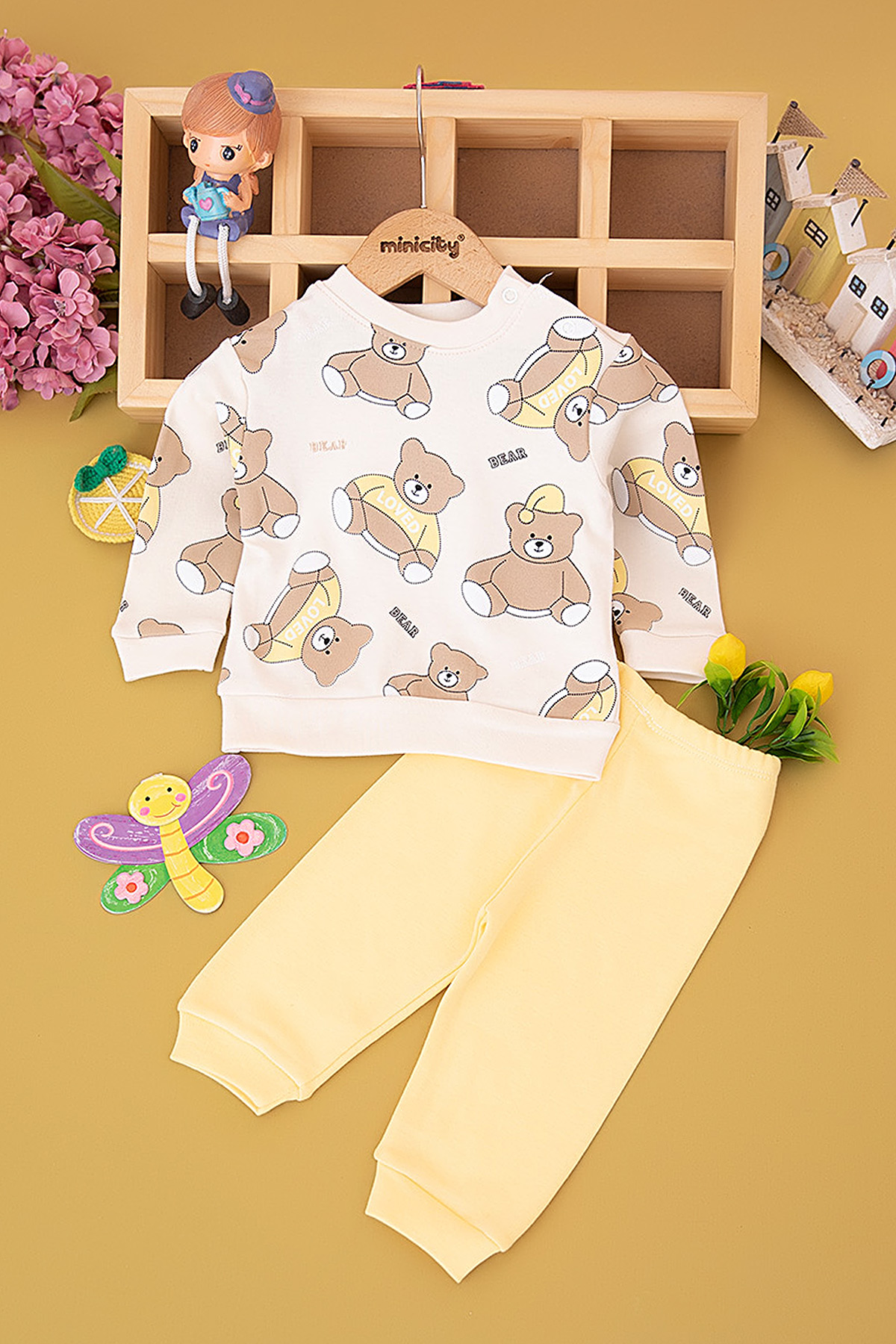 Erkek Bebek Oturan Ayı Baskılı Takım (9-18 Ay)