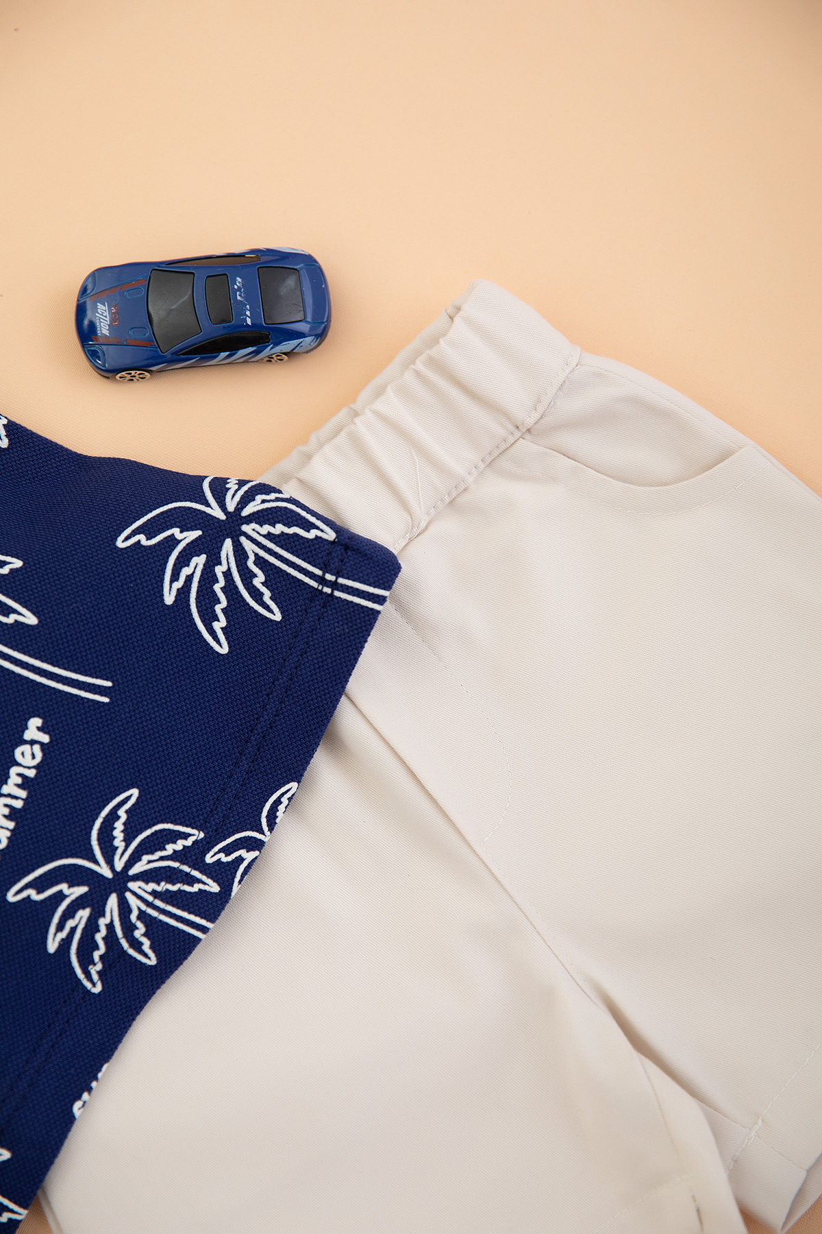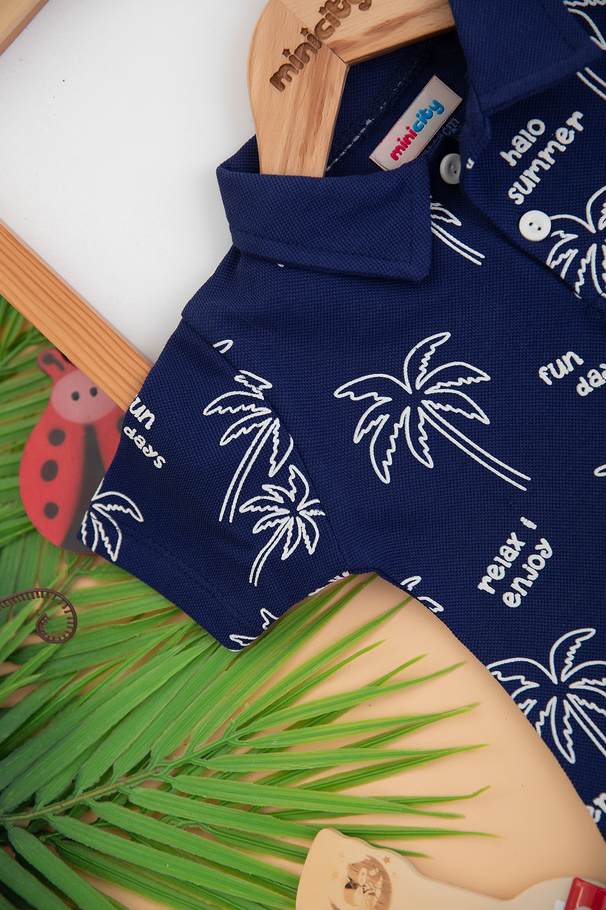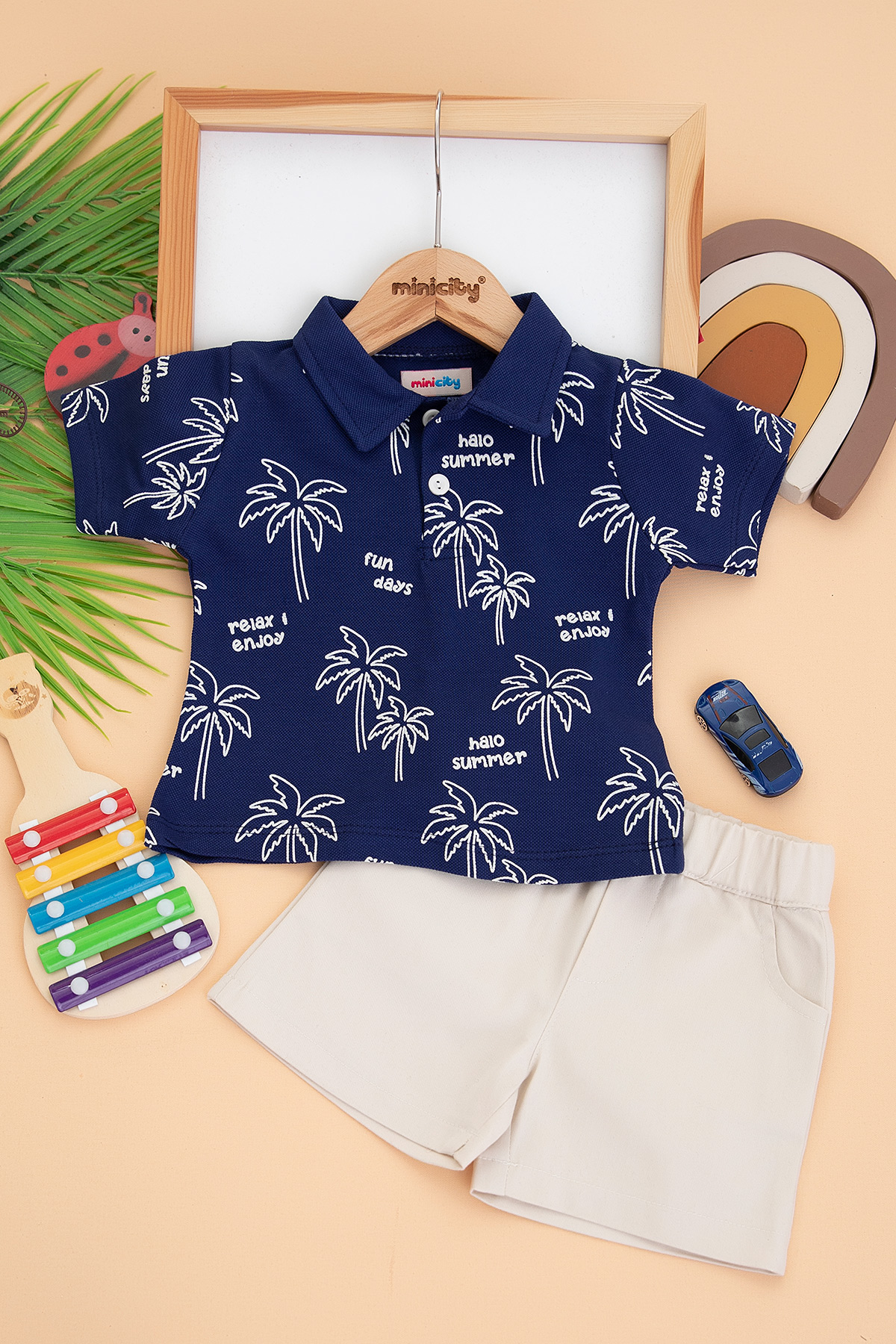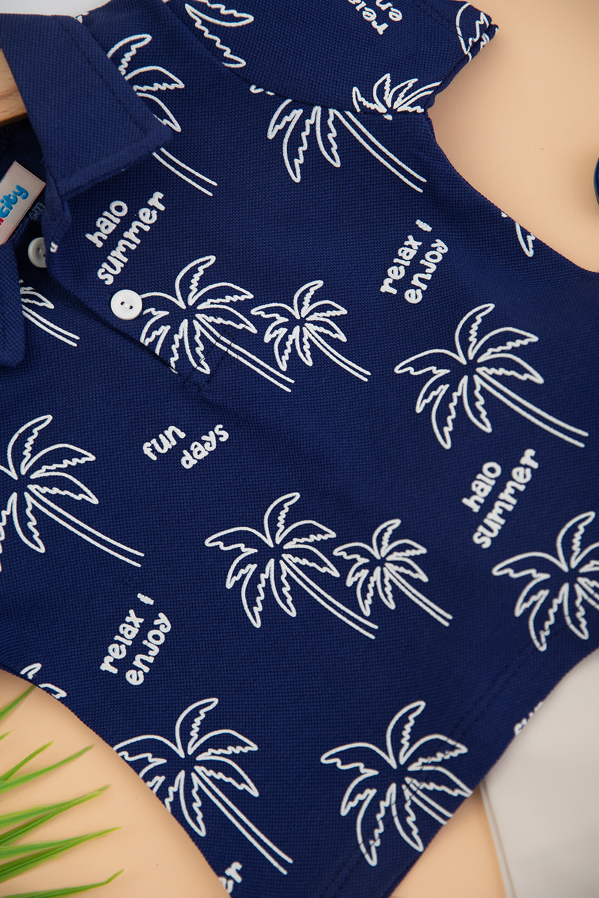 Erkek Bebek Palmiye Baskılı Kot Şortlu Takım - 24284 (9-24 Ay)