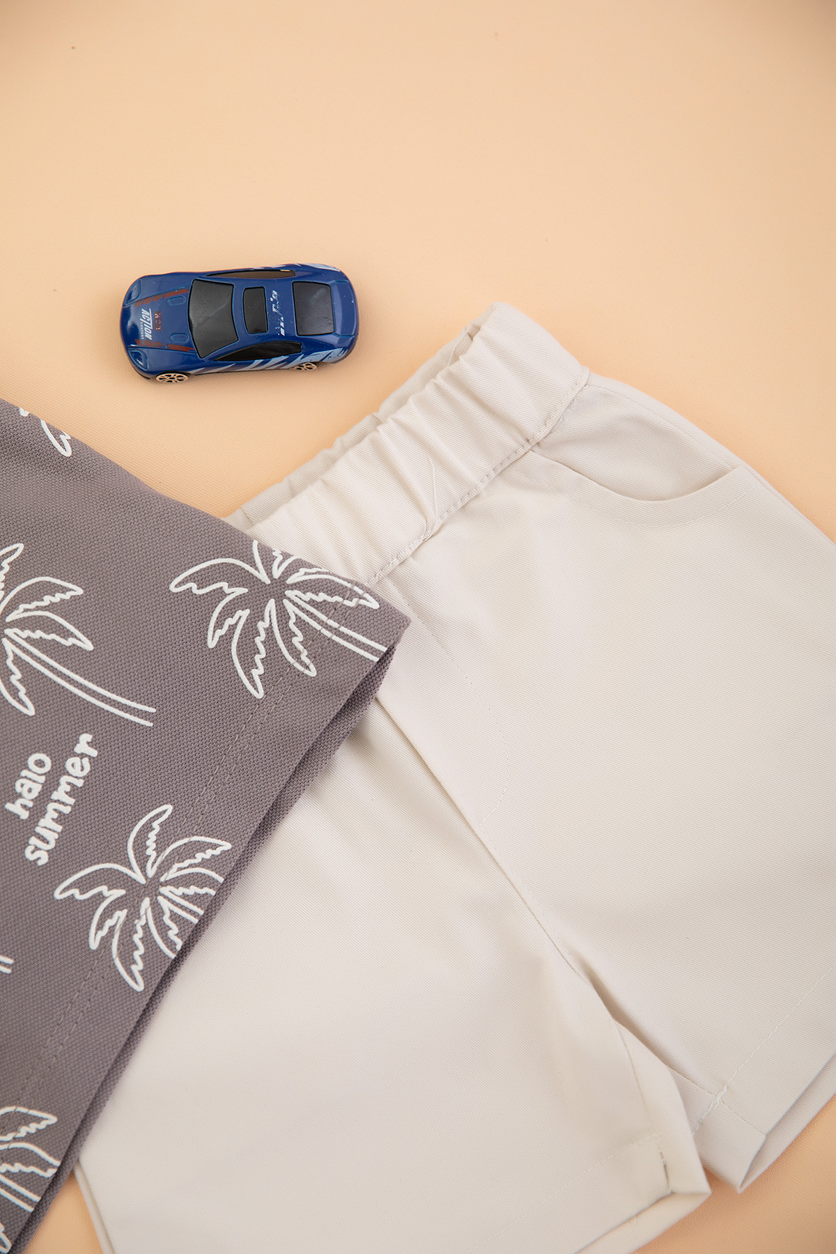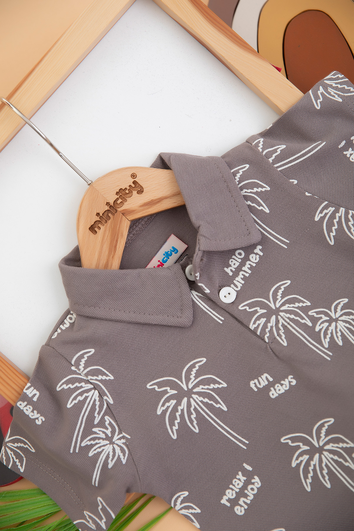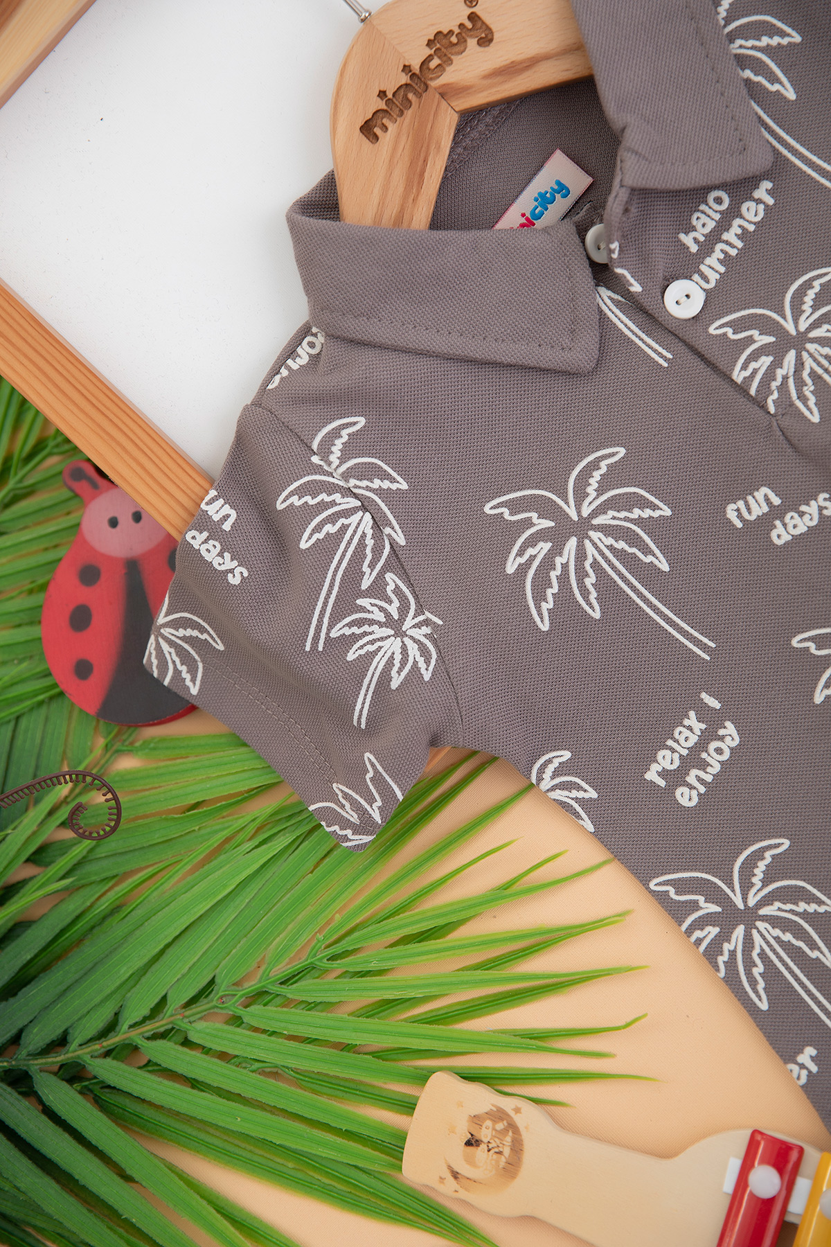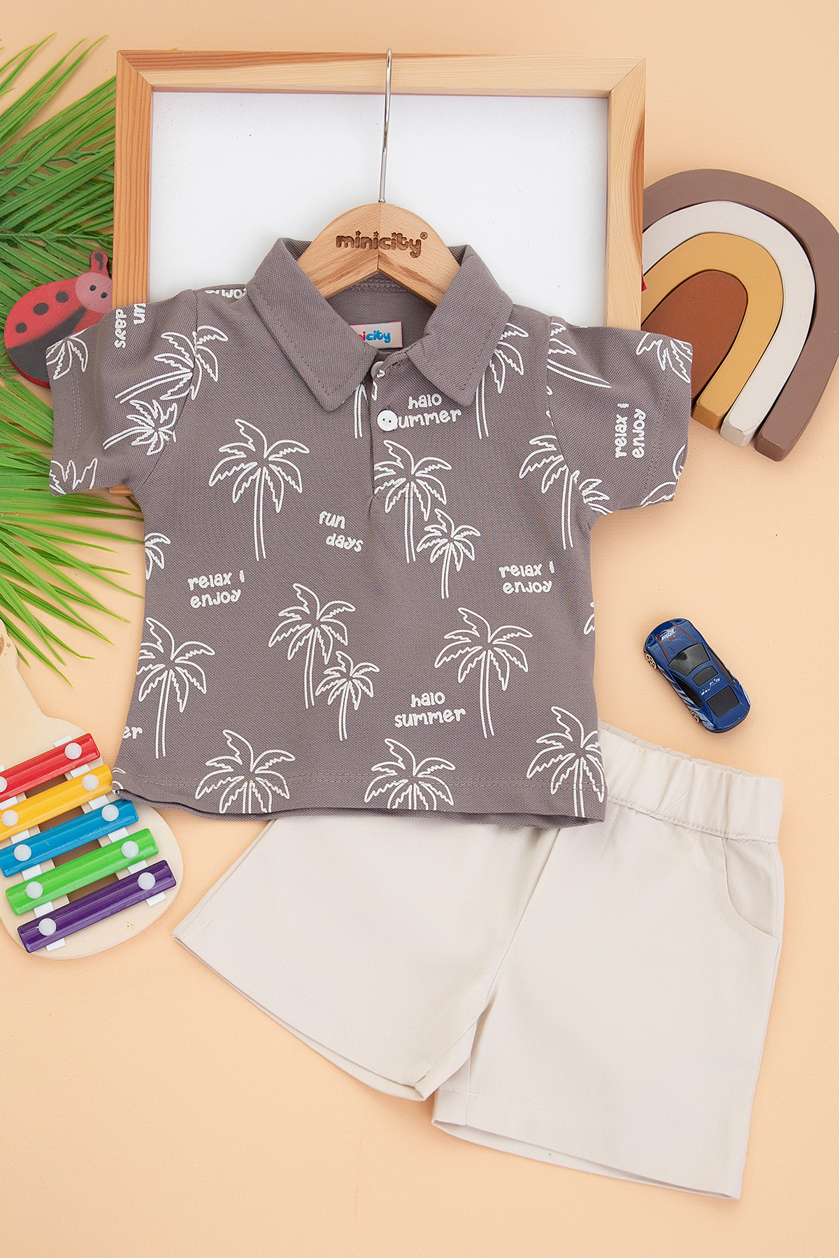Erkek Bebek Palmiye Baskılı Kot Şortlu Takım - 24284 (9-24 Ay)