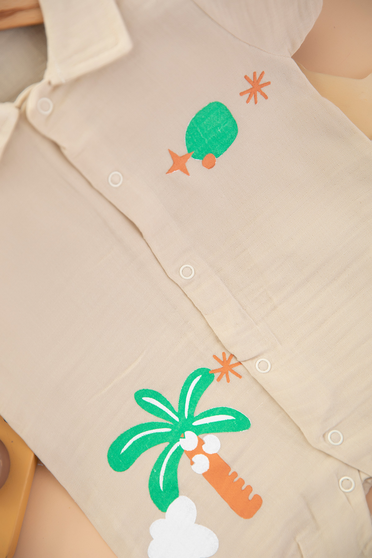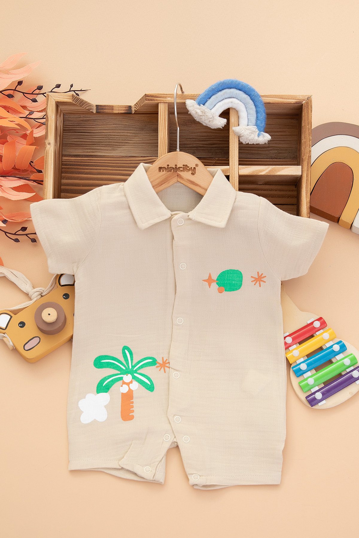 Erkek Bebek Palmiye Baskılı Şort Tulum - 2596 (3-12 Ay)