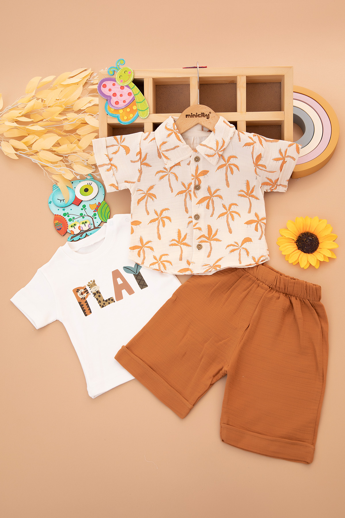 Erkek Bebek Palmiye Baskılı Şortlu Takım - 1657 (6-24 Ay)