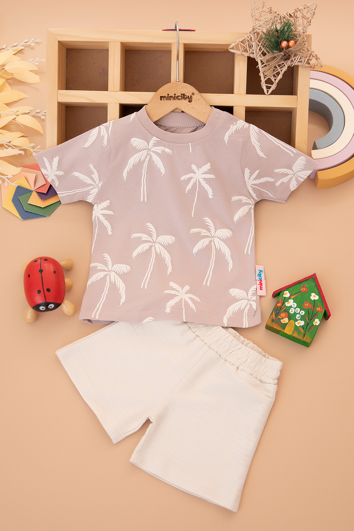Erkek Bebek Palmiye Baskılı Şortlu Takım - 25336 (9-24 Ay)