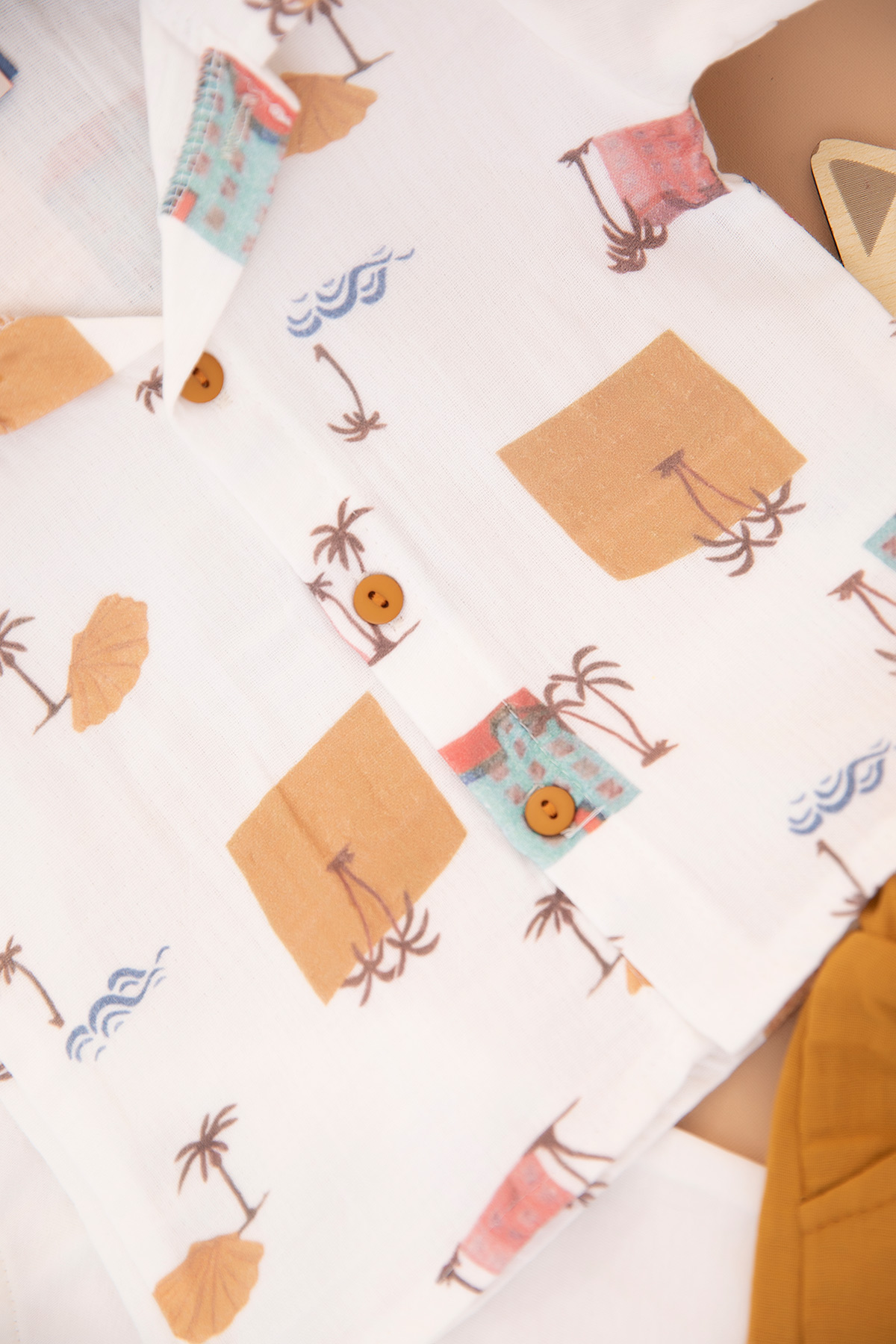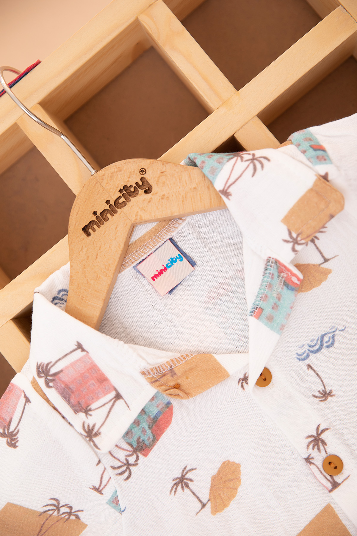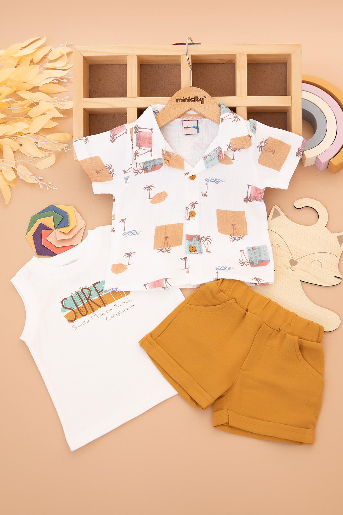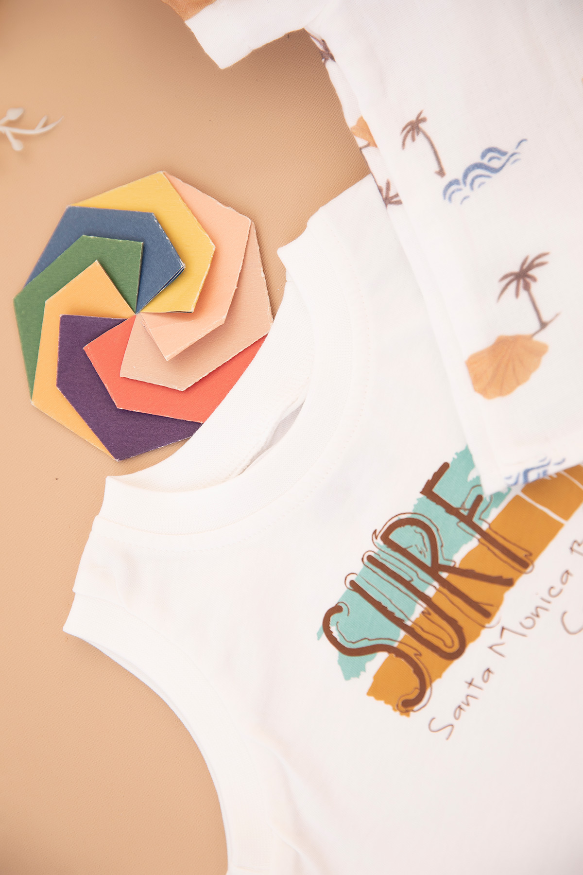 Erkek Bebek Palmiye Baskılı Şortlu Takım - 25442 (9-24 Ay)