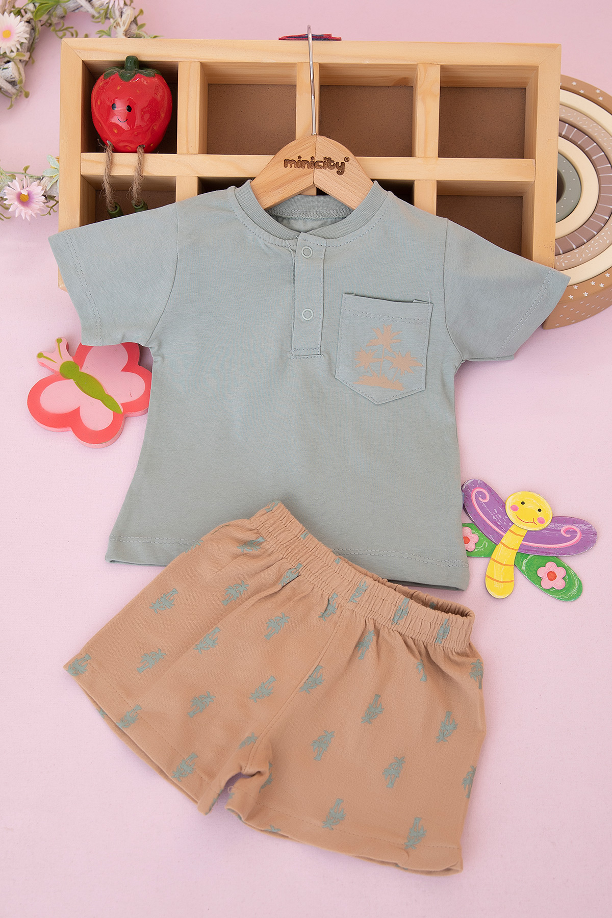 Erkek Bebek Palmiye Baskılı Şortlu Takım - 26525 (9-24 Ay)