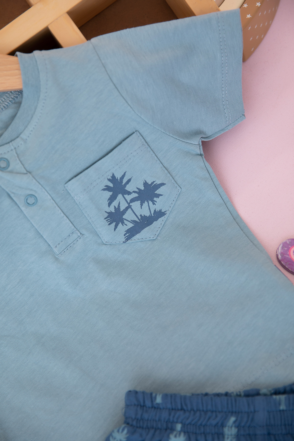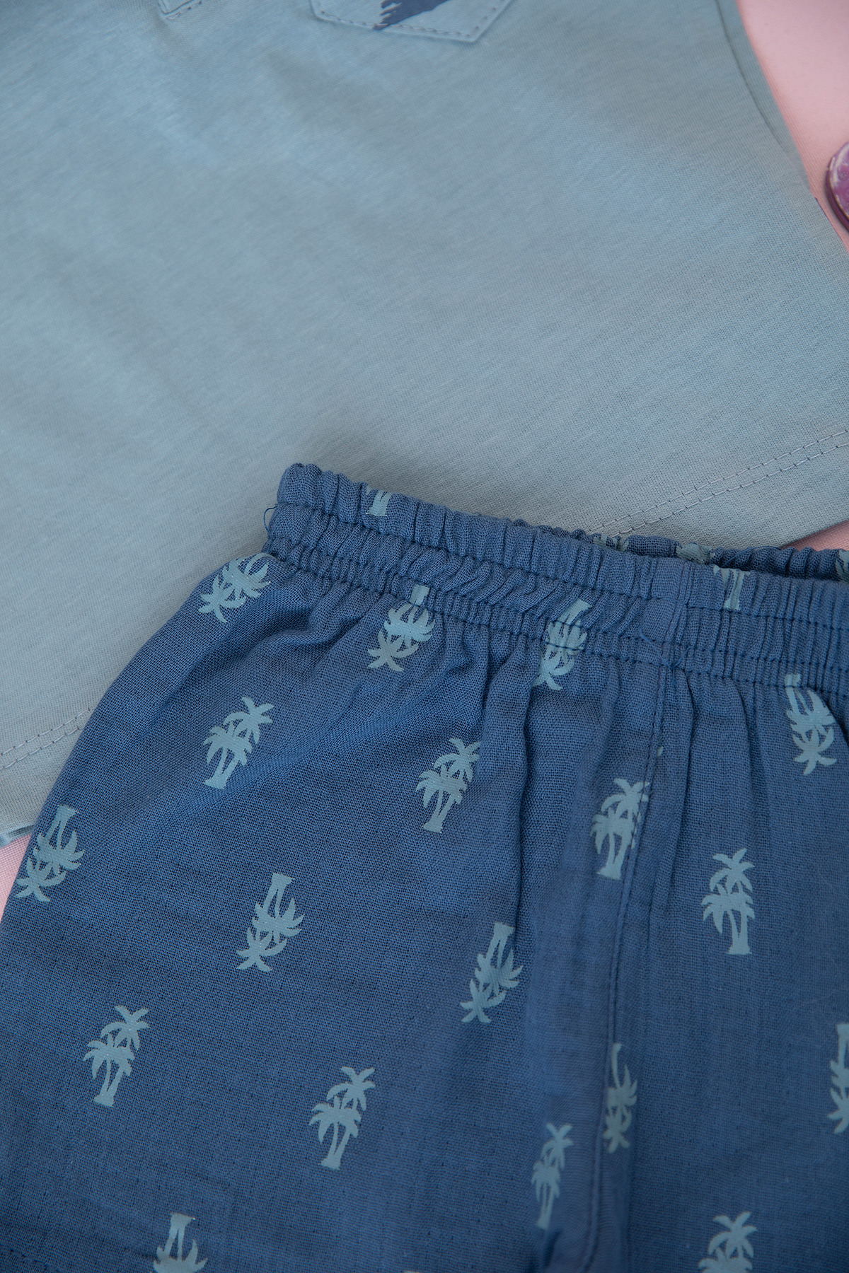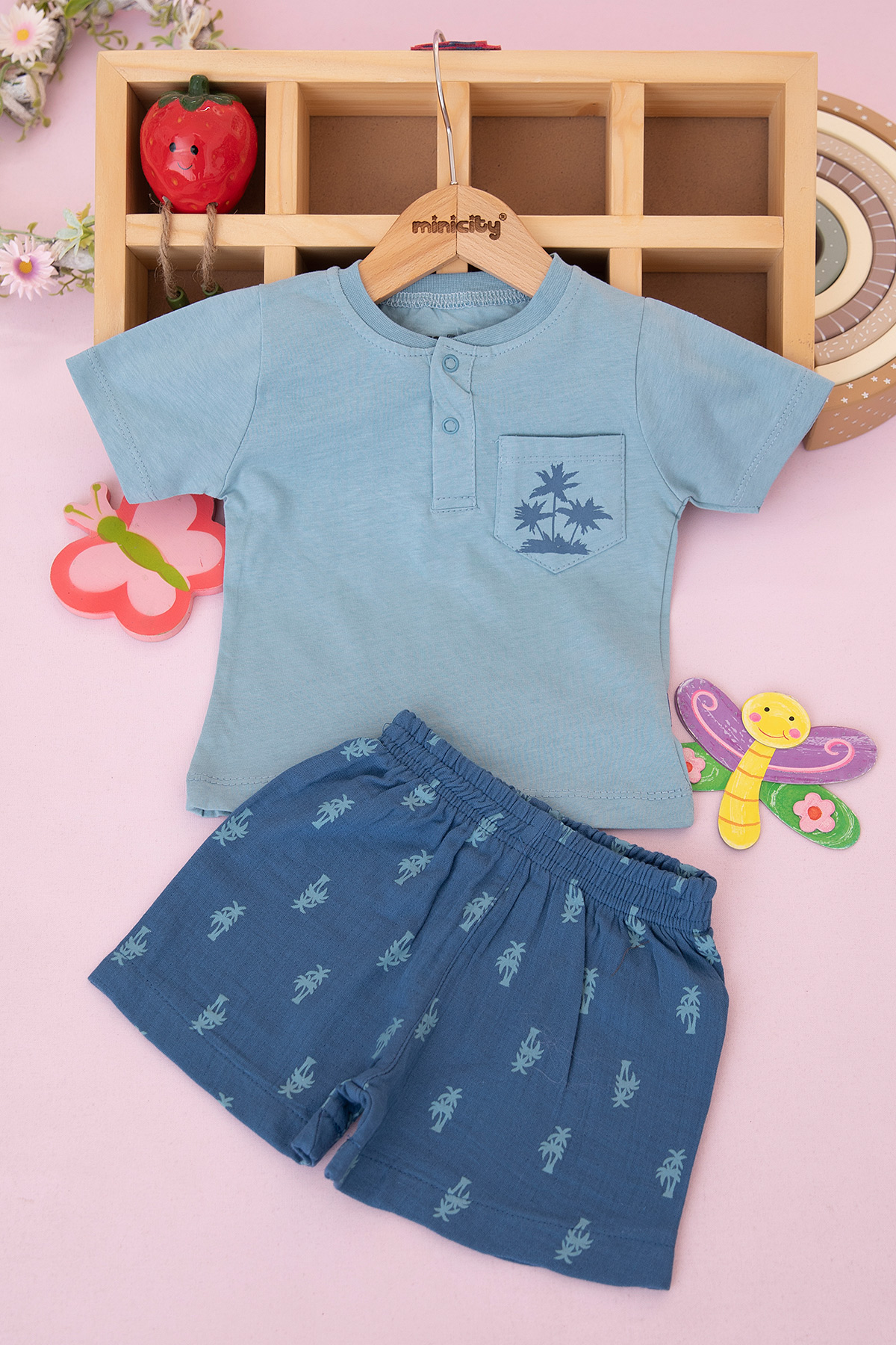 Erkek Bebek Palmiye Baskılı Şortlu Takım - 26525 (9-24 Ay)