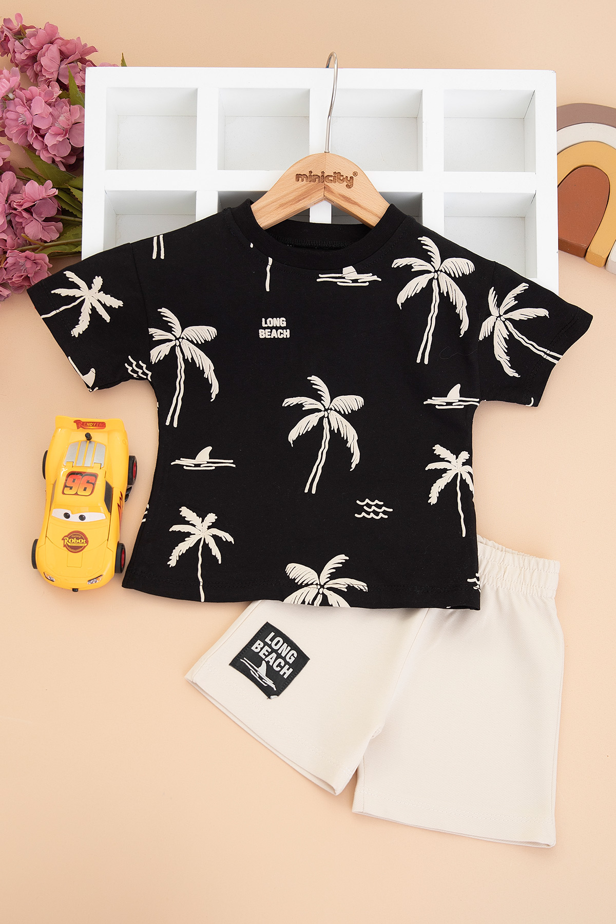 Erkek Bebek Palmiye Baskılı Şortlu Takım - 26551 (9-24 Ay)
