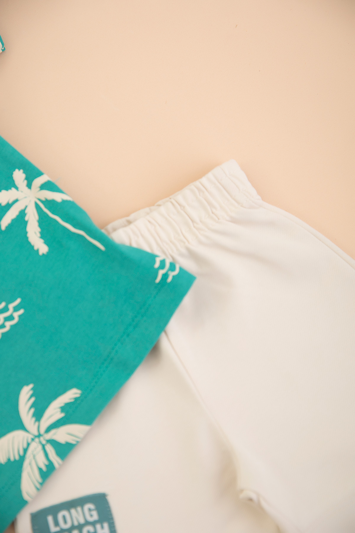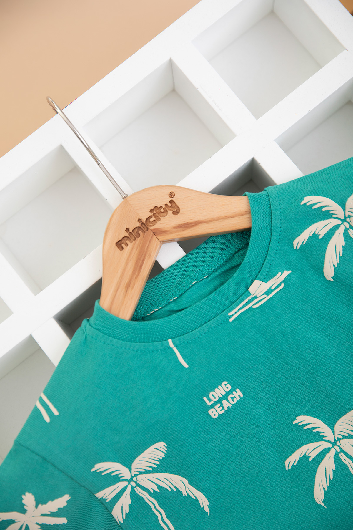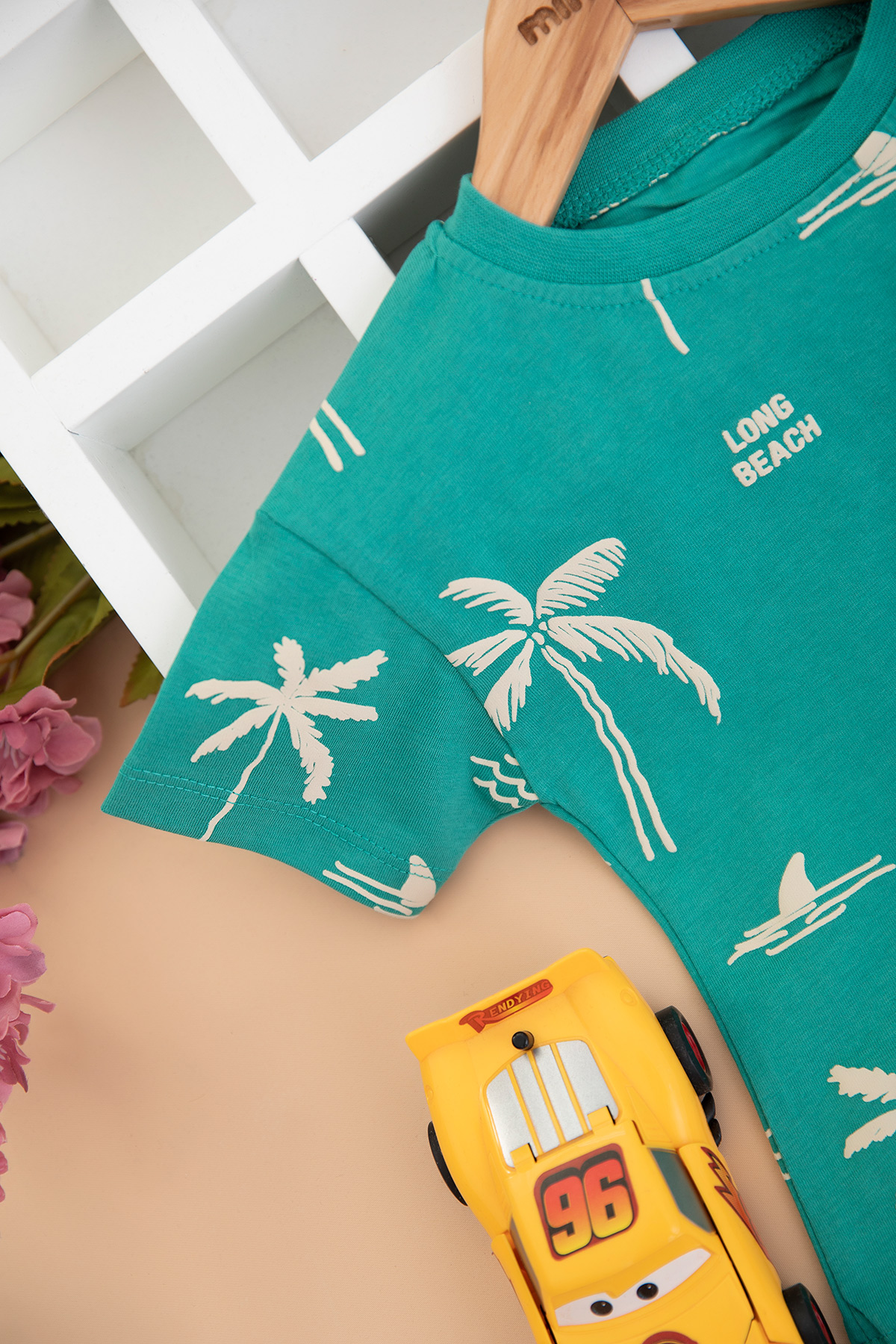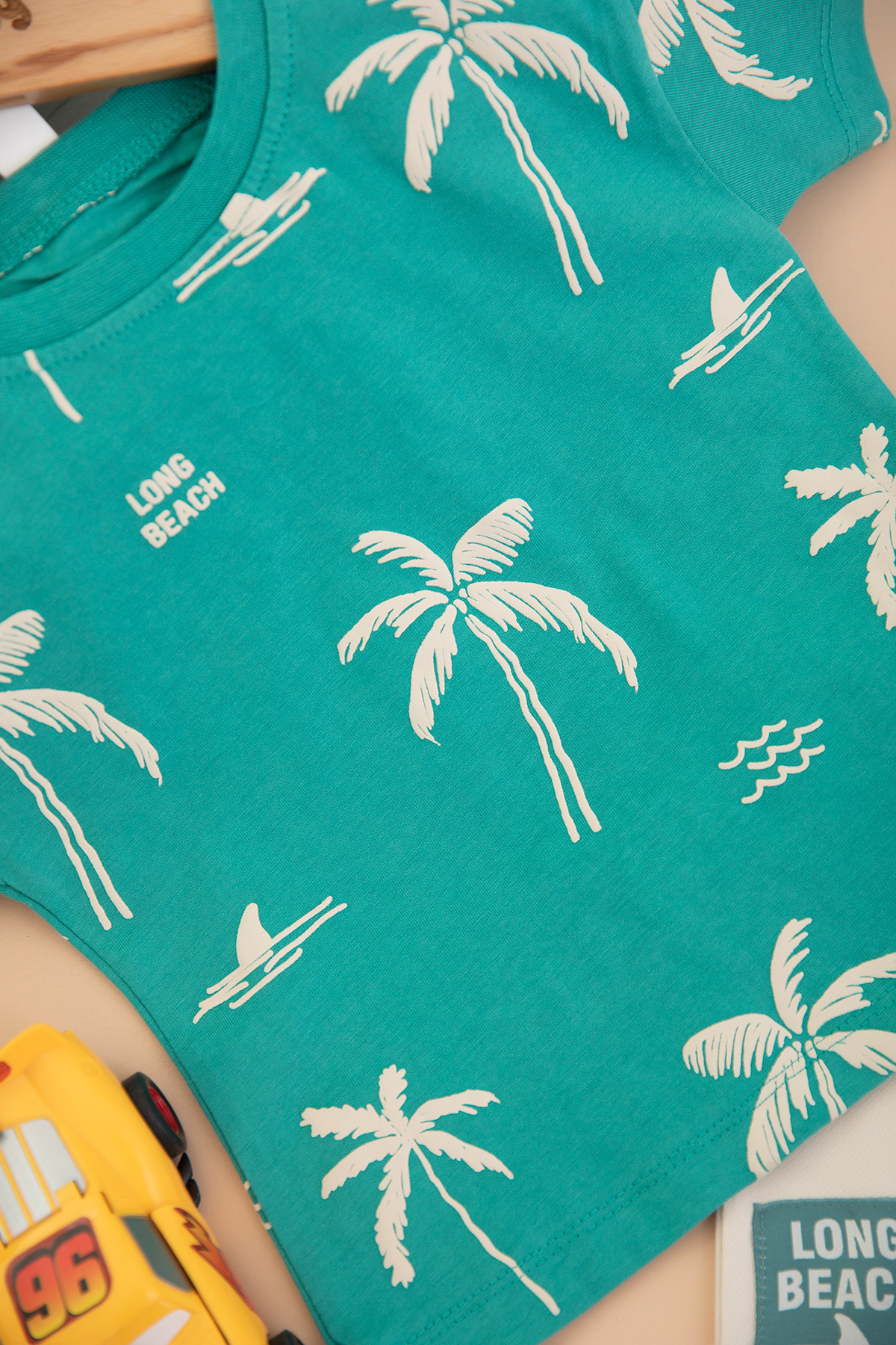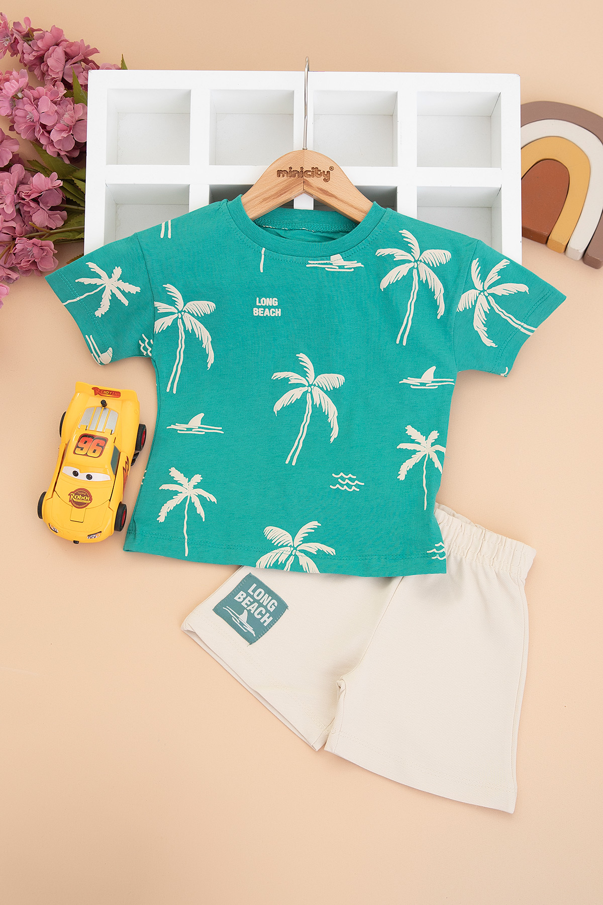 Erkek Bebek Palmiye Baskılı Şortlu Takım - 26551 (9-24 Ay)