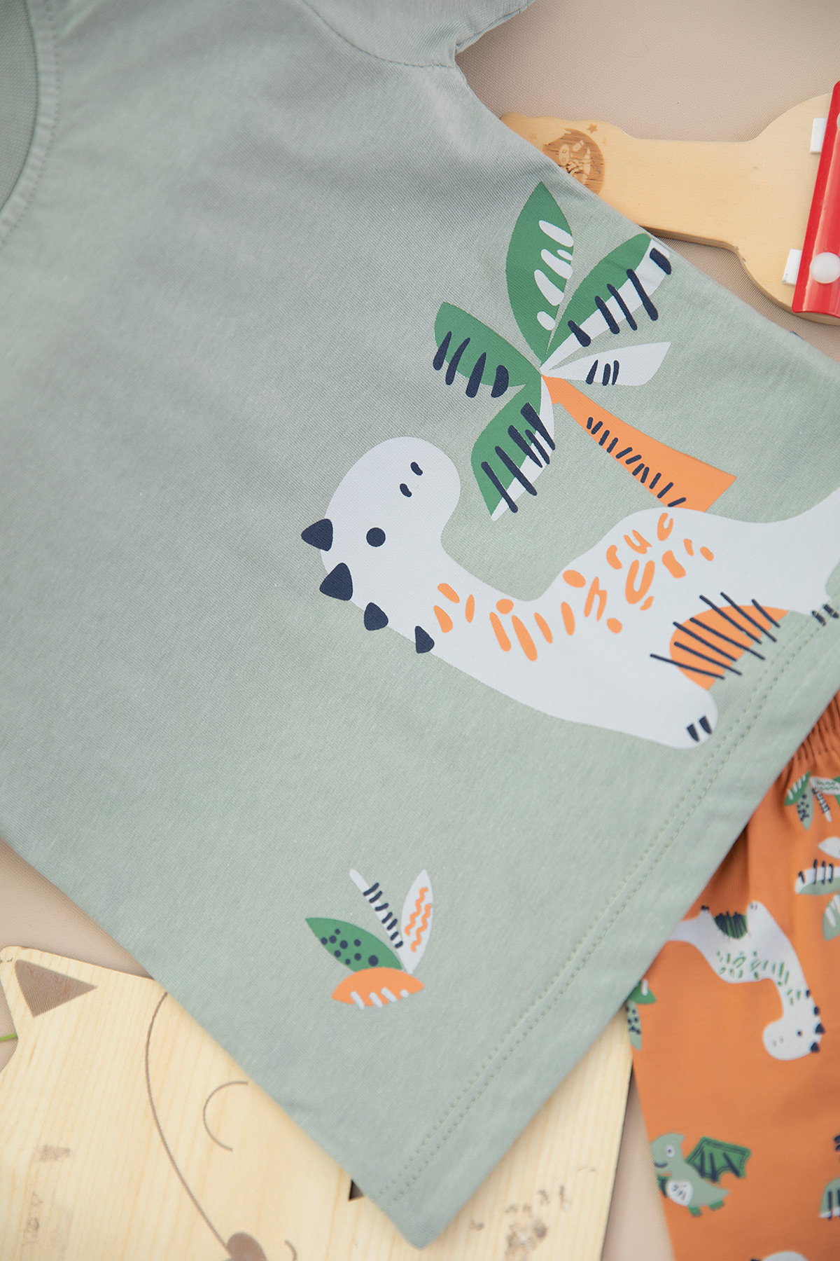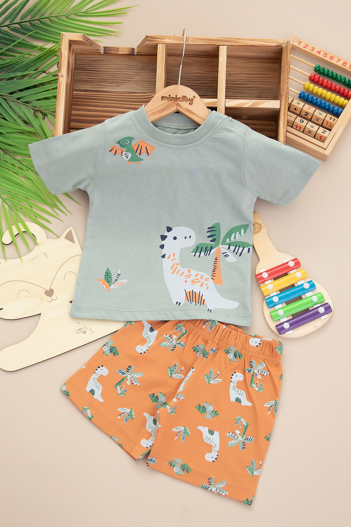 Erkek Bebek Palmiye Baskılı Takım - 25494 (9-24 Ay)