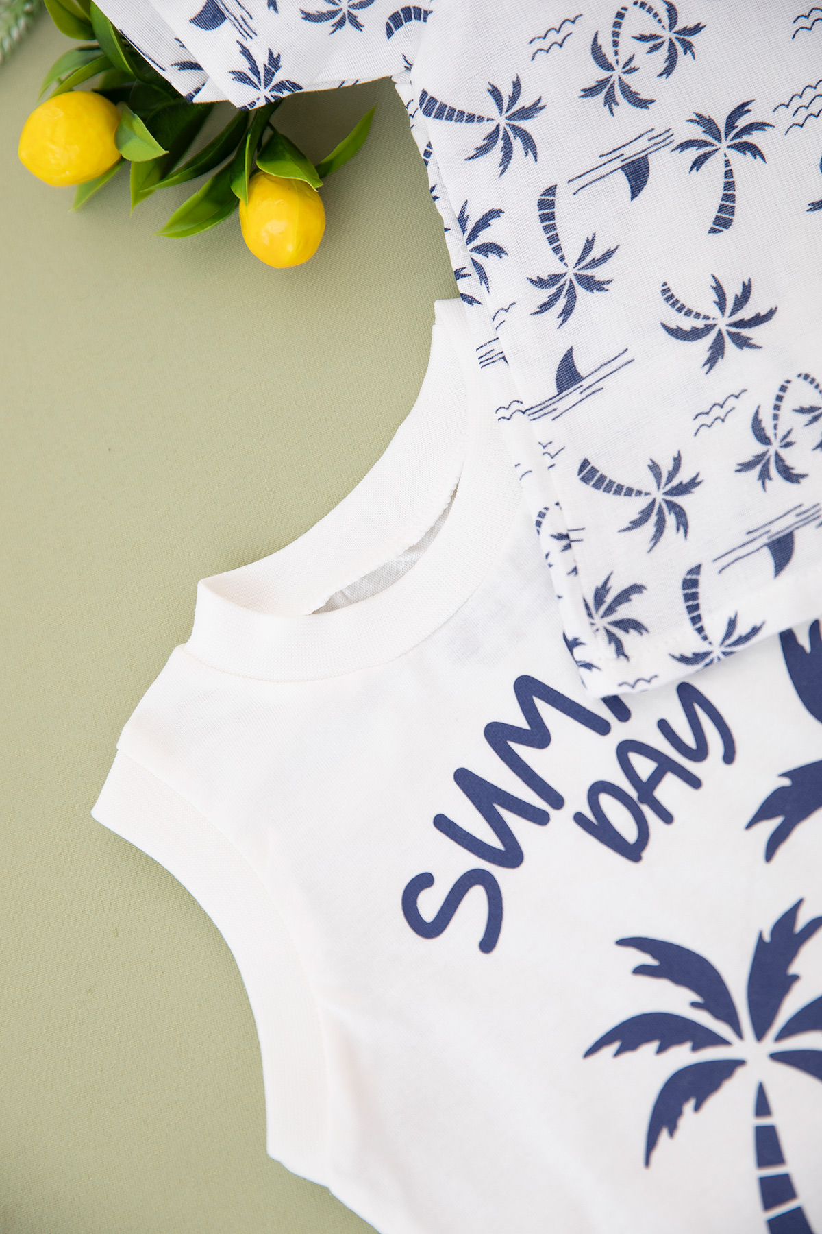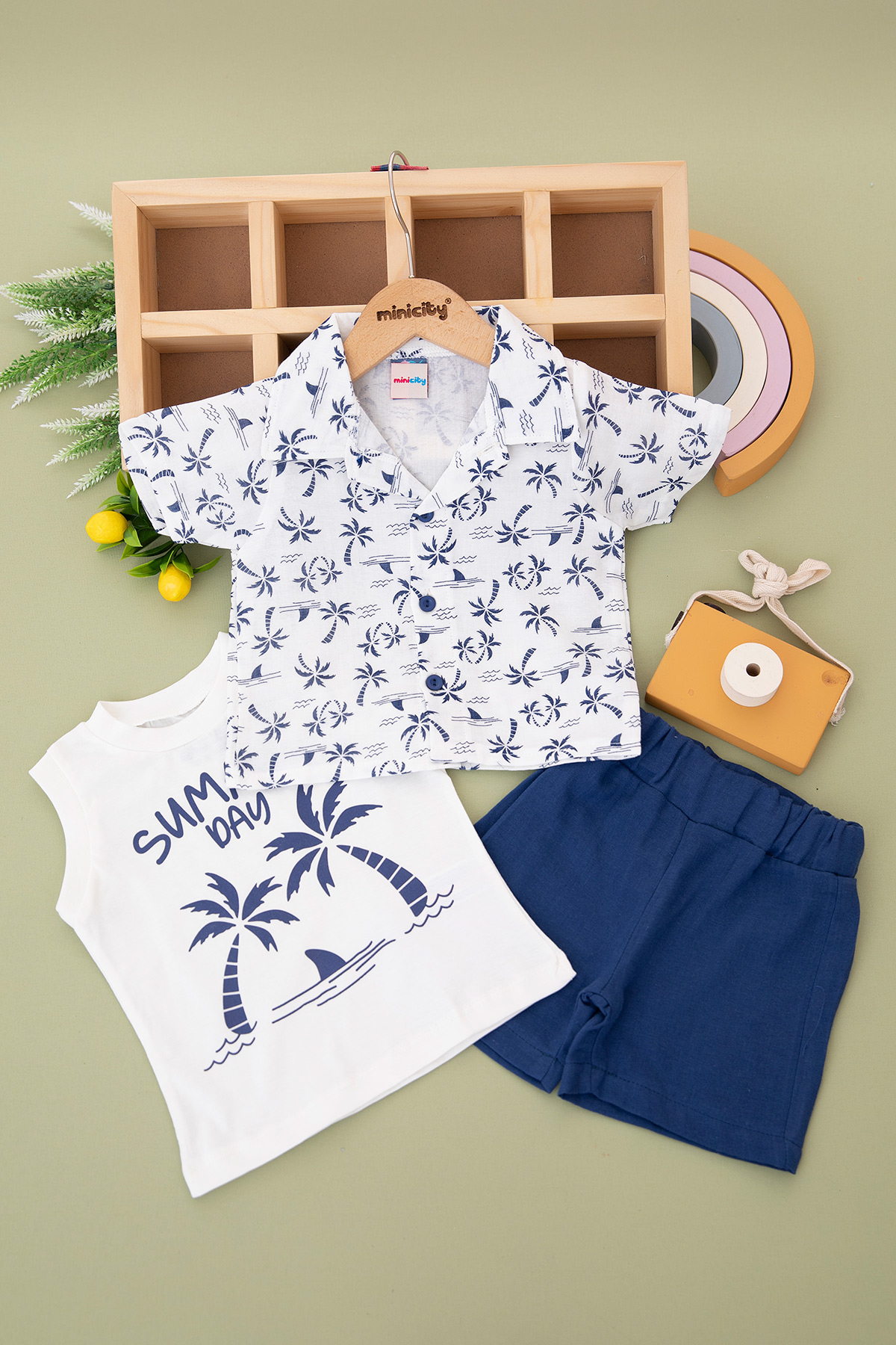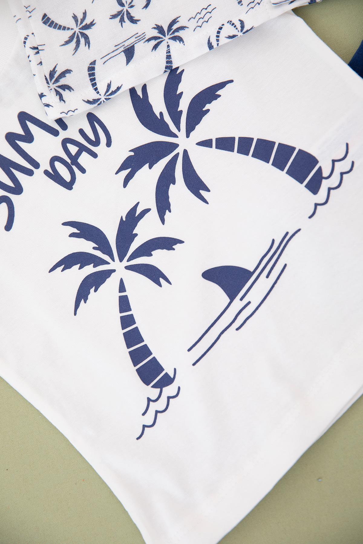 Erkek Bebek Palmiye Desenli Şortlu Takım - 24302 (9-24 Ay)