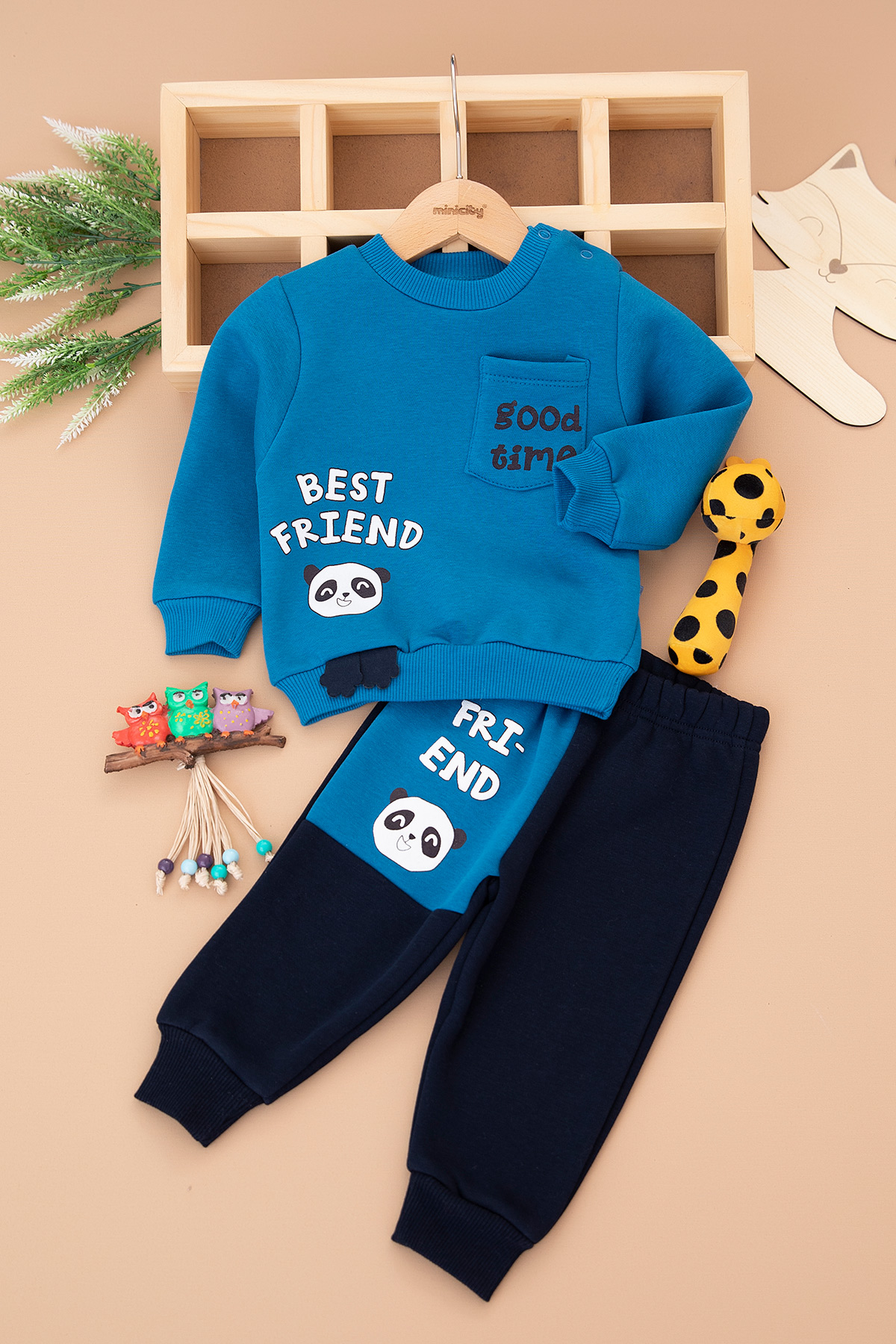 Erkek Bebek Panda Baskılı Üç İp Takım - 23838 (9-24 Ay)