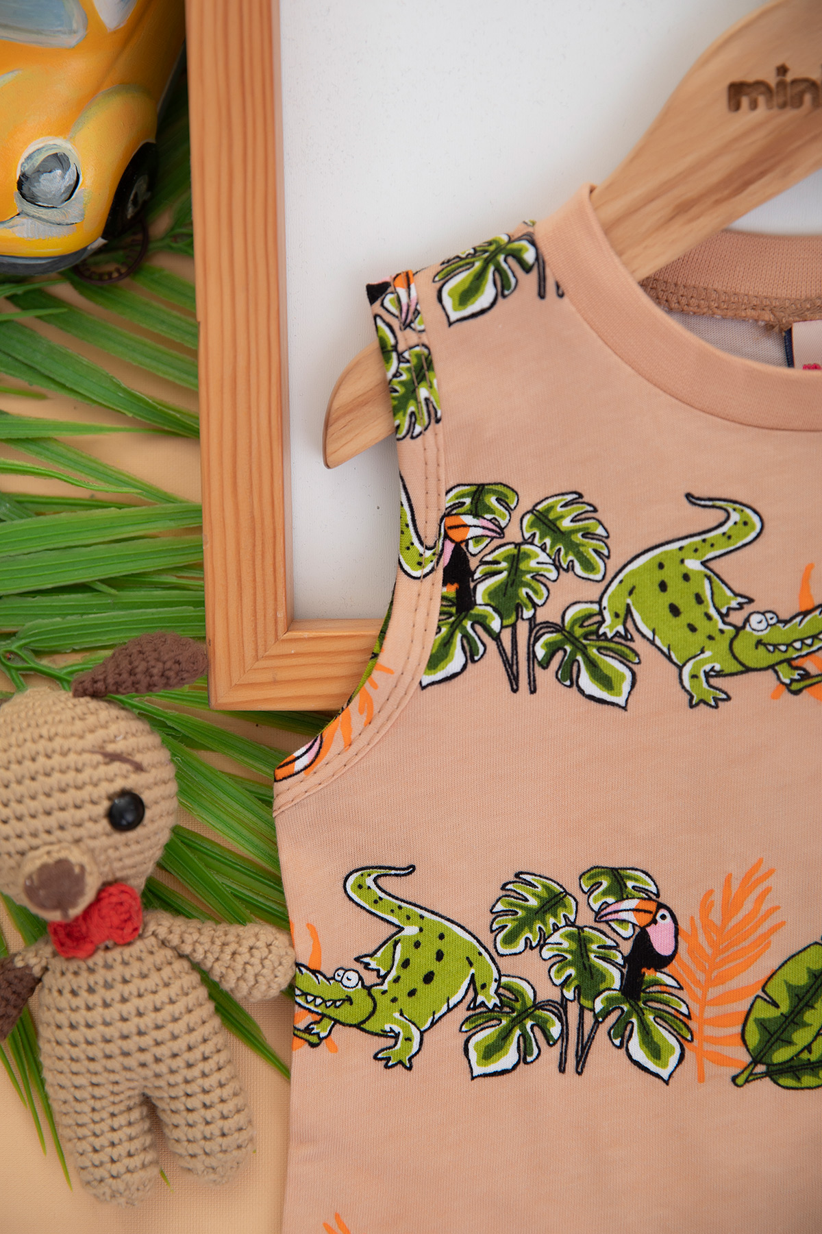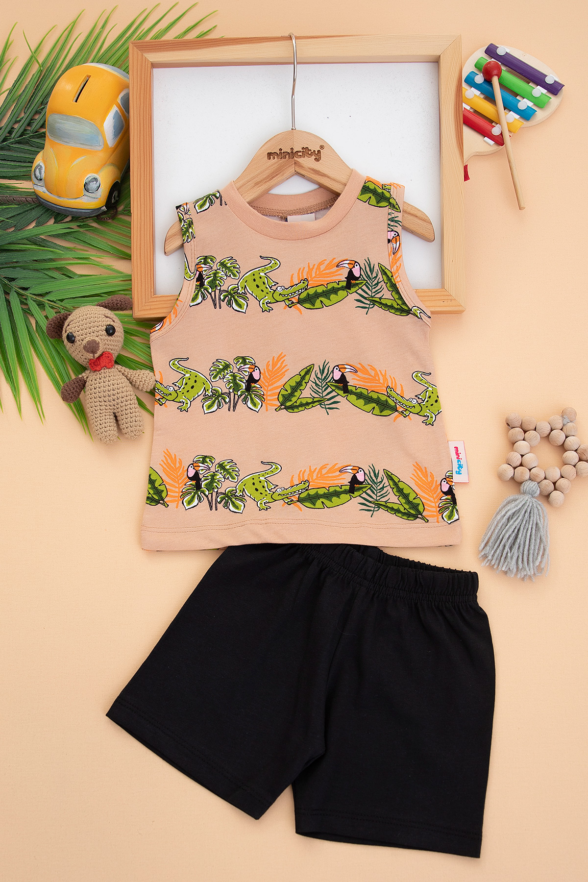 Erkek Bebek Papağan Baskılı Sıfır Kol Takım - 24366 (9-24 Ay)