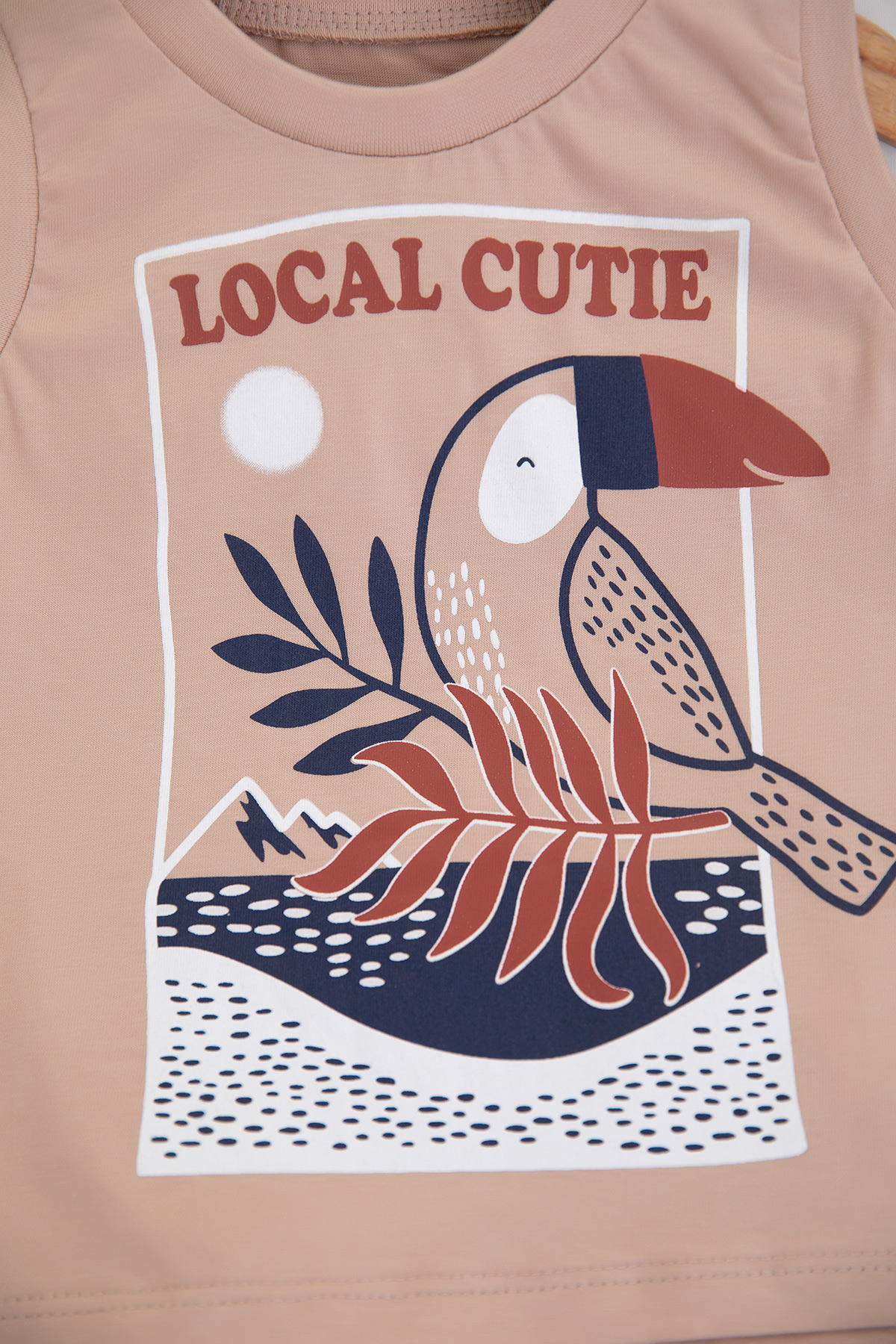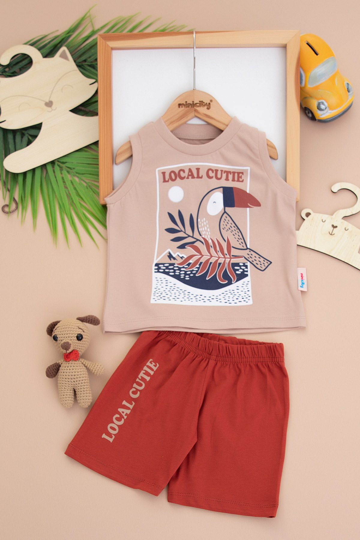 Erkek Bebek Papağan Baskılı Şortlu Takım - 24114 (9-24 Ay)