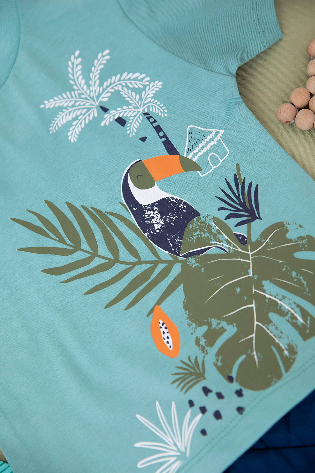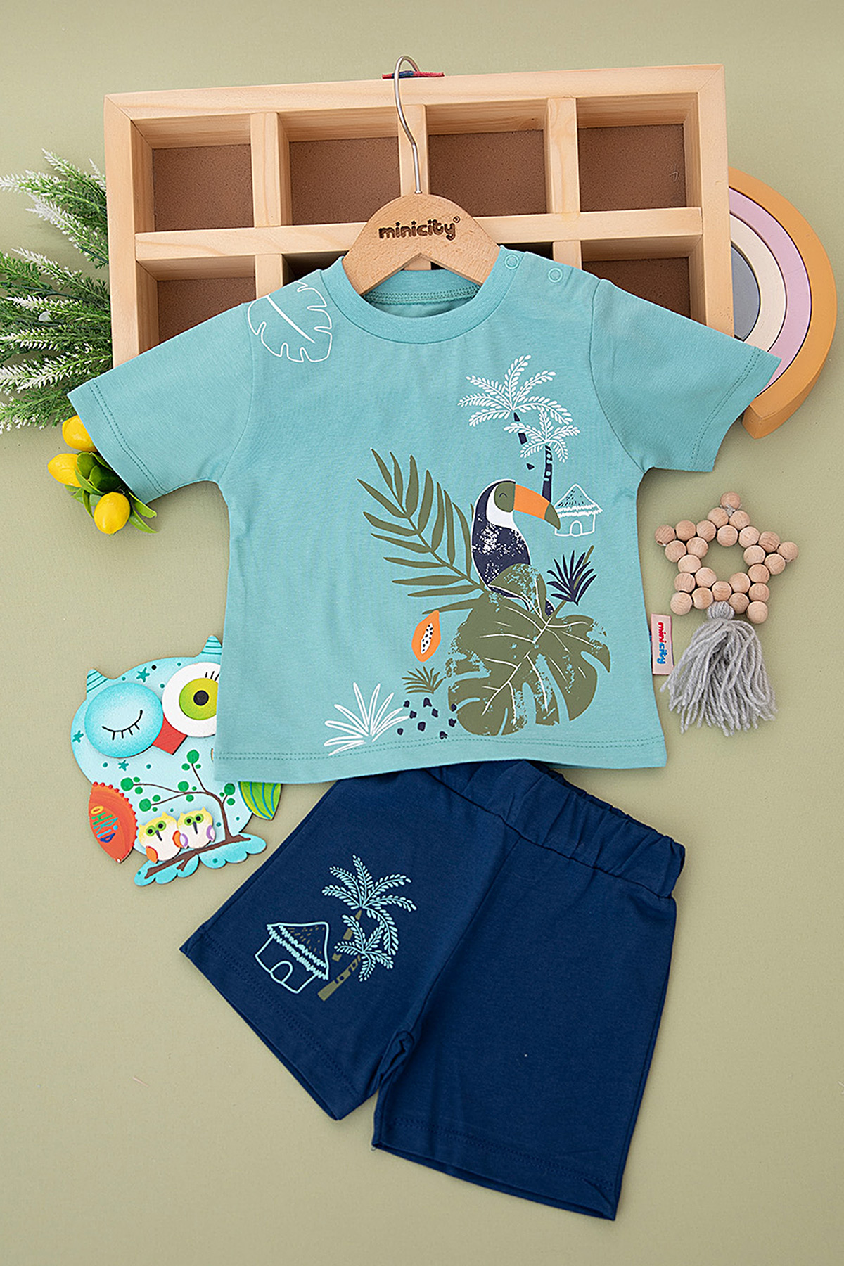 Erkek Bebek Papağan Baskılı Şortlu Takım - 24139 (9-24 Ay)
