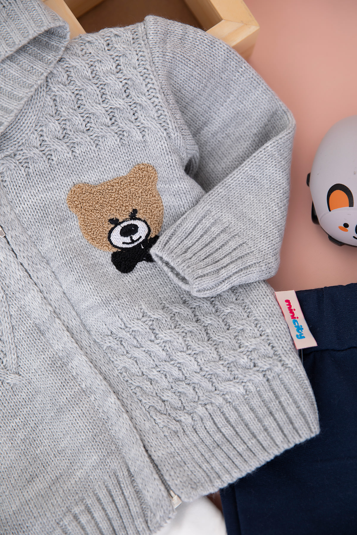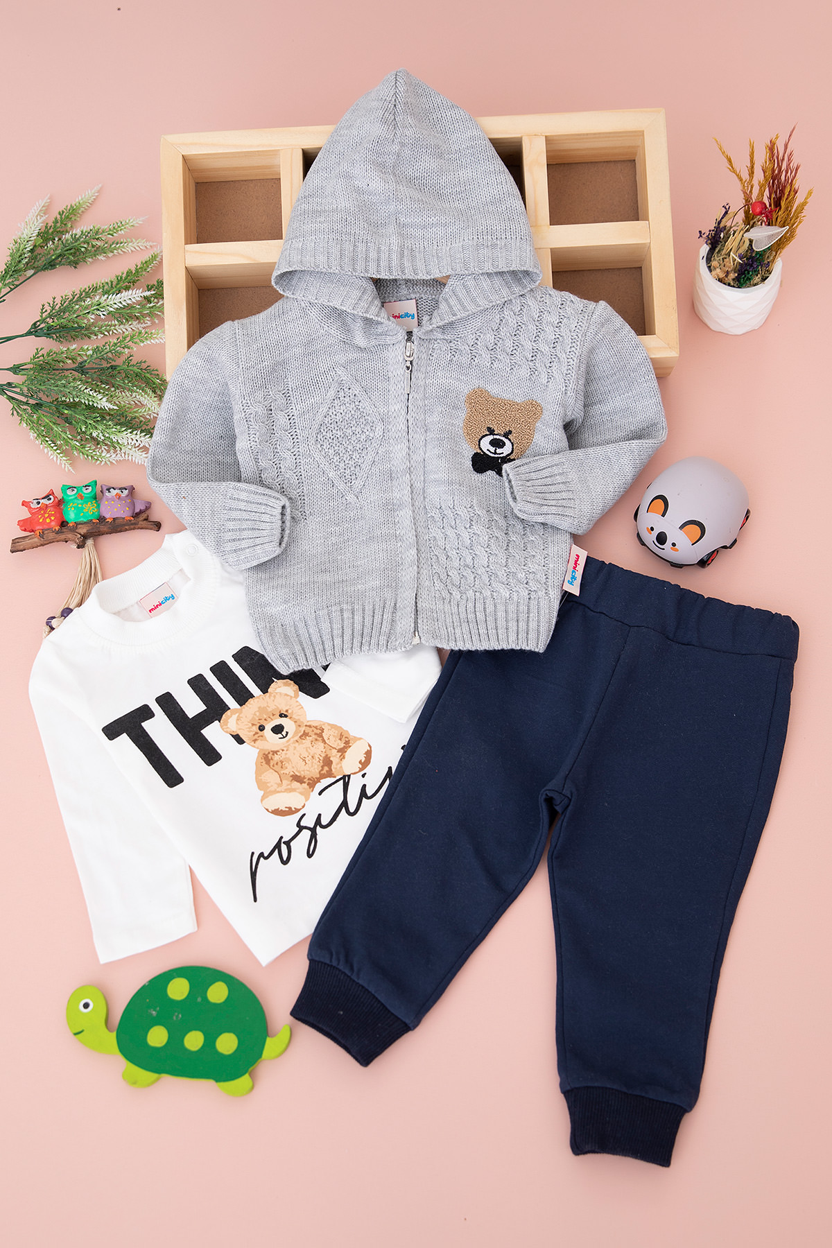 Erkek Bebek Papyonlu Ayı Triko Üçlü Takım - 13787 (6-24 Ay)