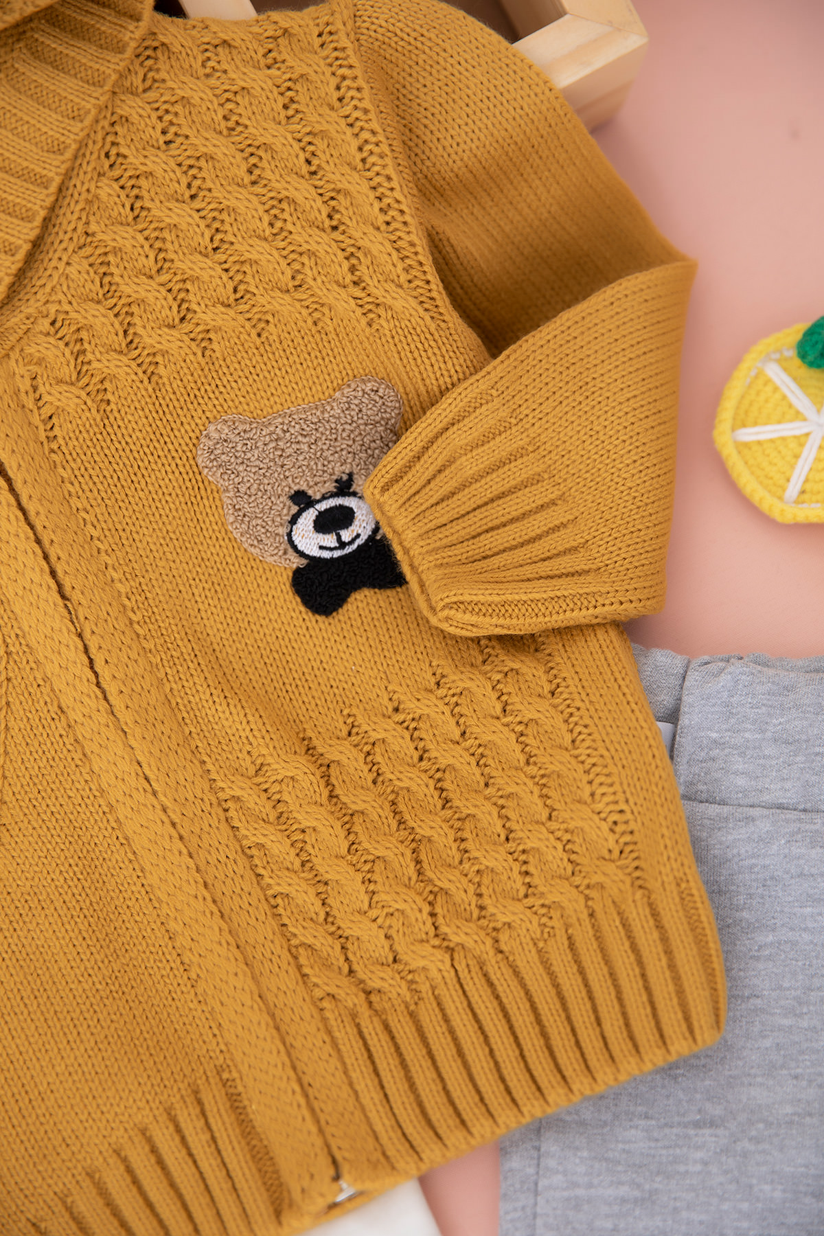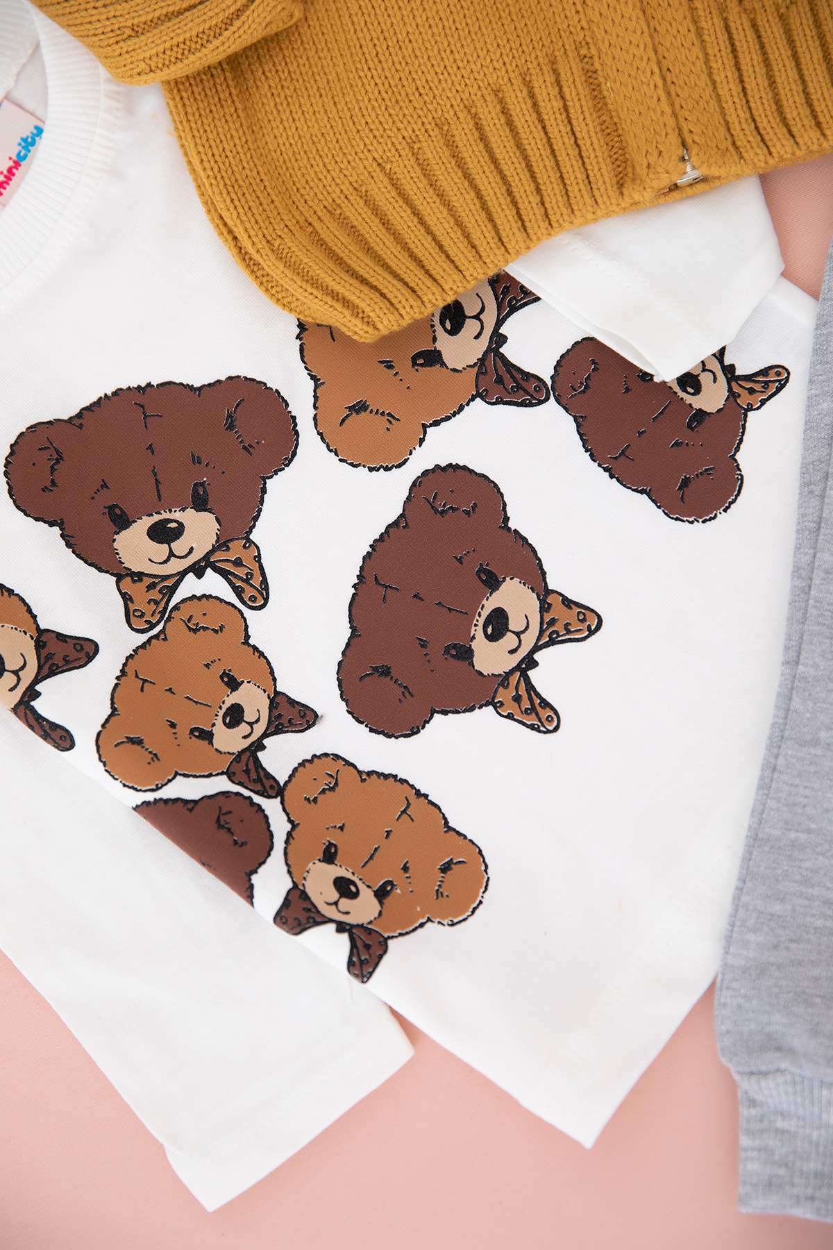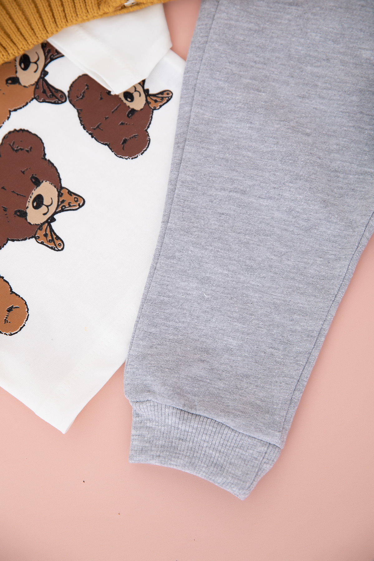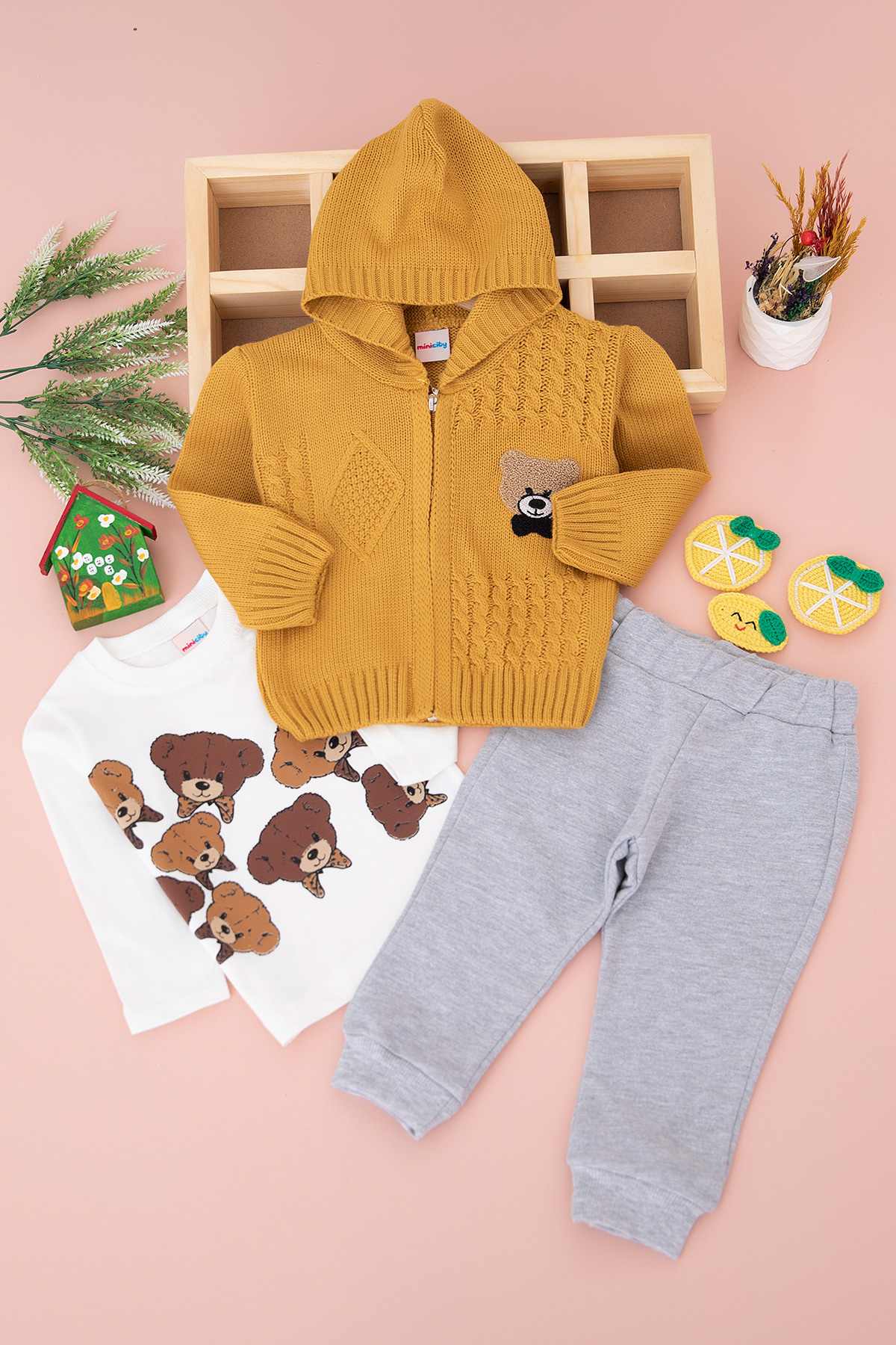 Erkek Bebek Papyonlu Ayı Triko Üçlü Takım - 13787 (6-24 Ay)