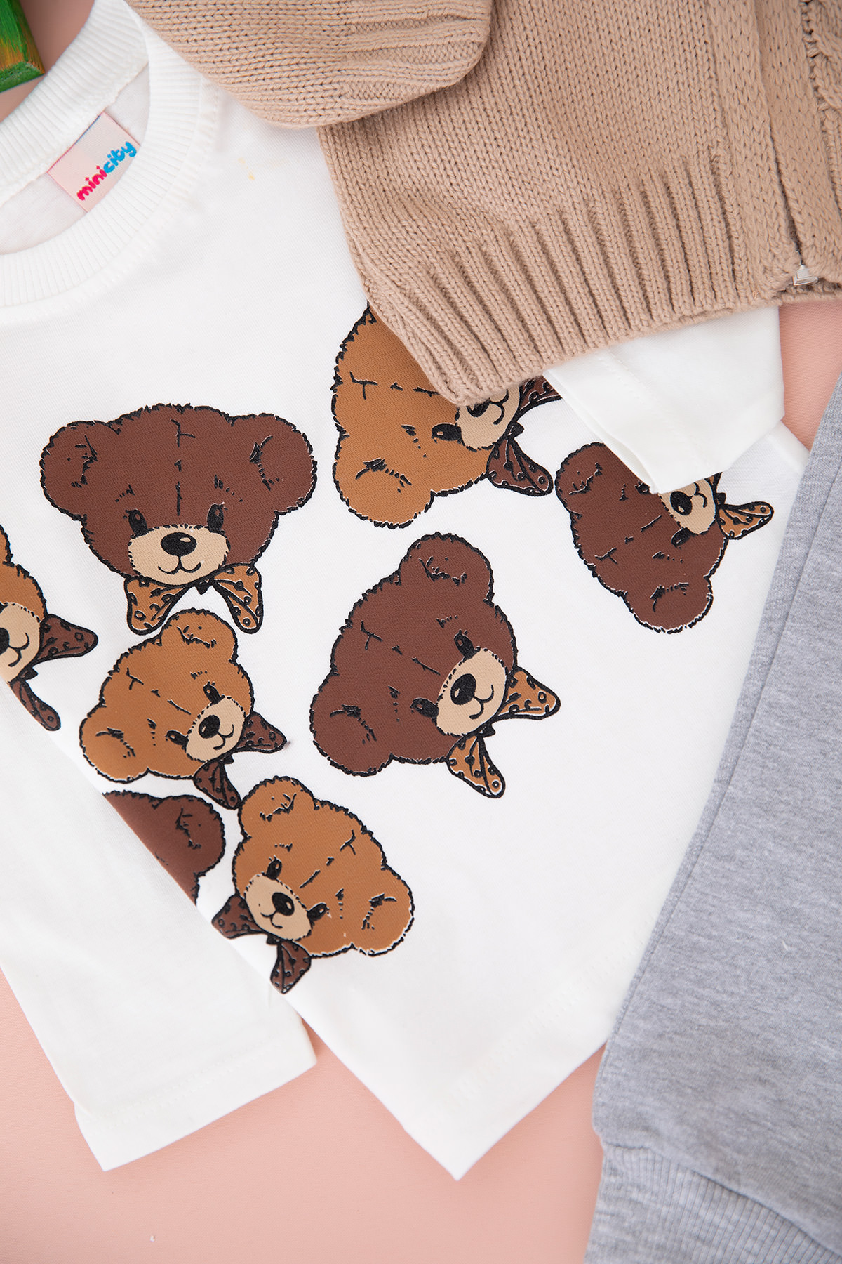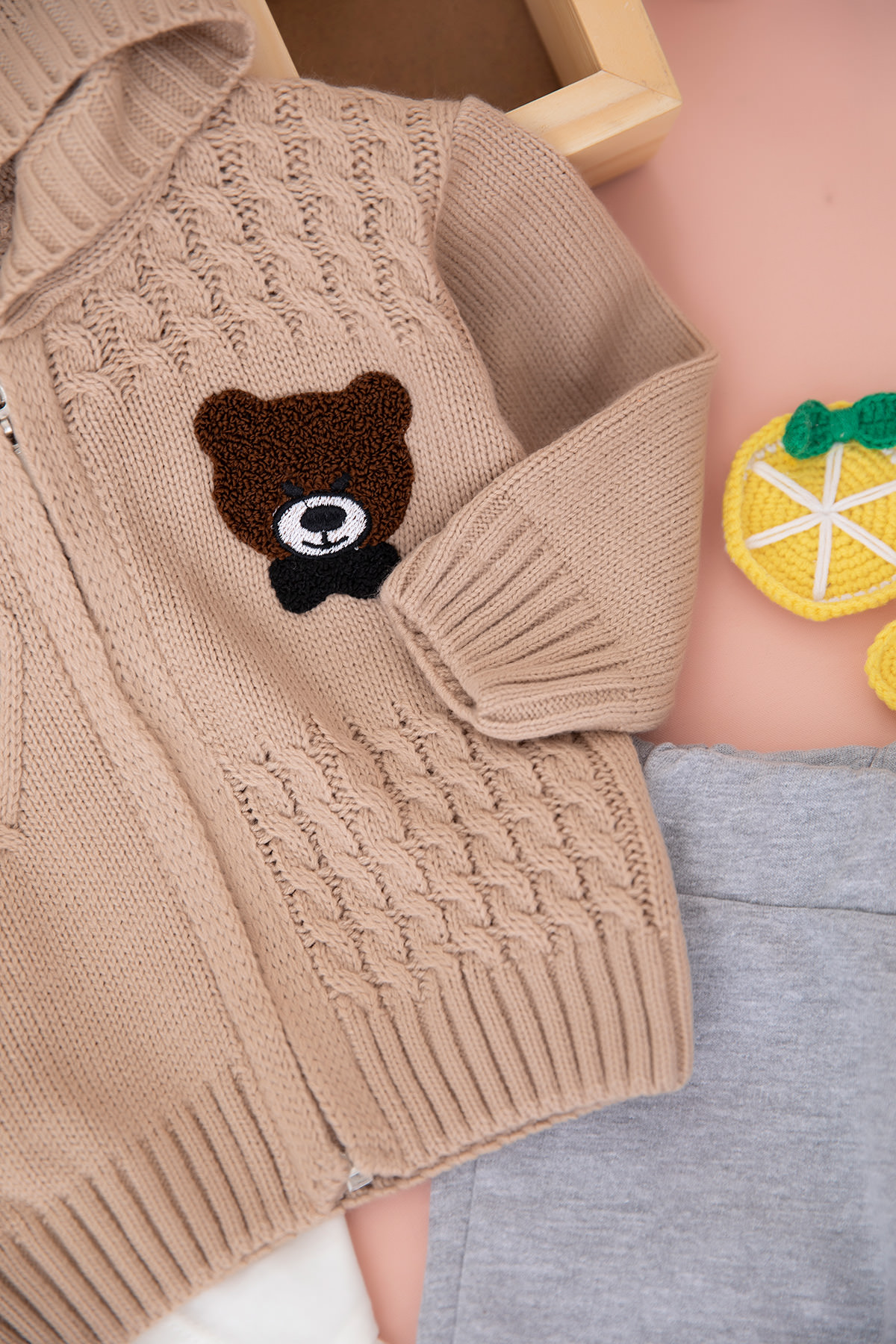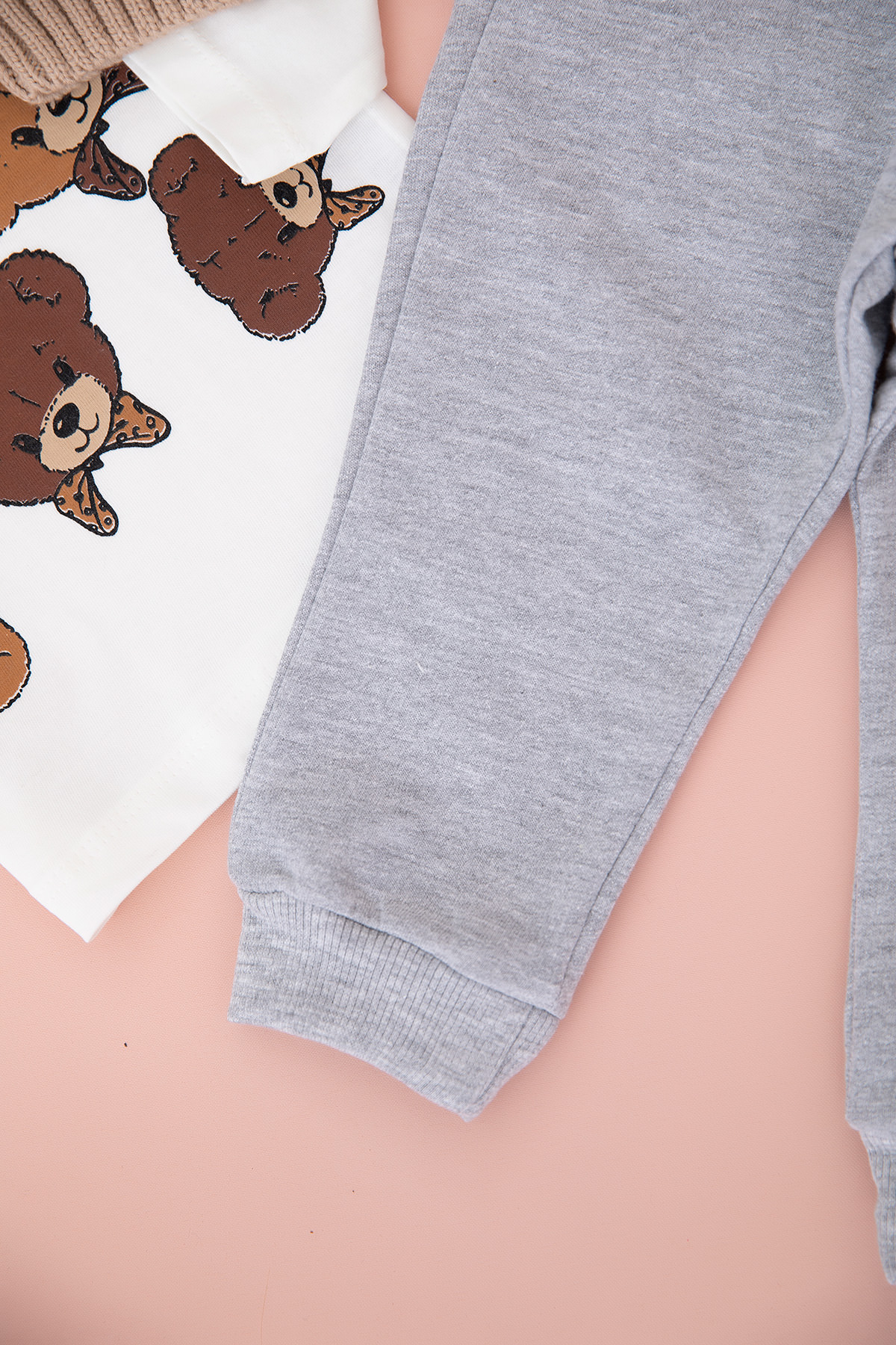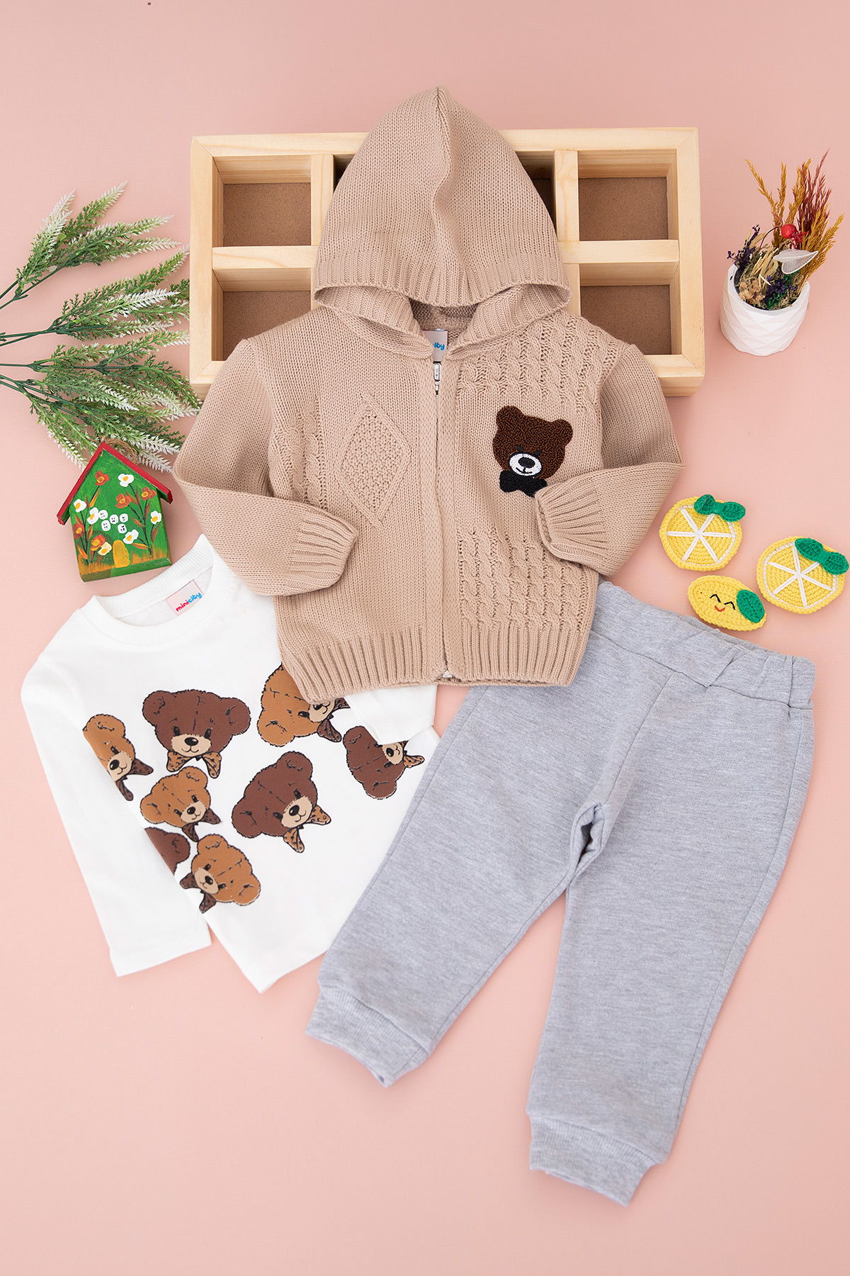 Erkek Bebek Papyonlu Ayı Triko Üçlü Takım - 13787 (6-24 Ay)