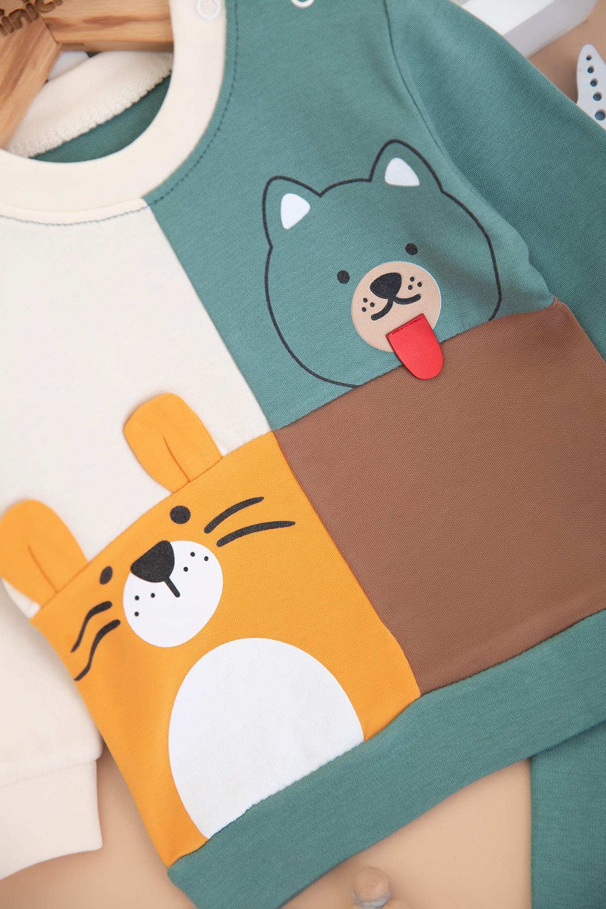 Erkek Bebek Parçalı Ayı Baskılı Takım - 1098 (6-18 Ay)