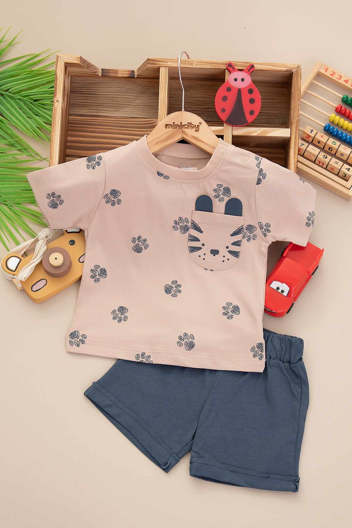 Erkek Bebek Pati Baskılı Şortlu Takım - 25490 (9-24 Ay)