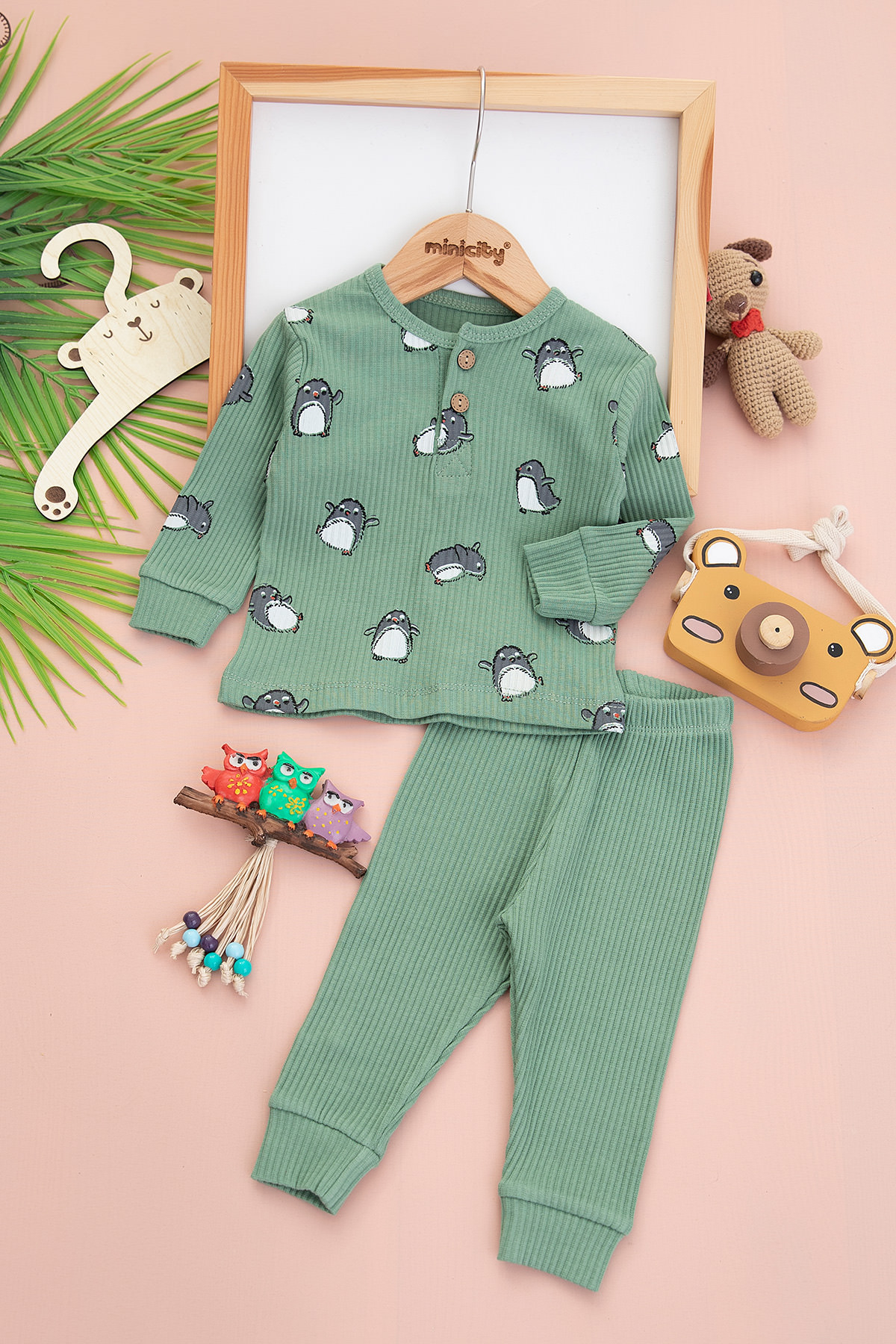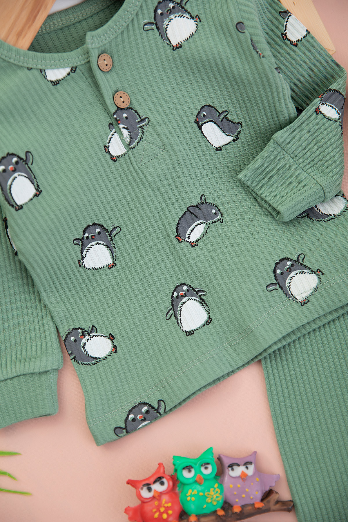 Erkek Bebek Penguen Baskılı Takım - 1176 (3-12 Ay)