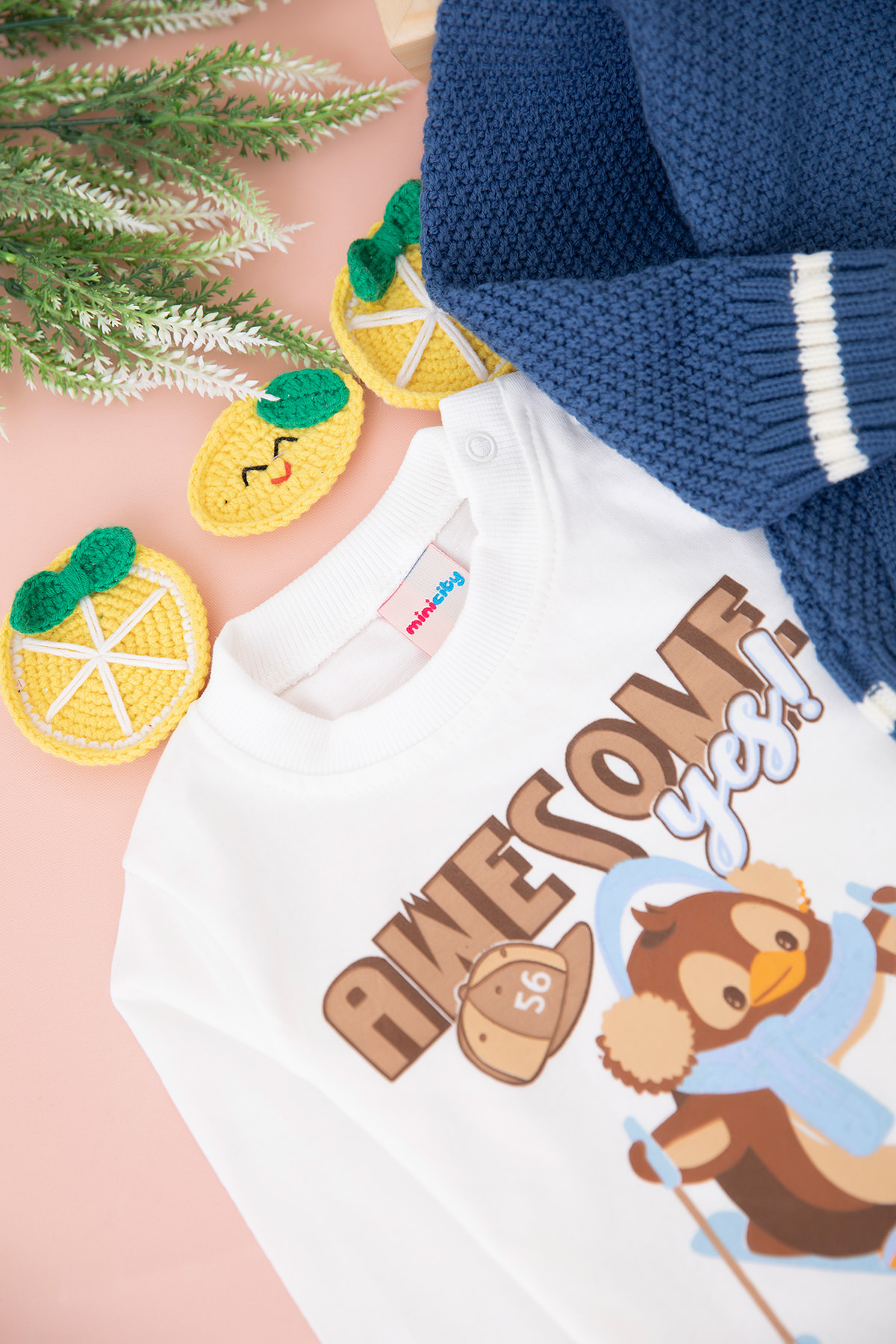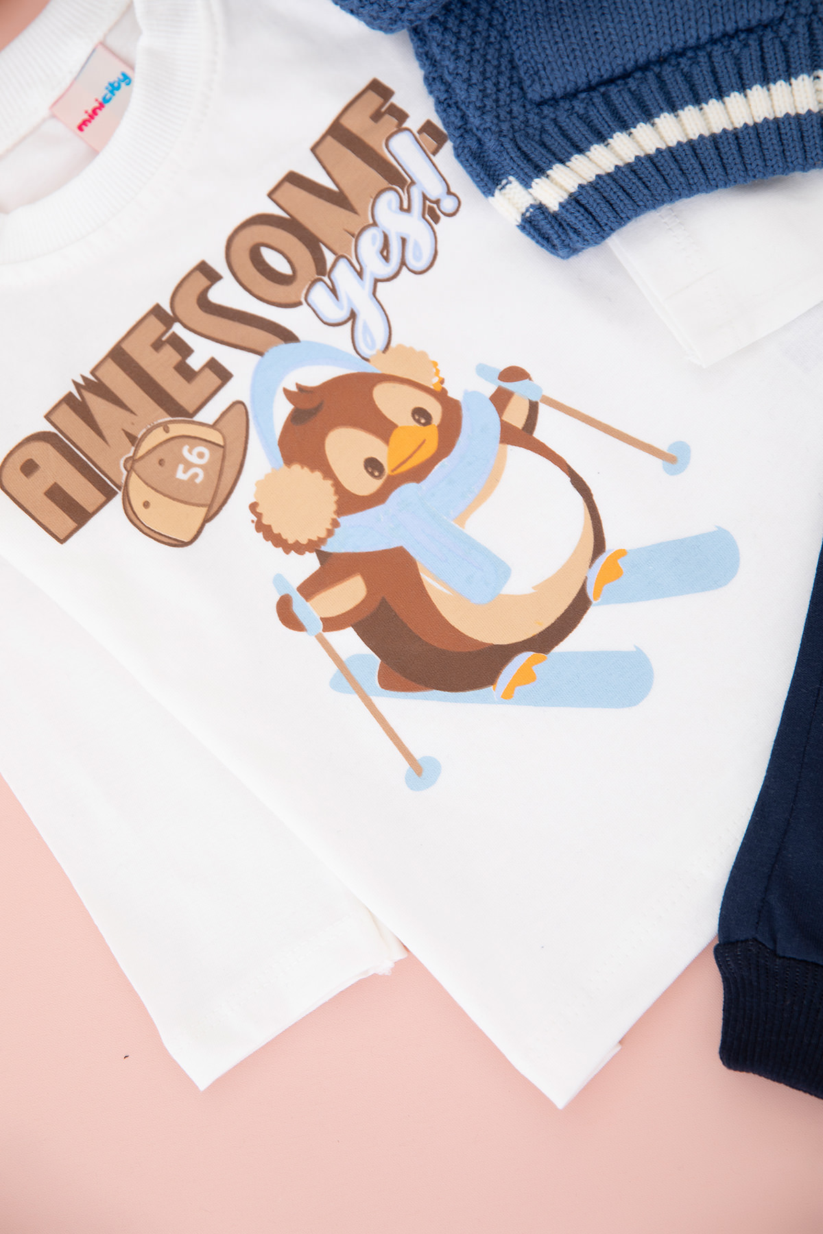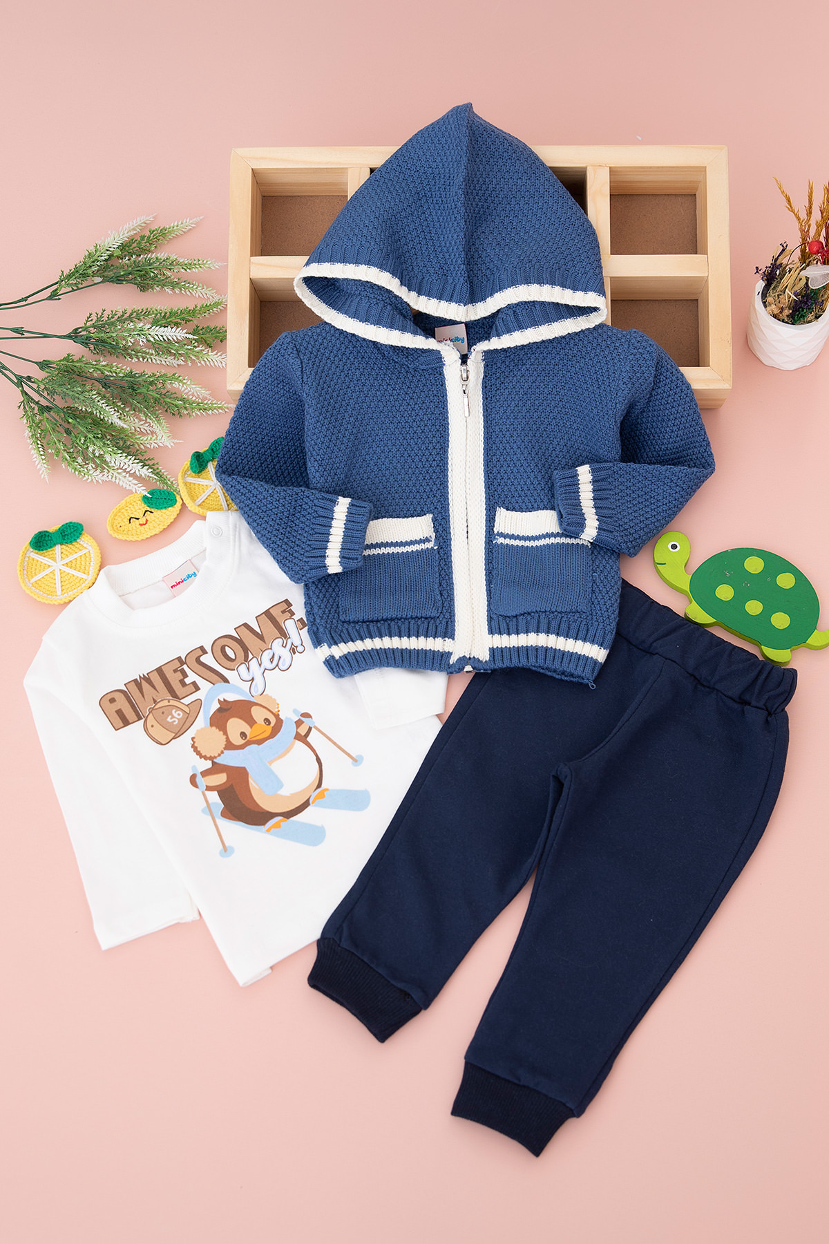 Erkek Bebek Pitikare Örmeli Triko Üçlü Takım - 13794 (6-24 Ay)