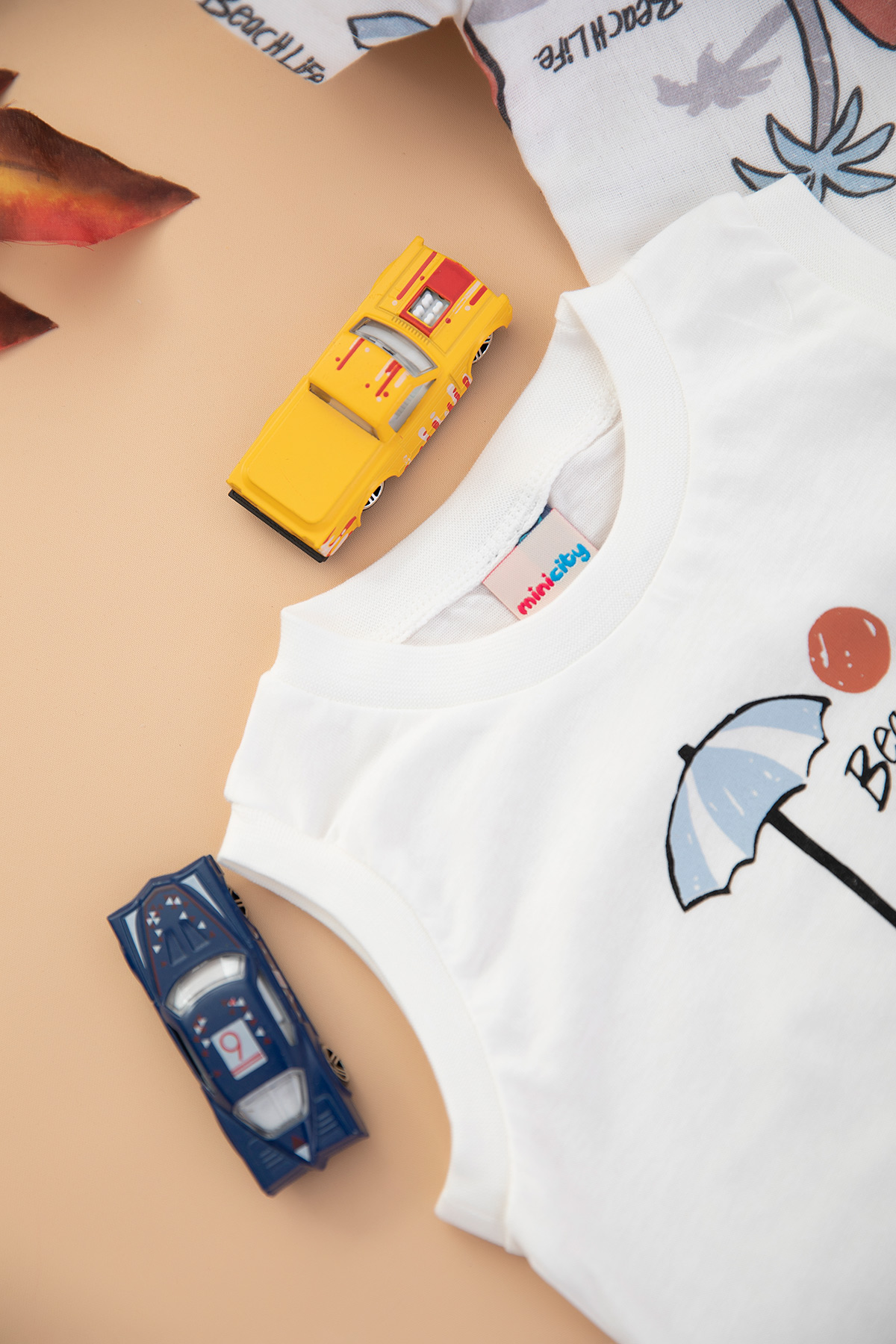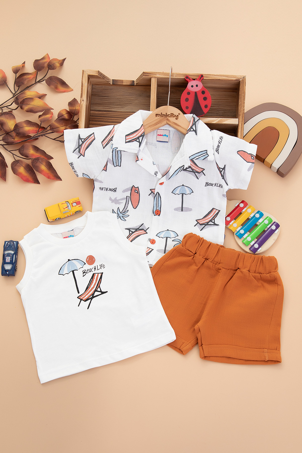Erkek Bebek Plaj Baskılı Üçlü Şortlu Takım - 25438 (9-24 Ay)