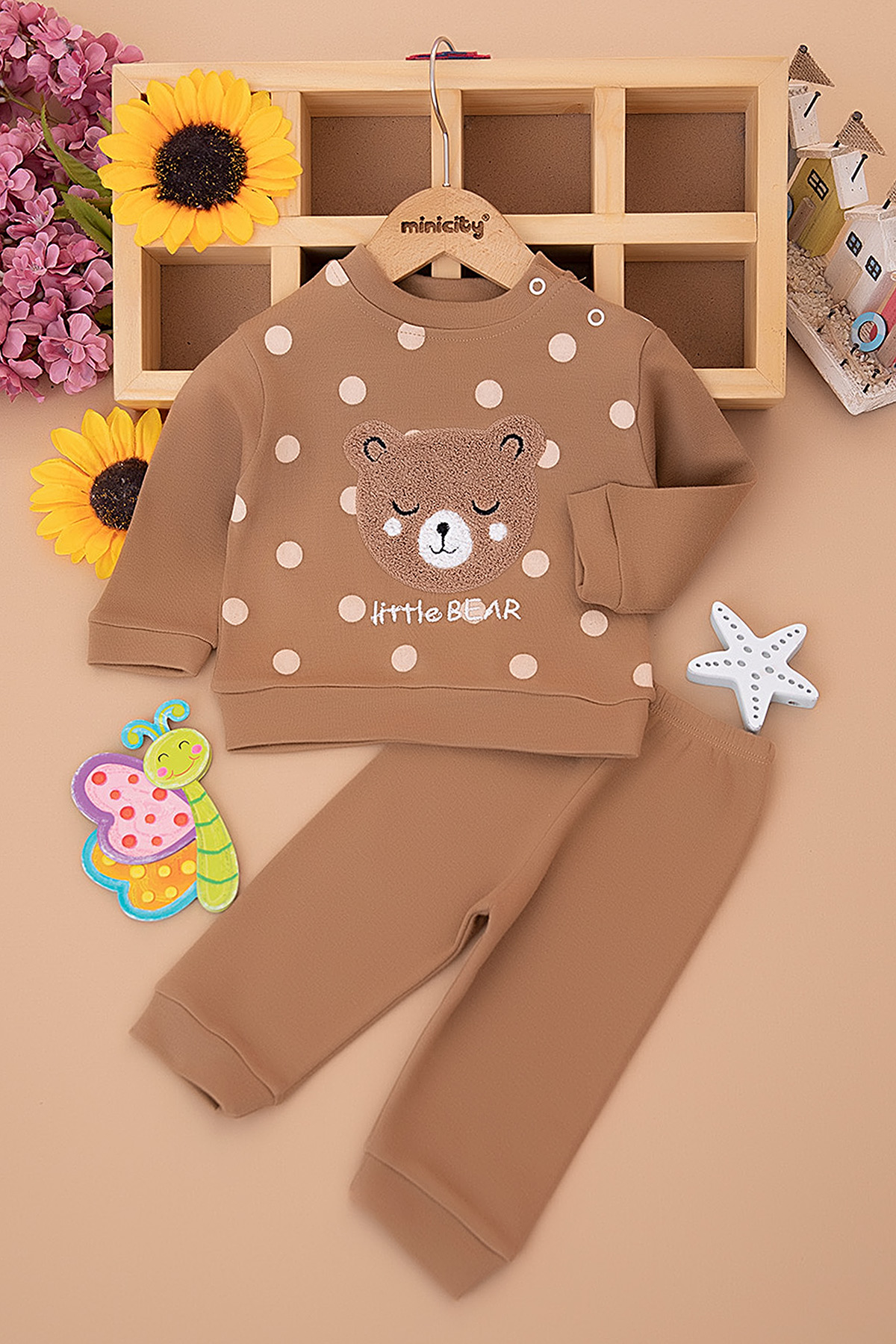 Erkek Bebek Puanlı Littel Bear Nakışlı Takım (6-18 Ay)