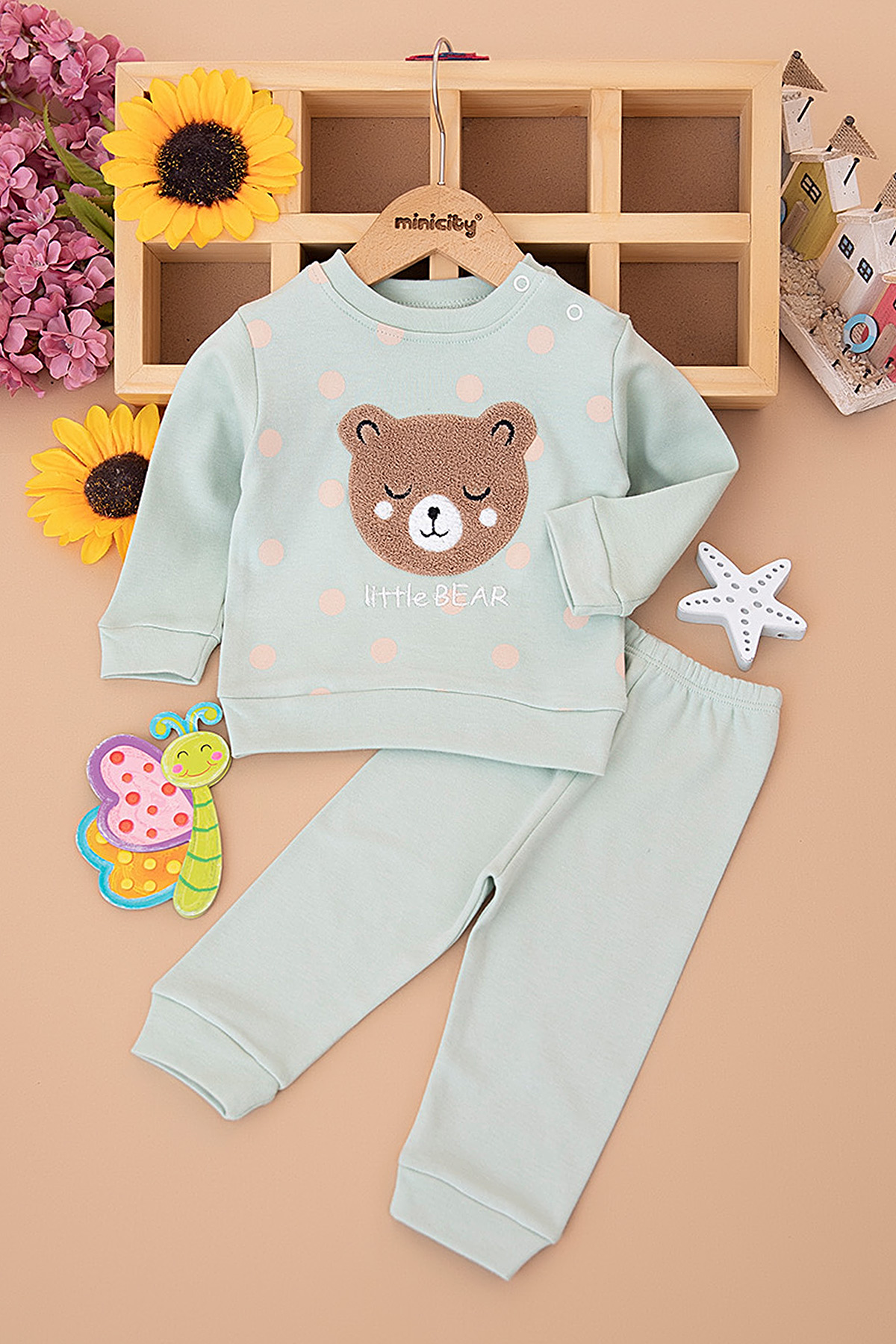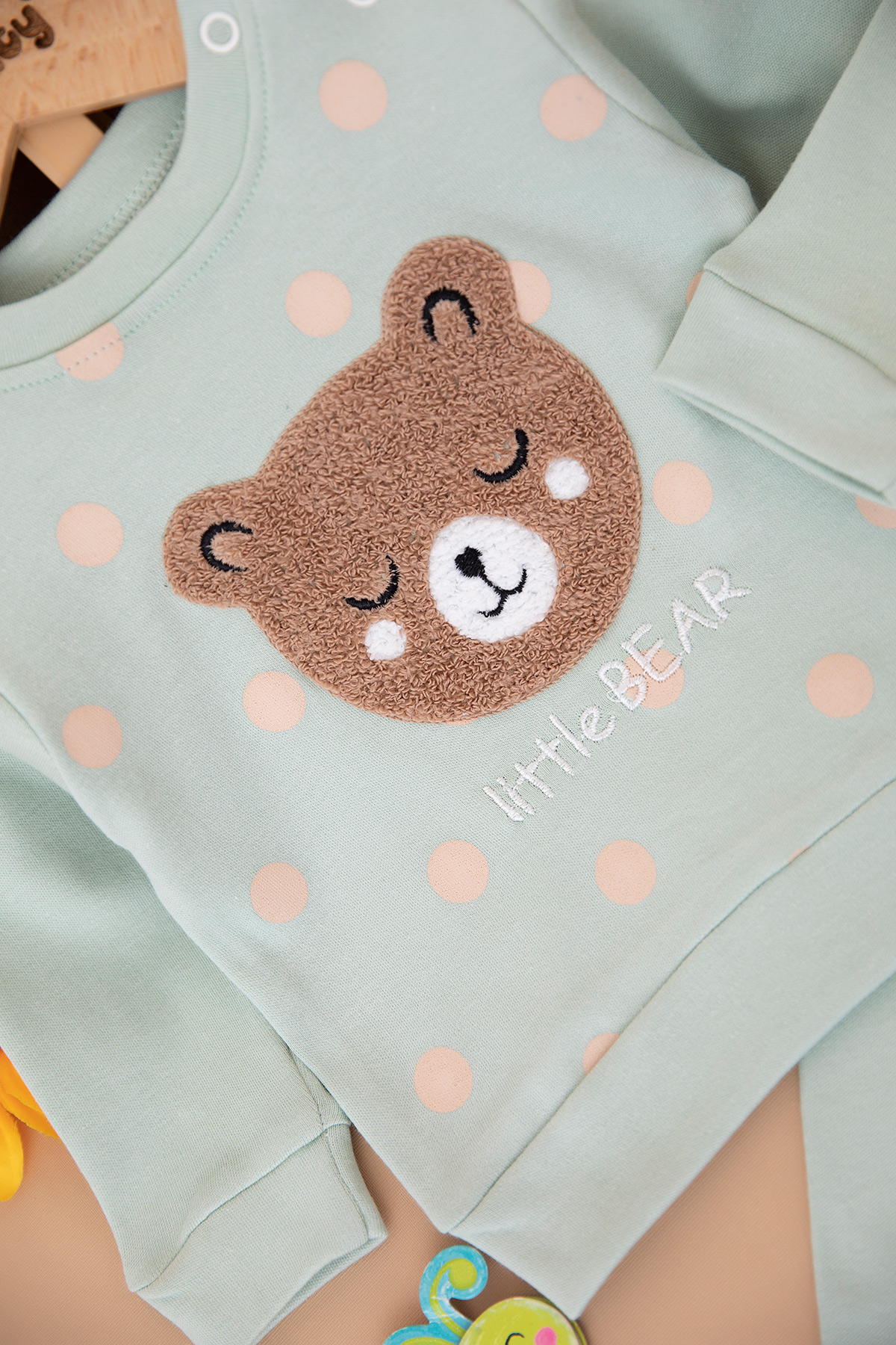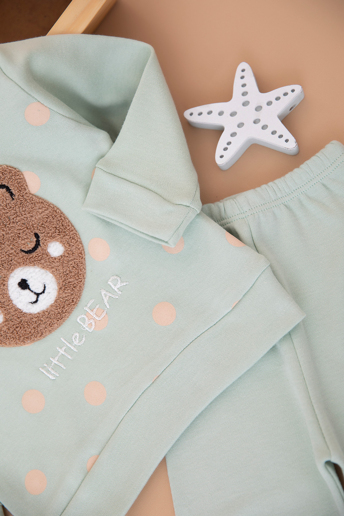 Erkek Bebek Puanlı Littel Bear Nakışlı Takım (6-18 Ay)
