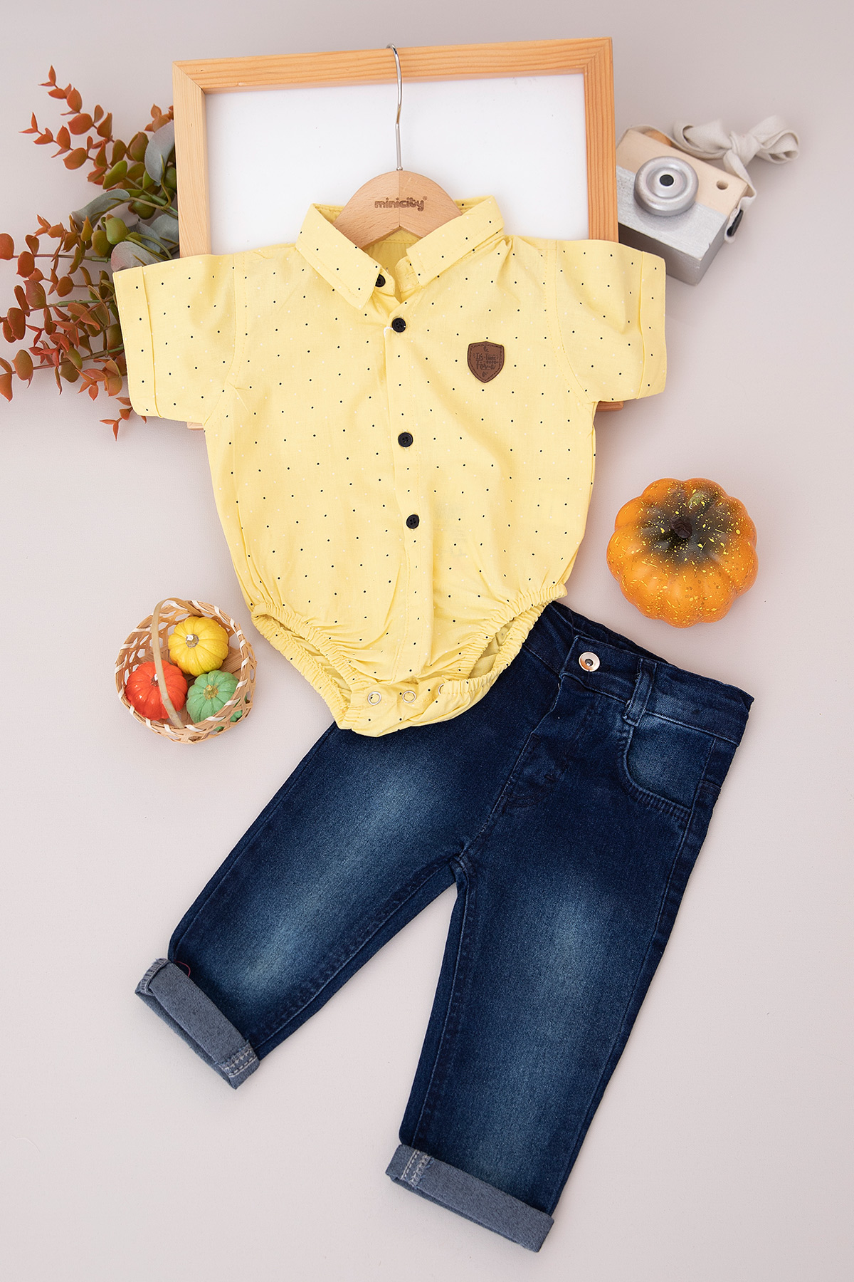Erkek Bebek Puanlı Zıbın Gömlekli Takım - 2441 (9-24 Ay)