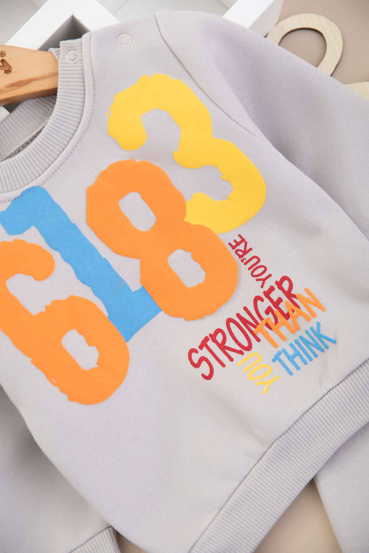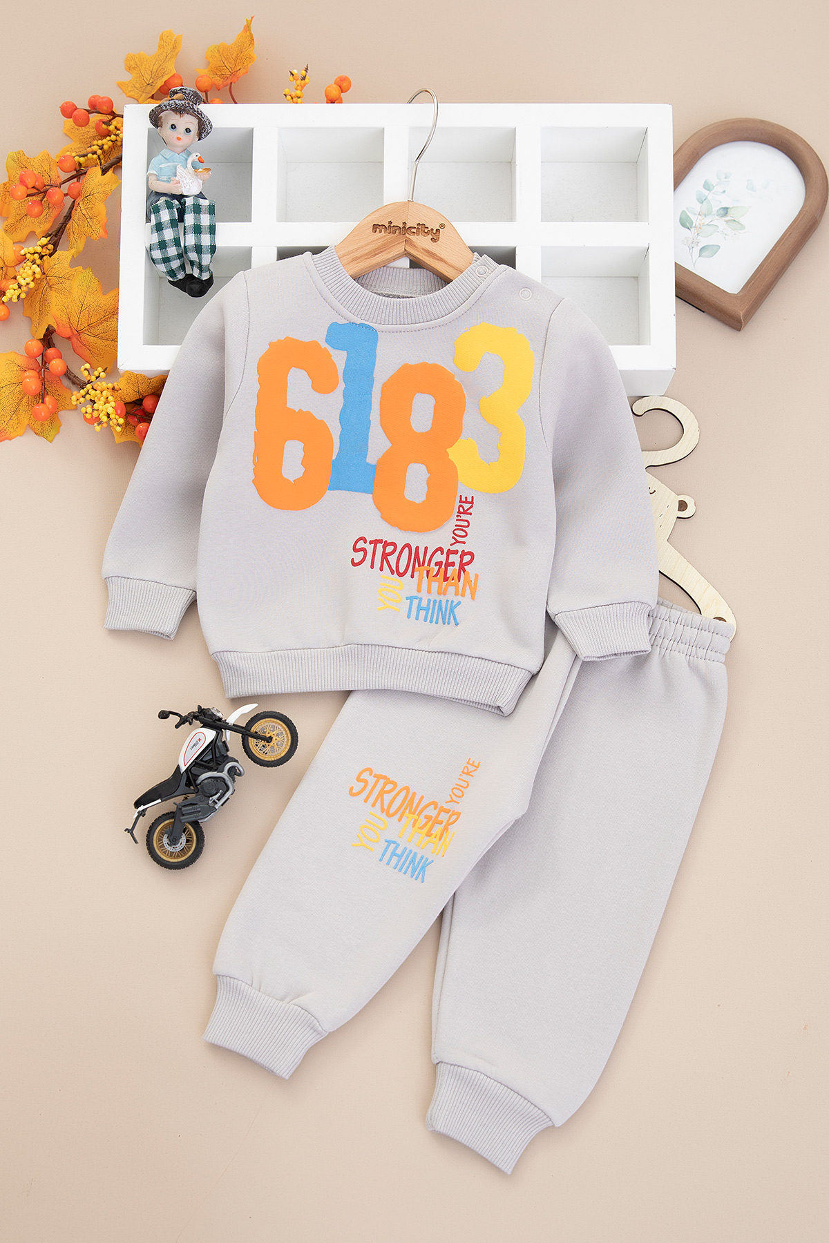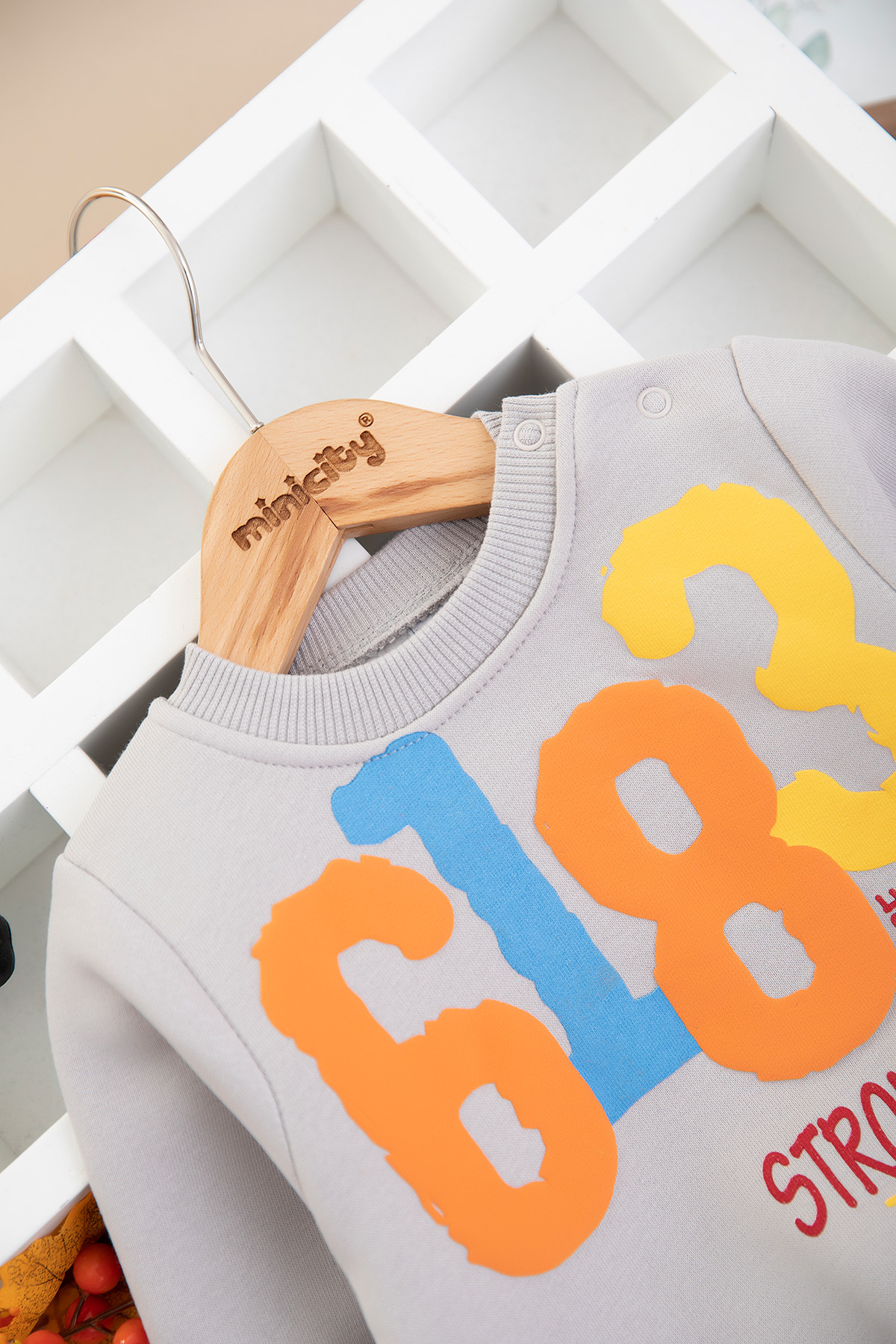 Erkek Bebek Rakam Baskılı Üçip Takım - 25804 (9-24 Ay)