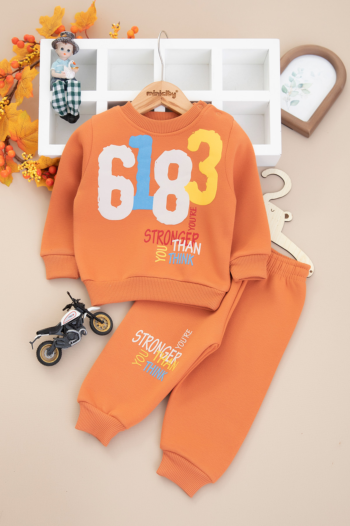 Erkek Bebek Rakam Baskılı Üçip Takım - 25804 (9-24 Ay)