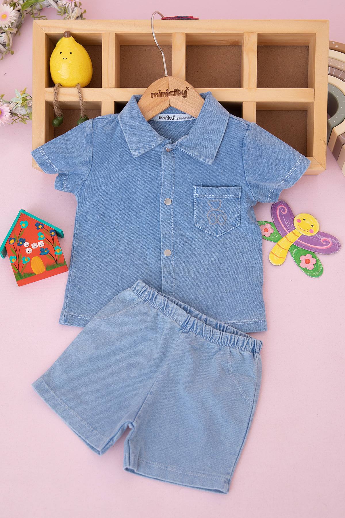 Erkek Bebek Reflektör Ayı Şortlu Takım - 0307 (9-24 Ay)