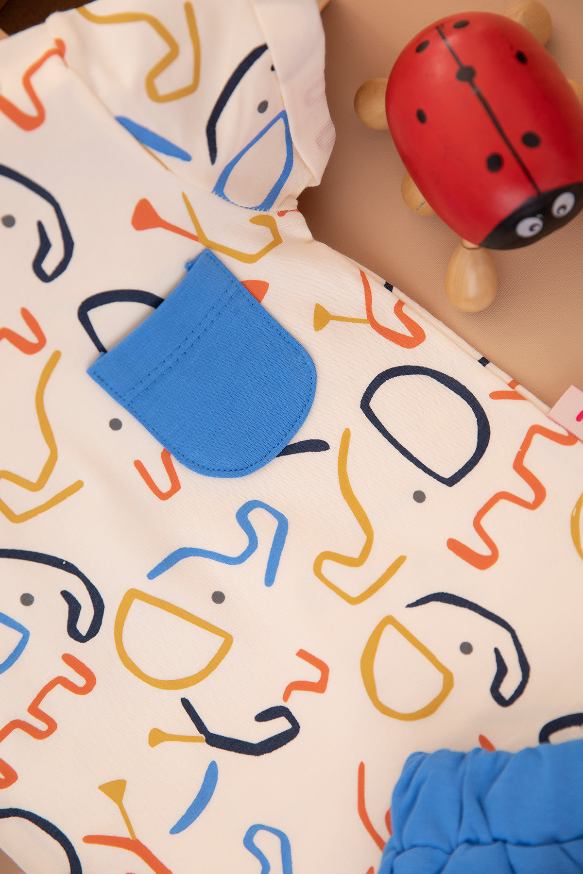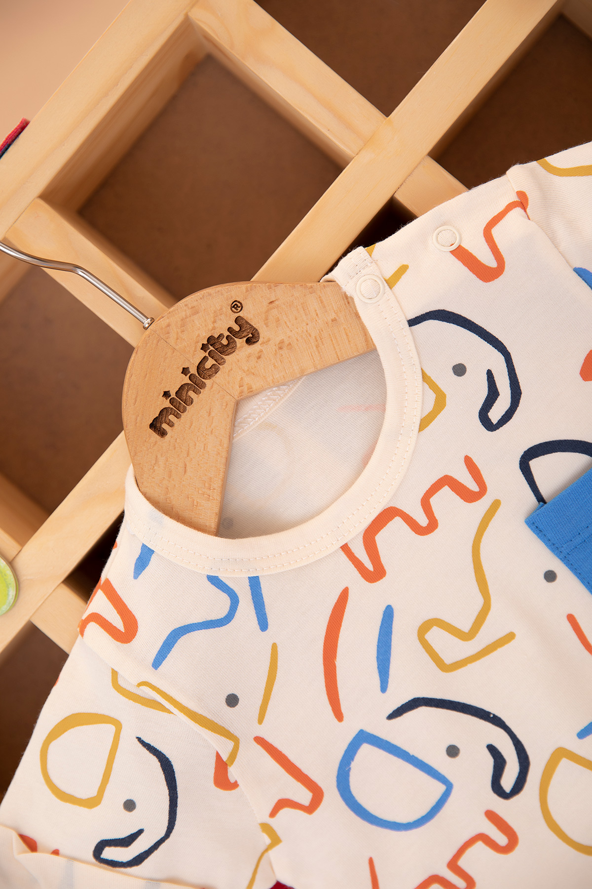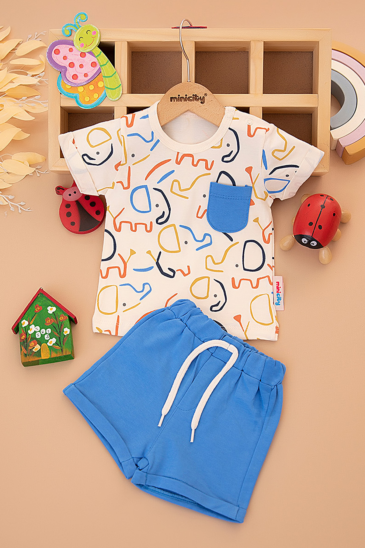 Erkek Bebek Renkli Fil Baskılı Şortlu Takım - 2505 (6-24 Ay)