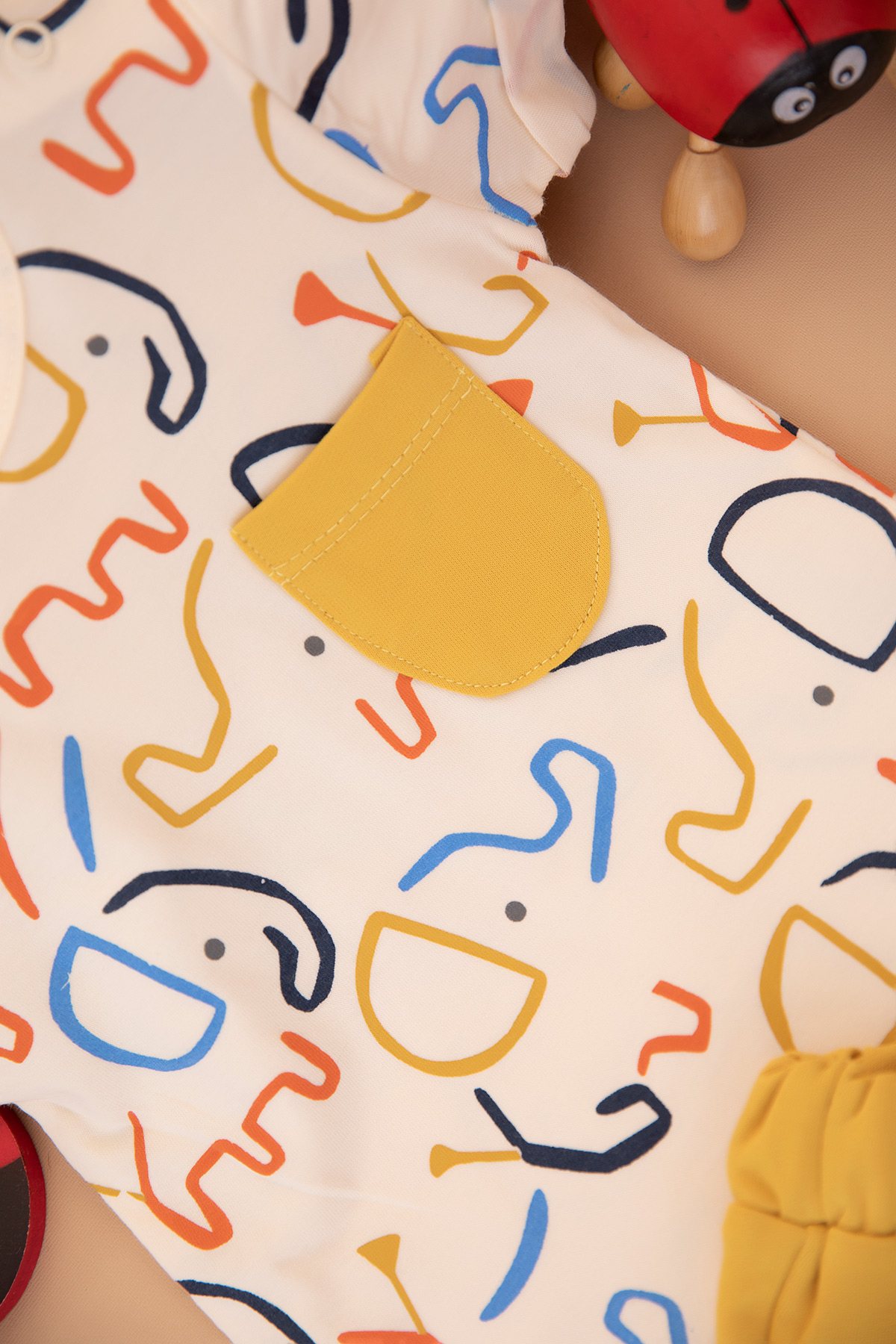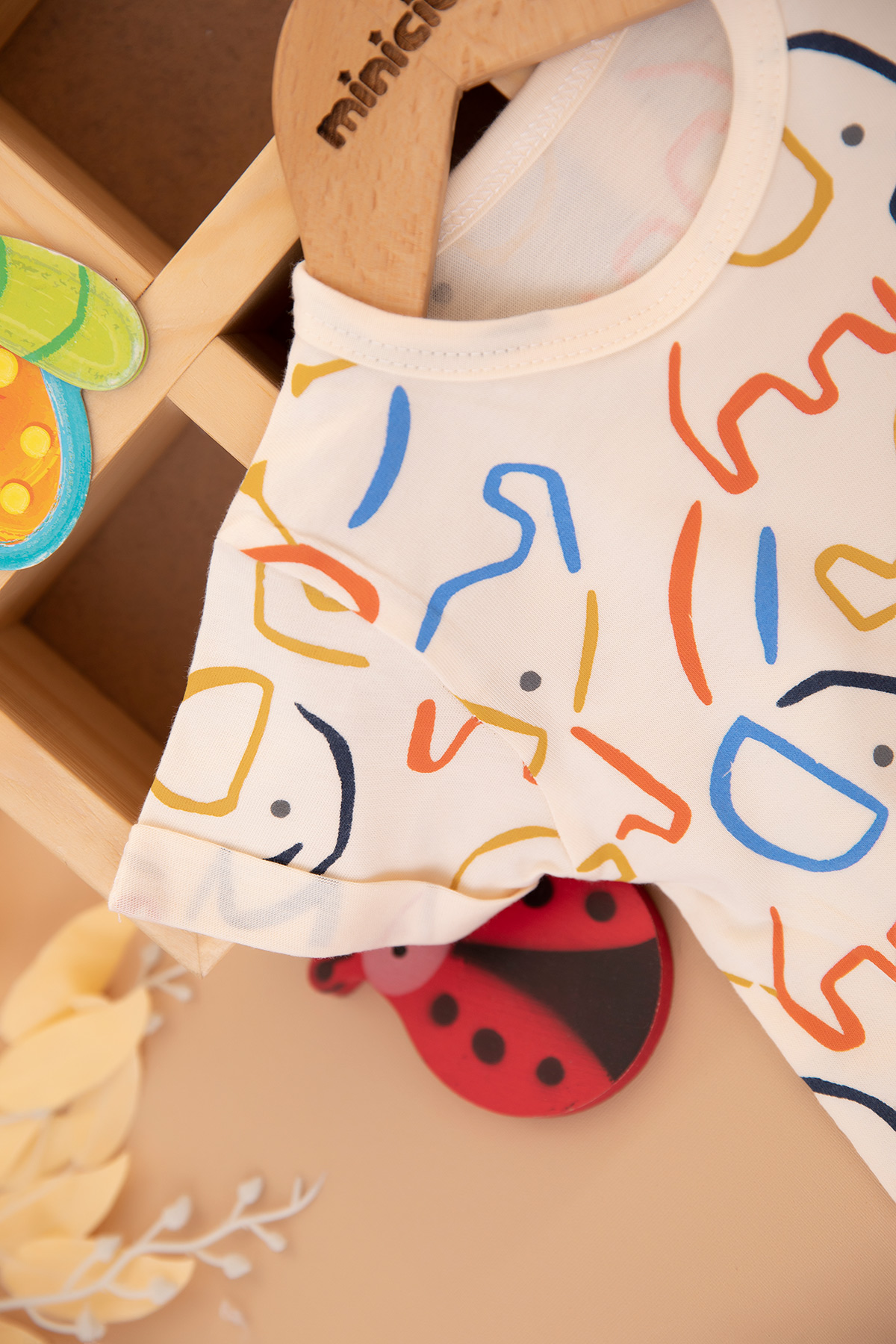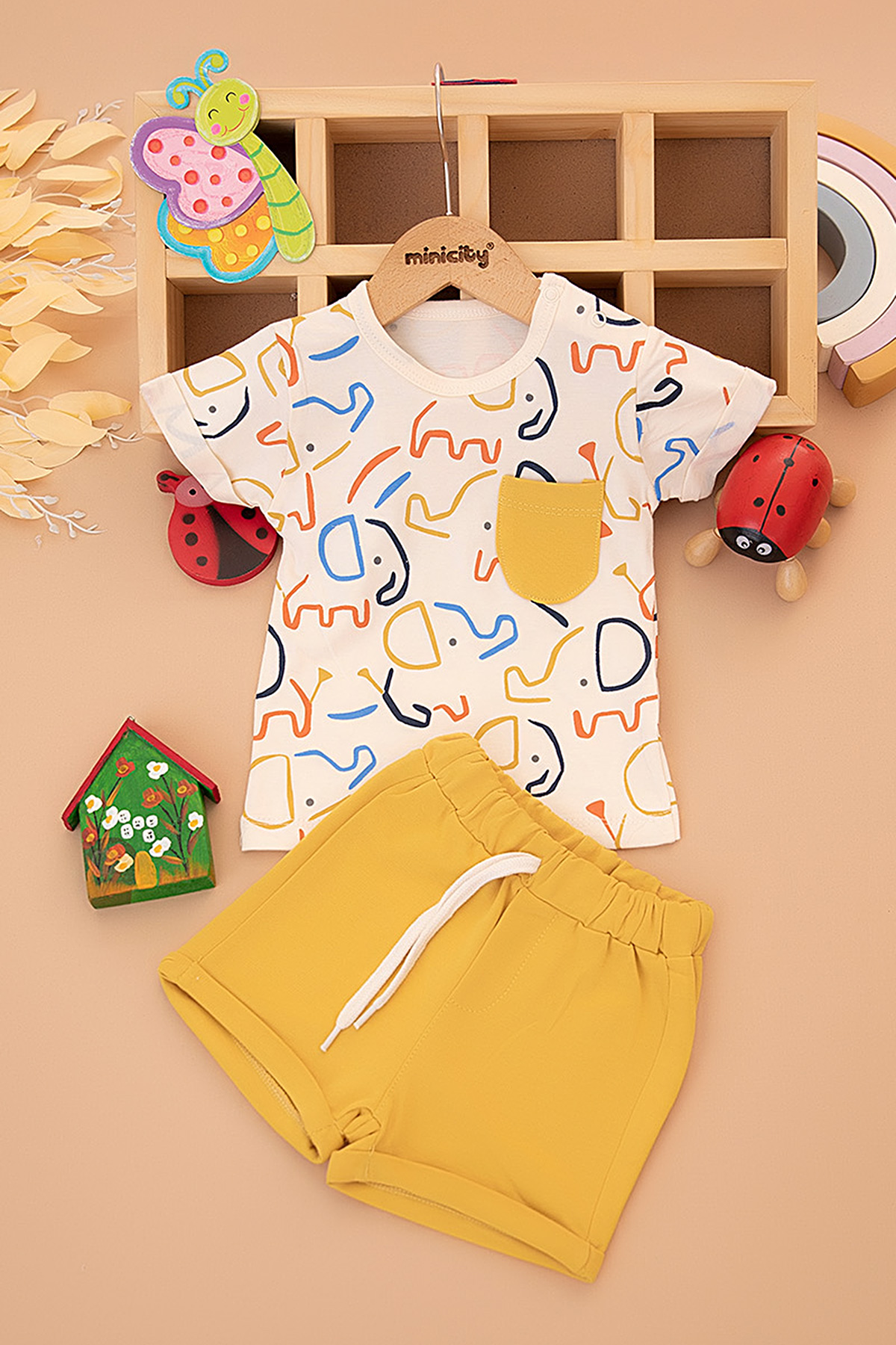 Erkek Bebek Renkli Fil Baskılı Şortlu Takım - 2505 (6-24 Ay)