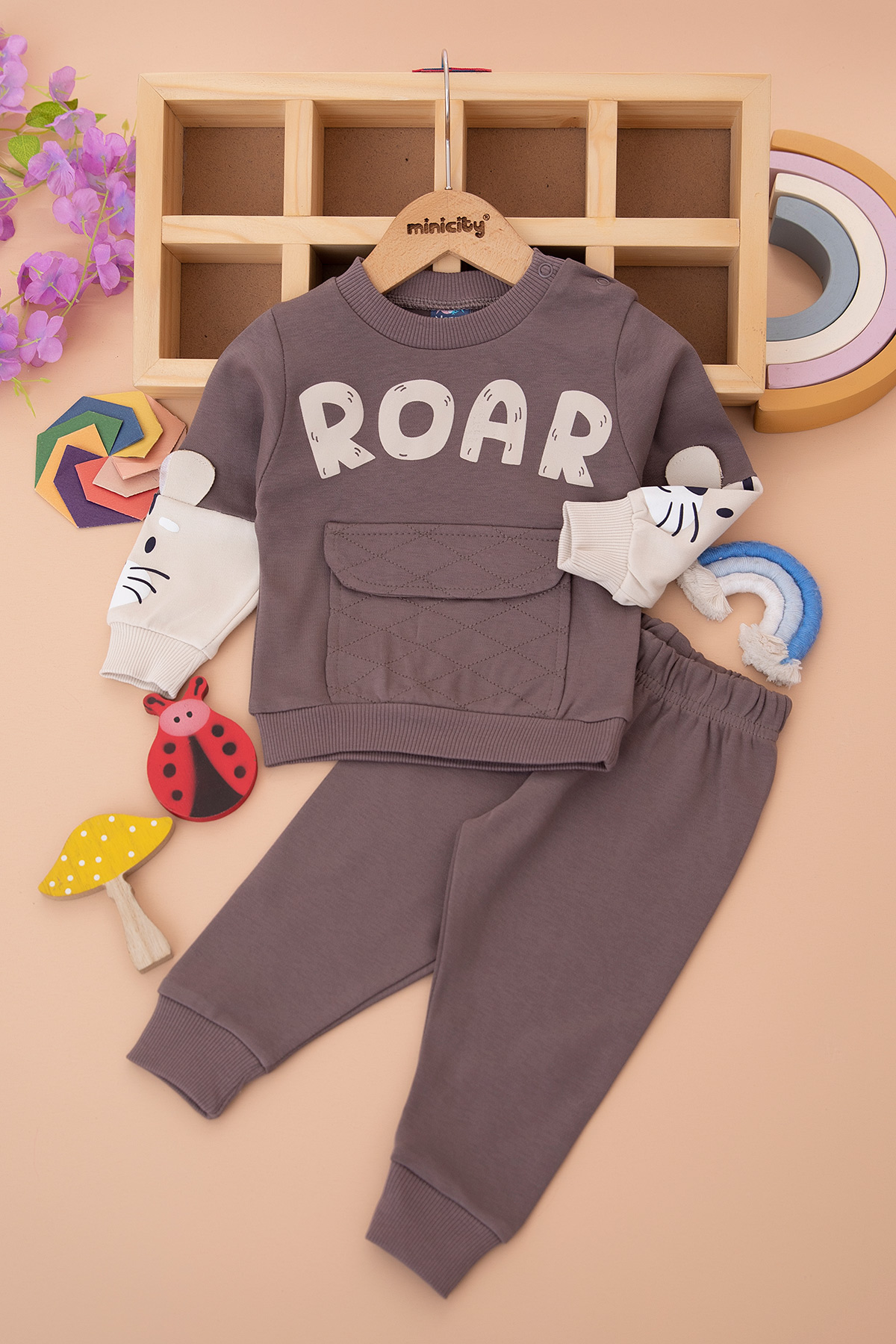 Erkek Bebek Roar Baskılı Cepli Takım - 24521 (9-24 Ay)