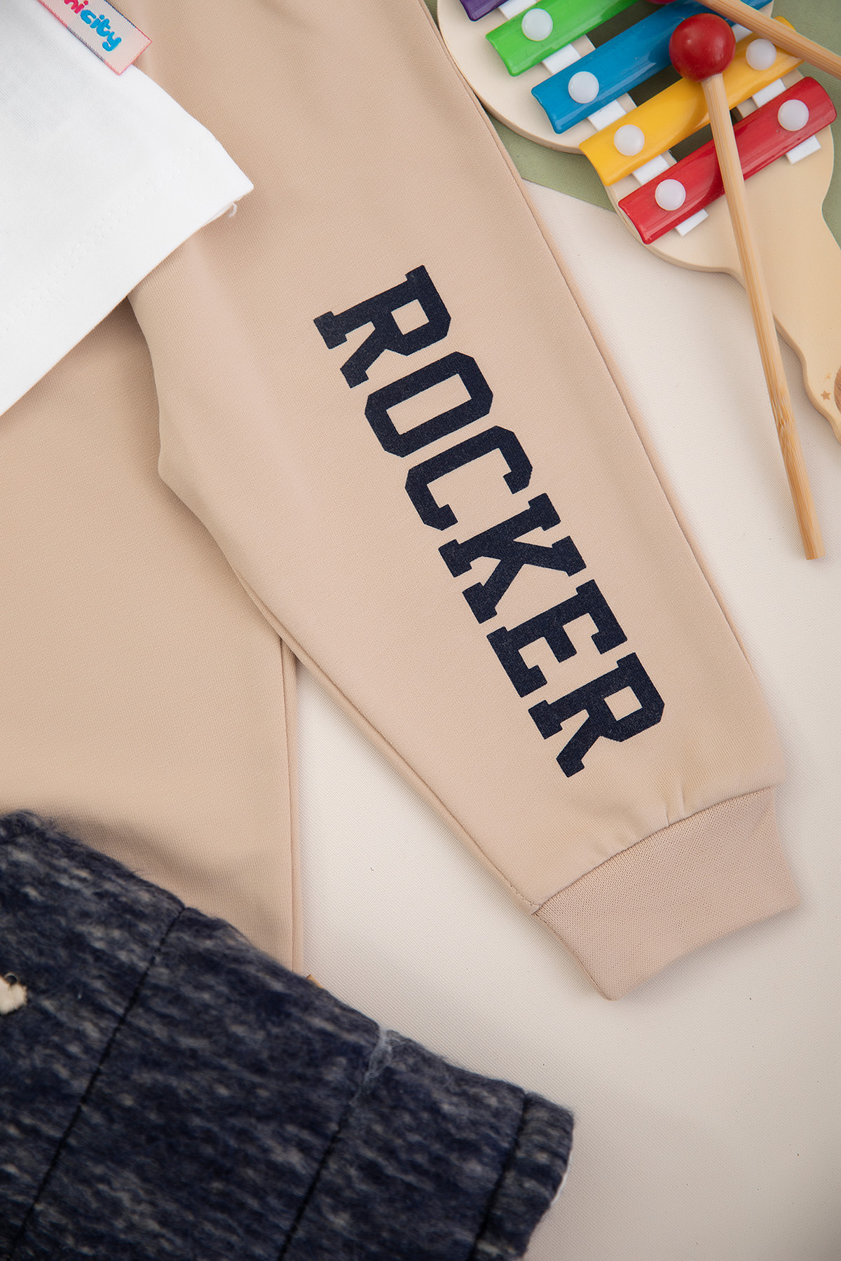 Erkek Bebek Rocker Nakışlı Yelekli Takım - 9317 (6-18 Ay)
