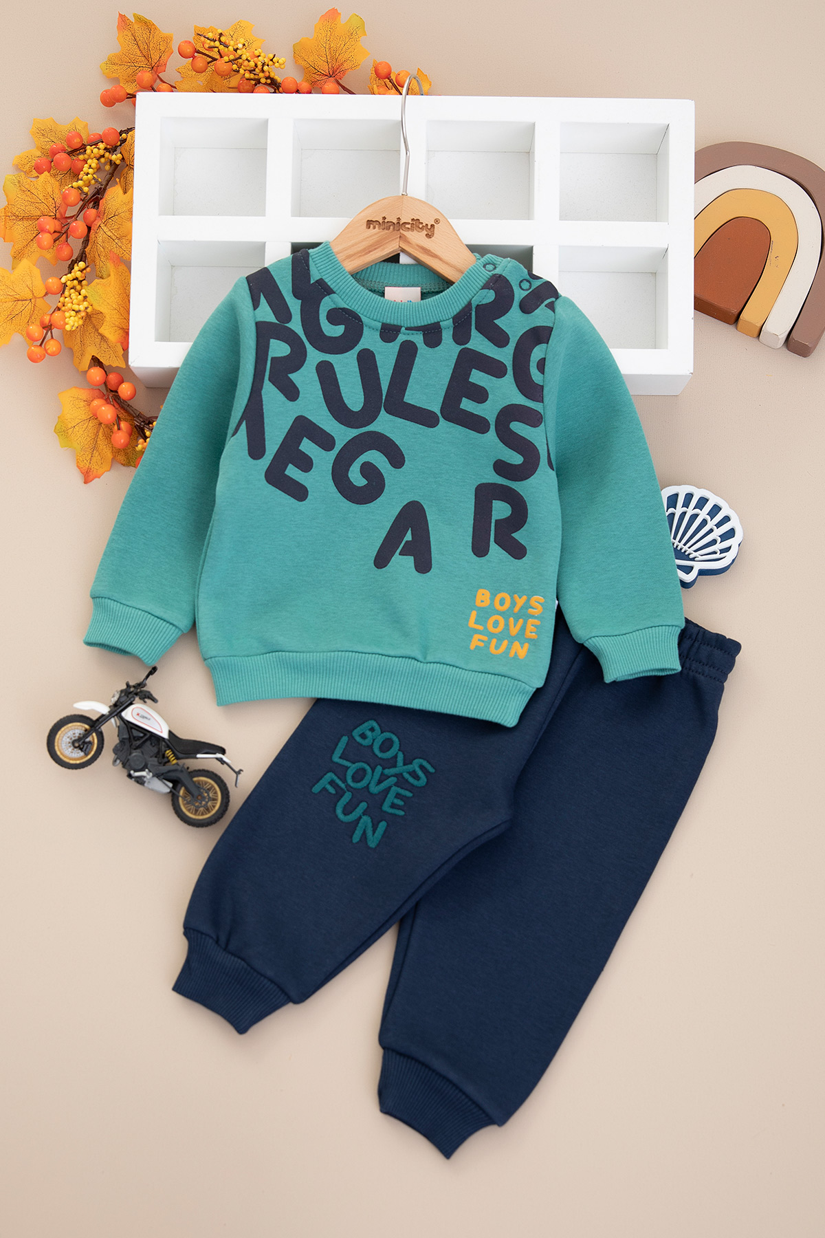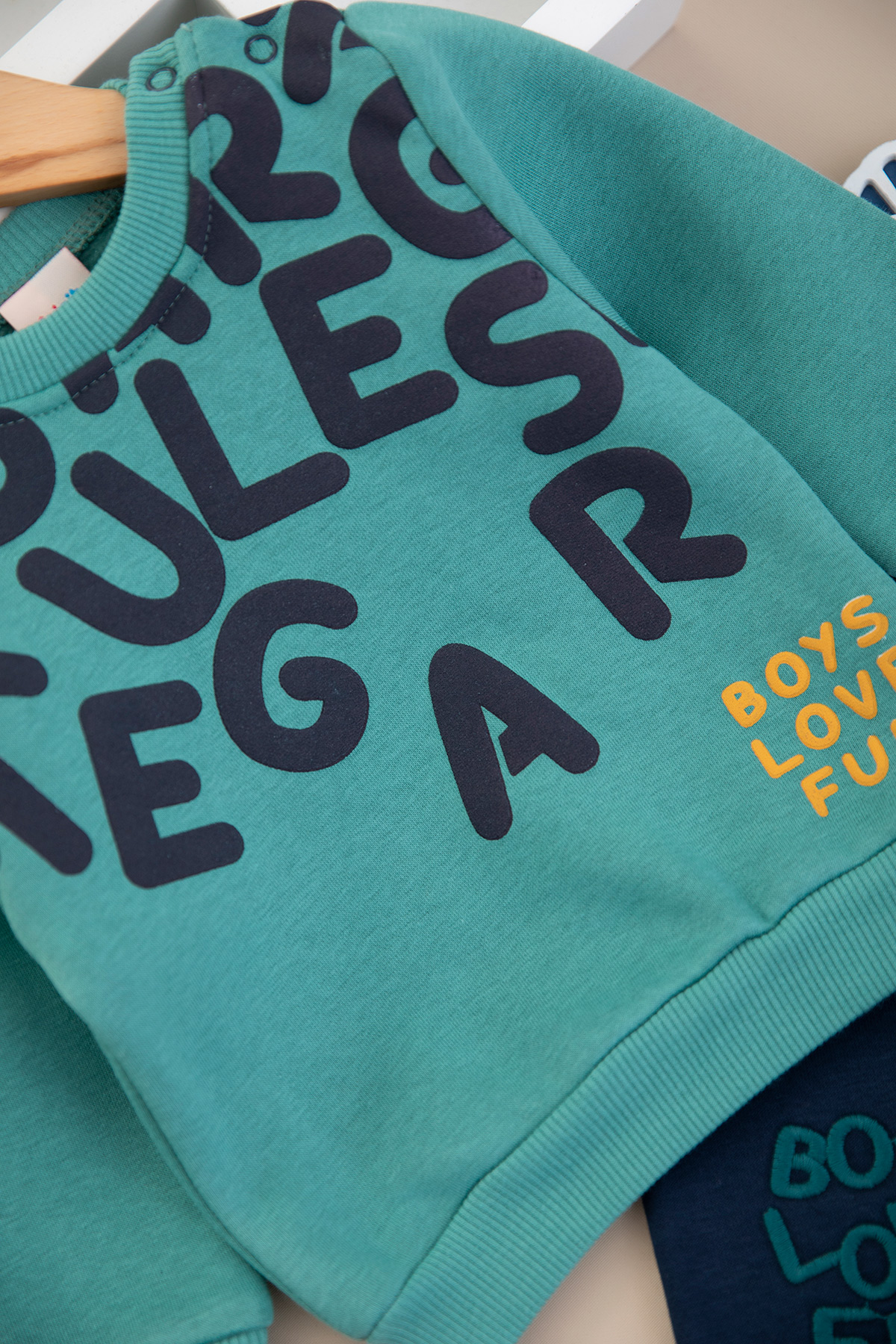 Erkek Bebek Rules Baskılı Üçip Takım - 25886 (9-24 Ay)