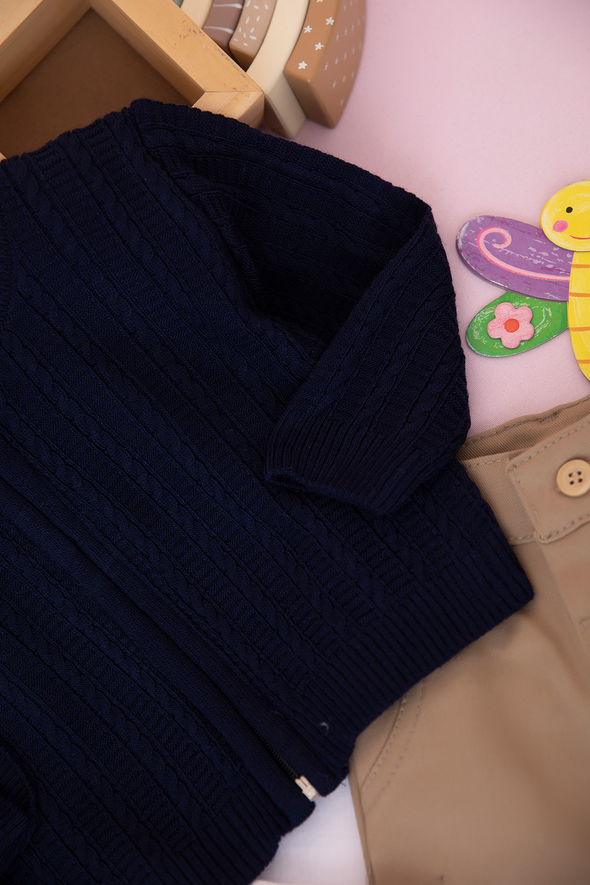 Erkek Bebek Saç Örgülü Trikolu Takım - 2616 (6-24 Ay)