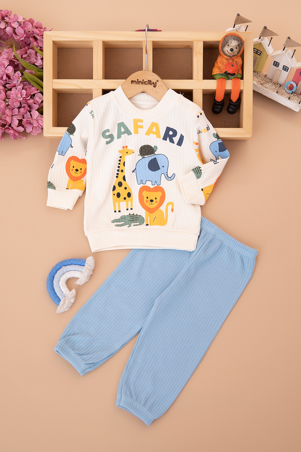 Erkek Bebek Safari Baskılı Takım - 046 (9-18 Ay)