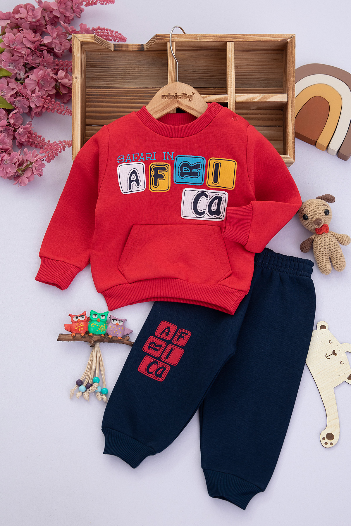 Erkek Bebek Safari Baskılı Üçip Takım - 24911 (9-24 Ay)