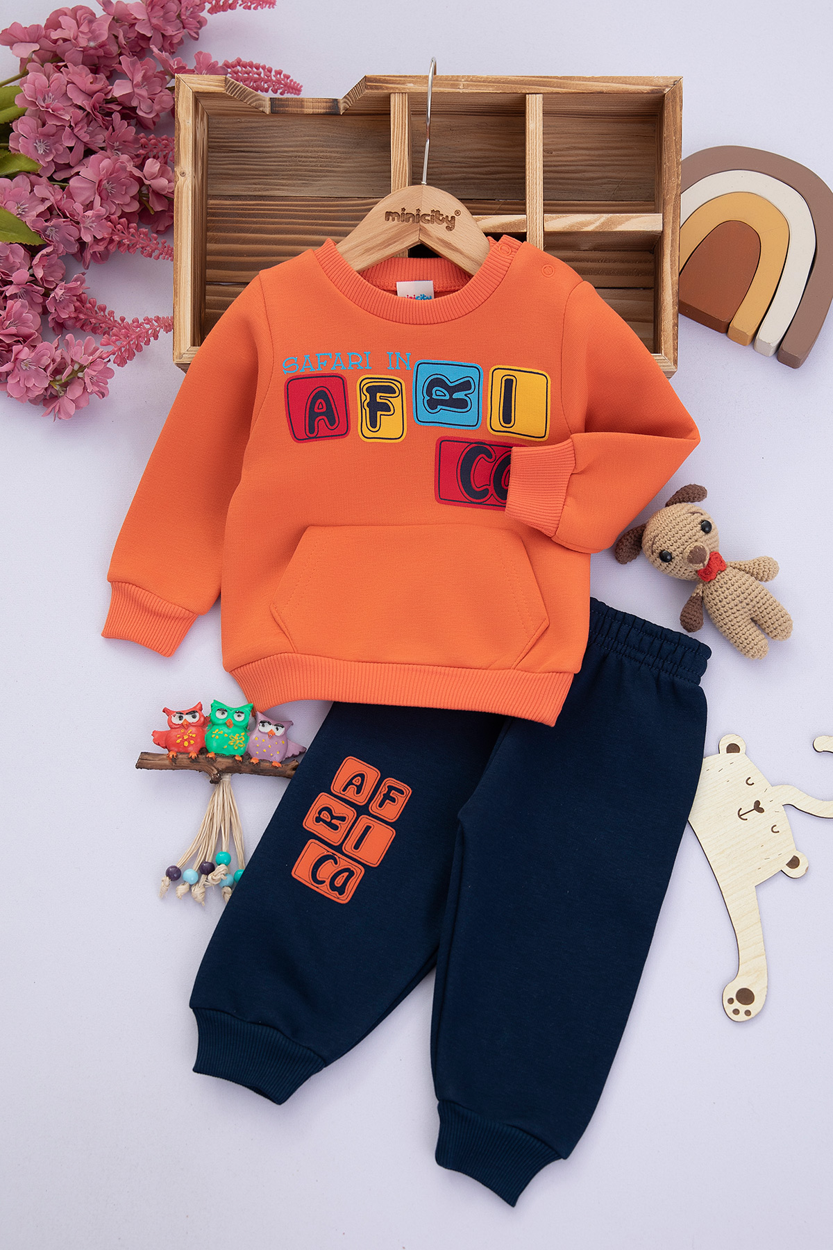 Erkek Bebek Safari Baskılı Üçip Takım - 24911 (9-24 Ay)