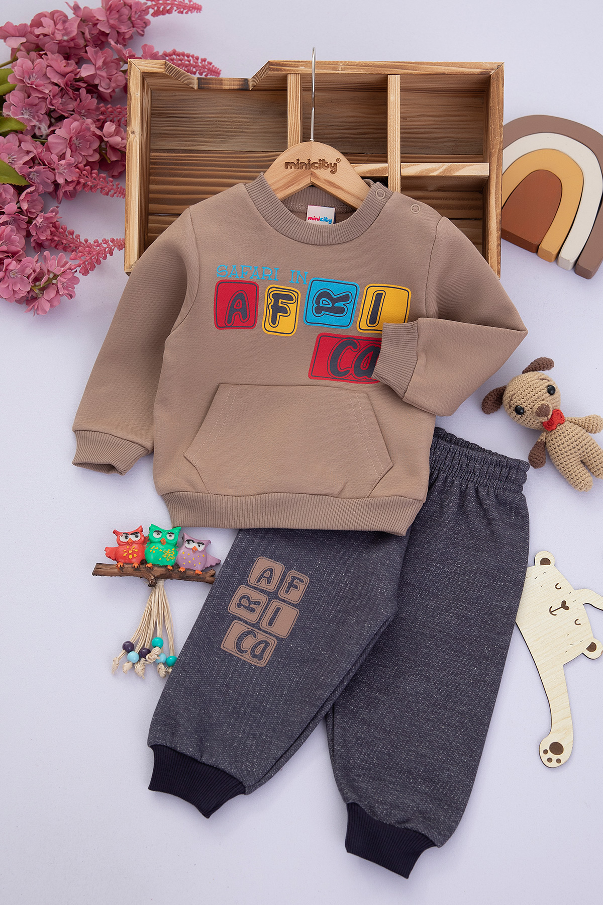 Erkek Bebek Safari Baskılı Üçip Takım - 24911 (9-24 Ay)