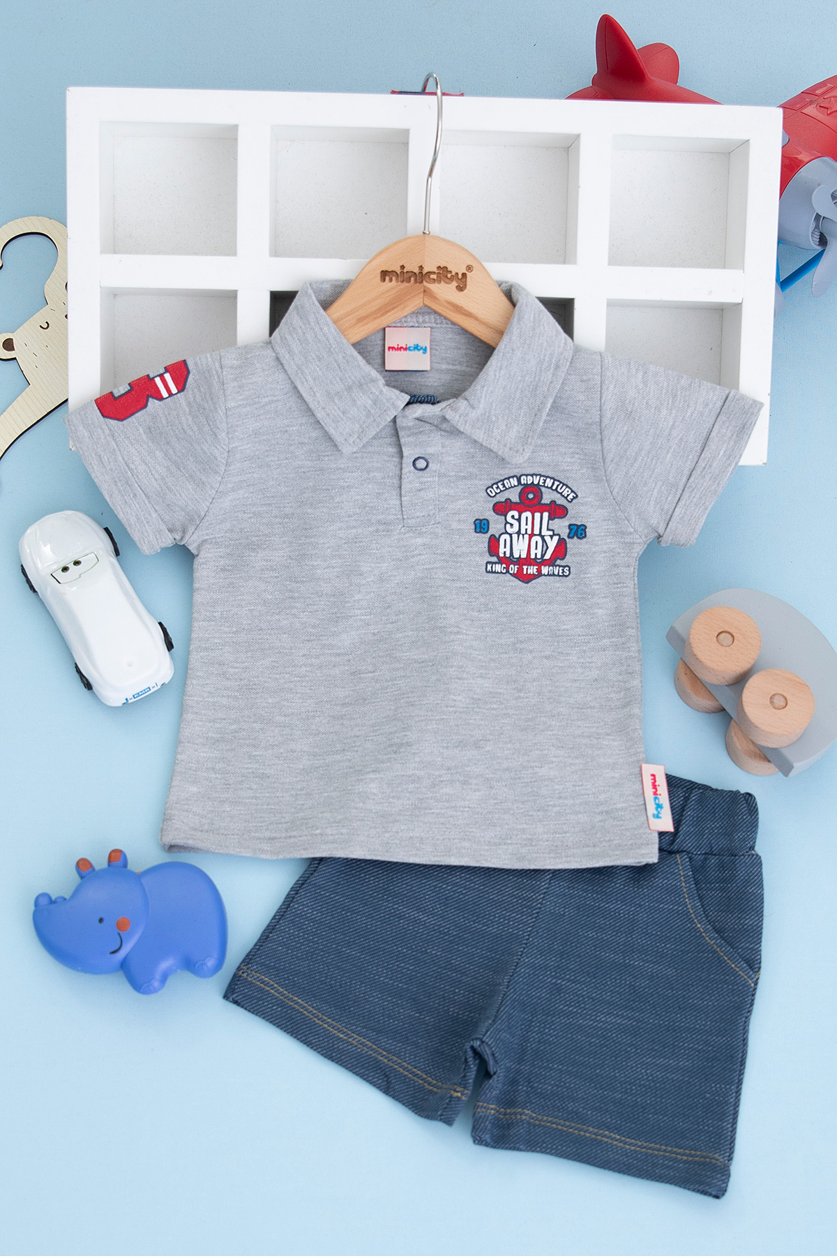Erkek Bebek Sail Away Baskılı Şortlu Takım - 23088 (9-24 Ay)
